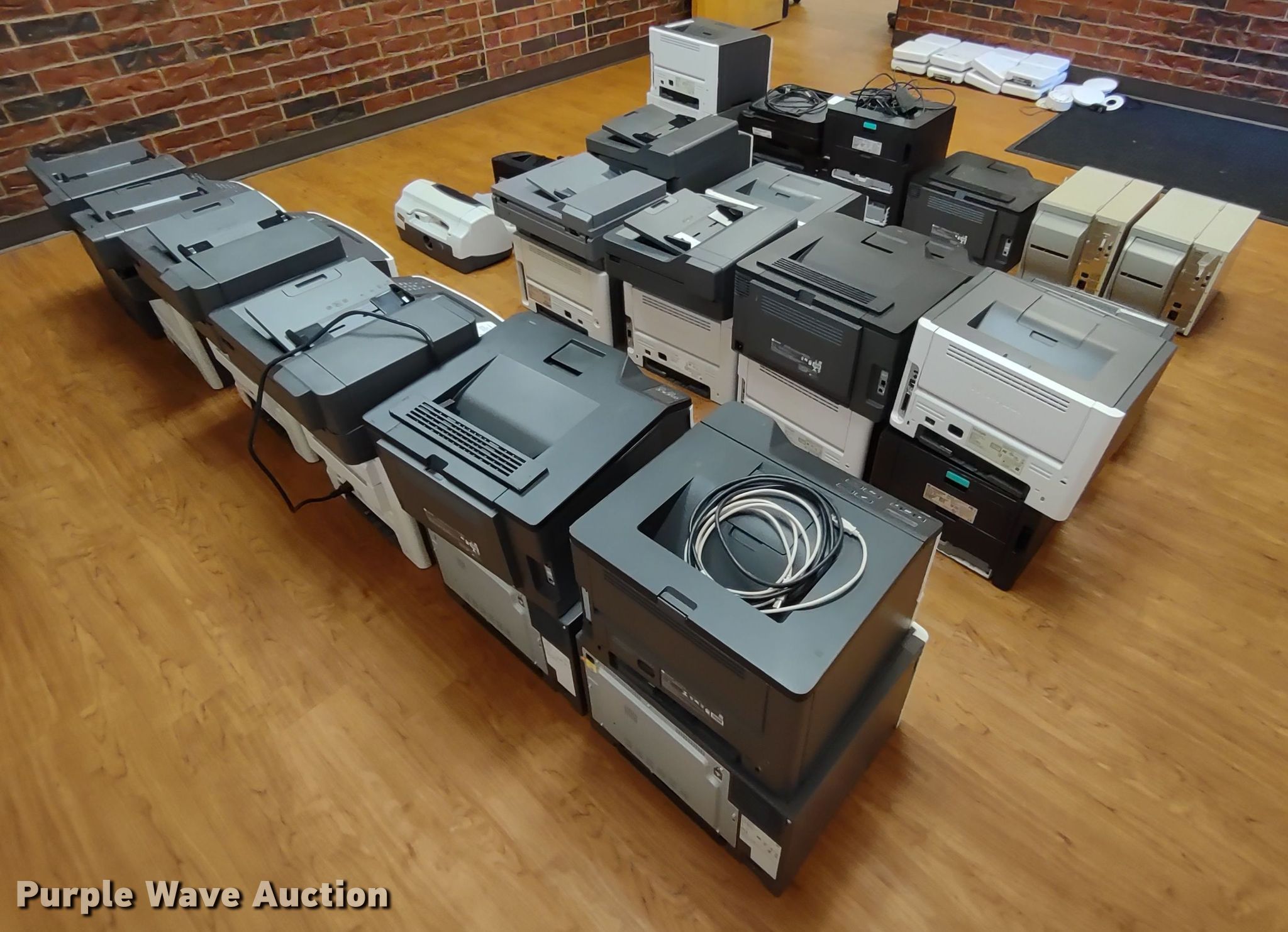 Purple Wave is selling a used Office Supplies and Equip. in Kansas. This item is a Office supplies with the following: (13) Lexmark printers, (7) Lexmark multifunction printer/copiers, (4) HP printers, Dell multifunction printer/copiers, (2) Stripe label printers