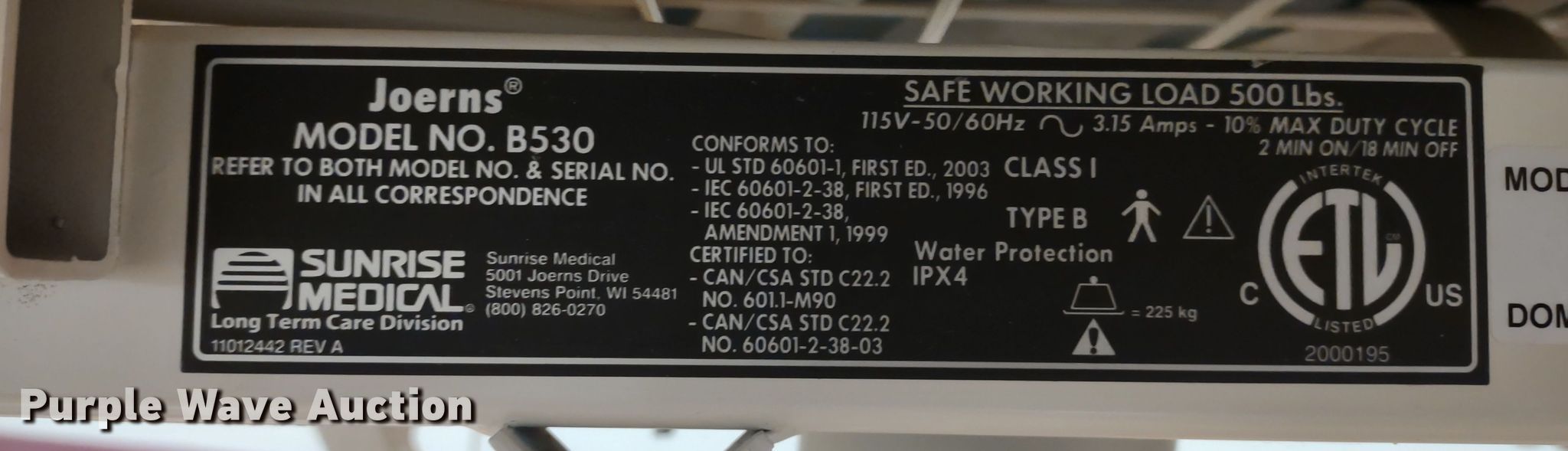 Purple Wave is selling a used Medical Equip. in Kansas. This item is a (6) Joerns B530 patient beds with the following: (6) Joerns B530 patient beds. Coffey County Hospital. 128 South Pearson Avenue. Waverly, KS 66871