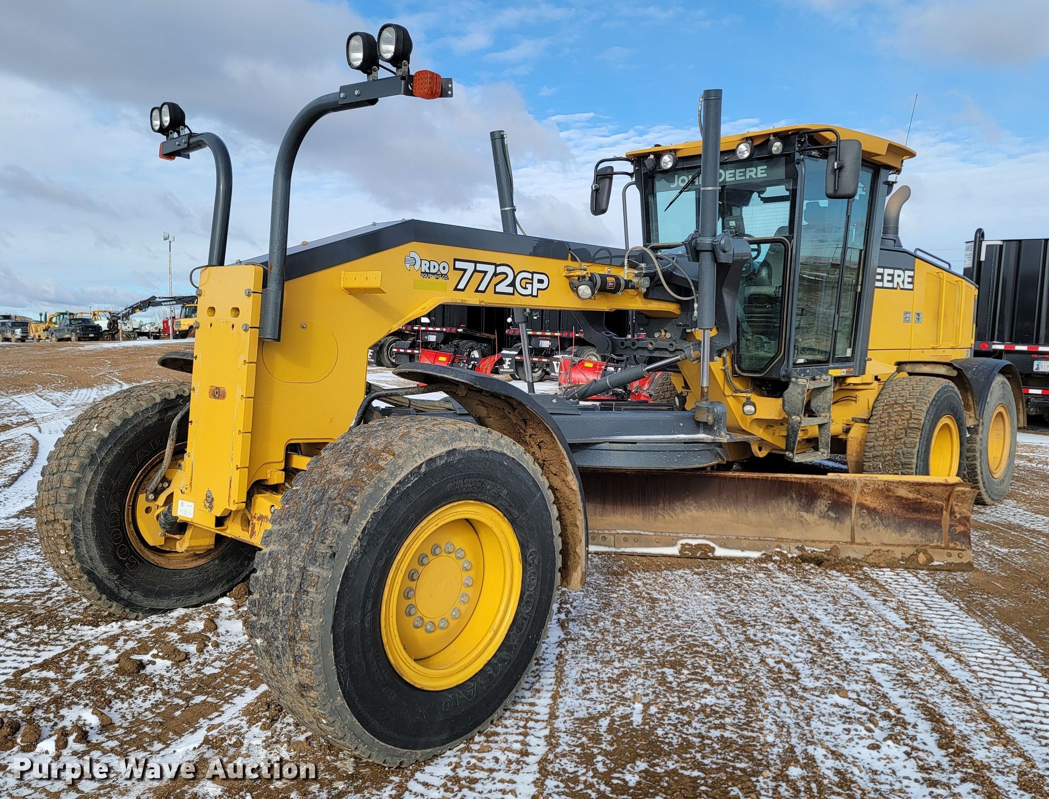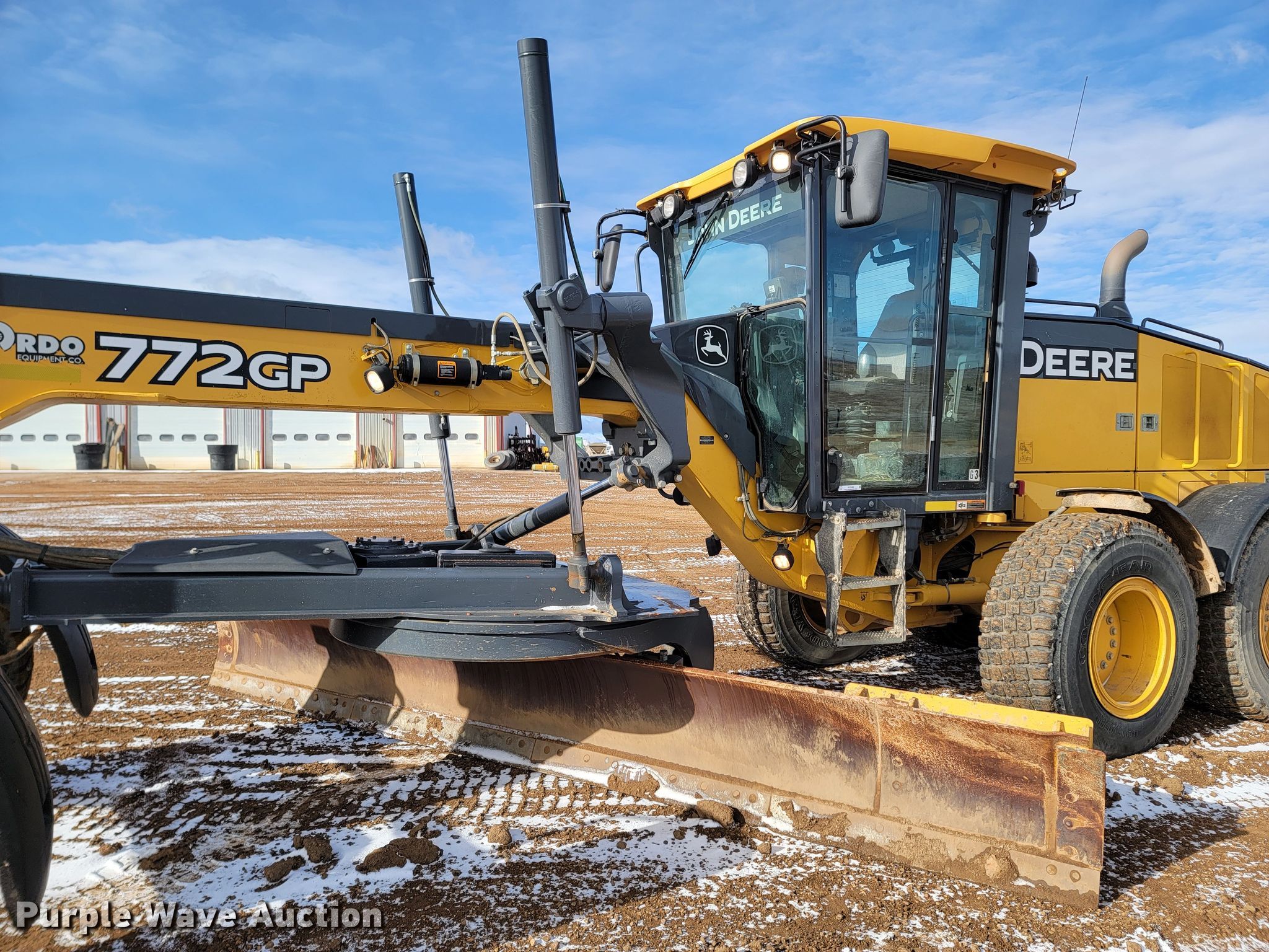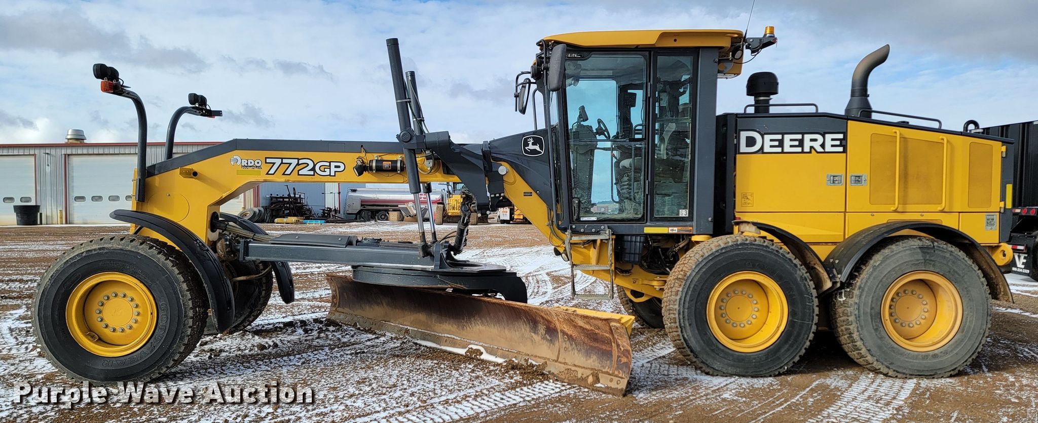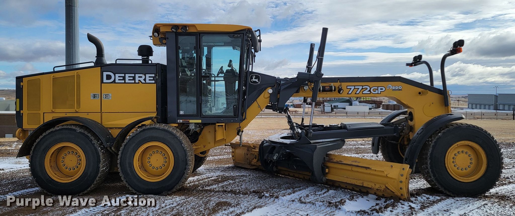 Purple Wave is selling a used Motor Grader in South Dakota. This item is a 2014 John Deere 772GP motor grader with the following: Hours: 7,920 on meter, Serial: IDW772GPKDE655803