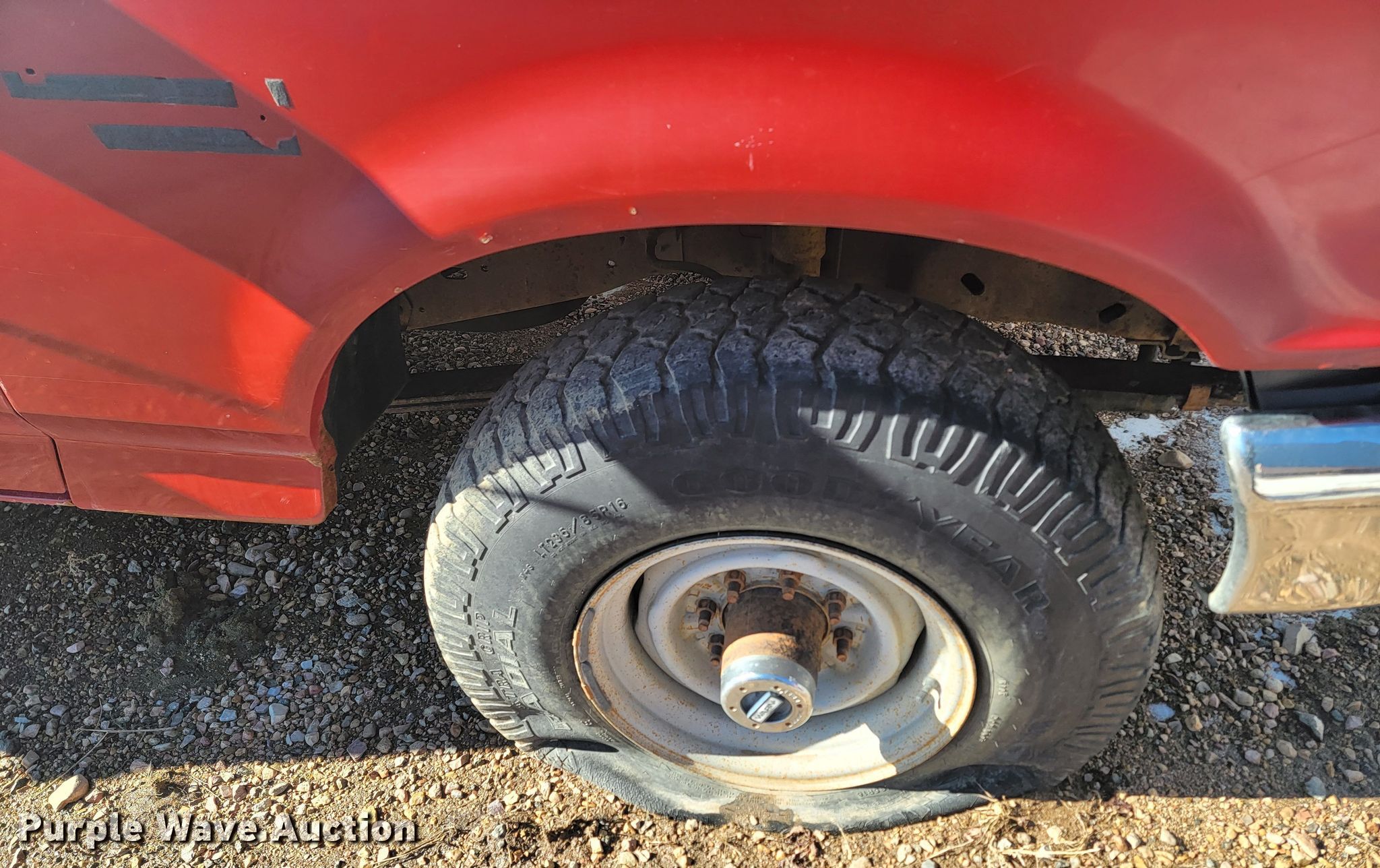 1995 Ford F250 XL pickup truck. Miles: Unknown, VIN: 1FTHF26H7SNB26274. Engine Displacement: 5.8L V8 OHV, Cylinders: 8, Fuel type: Gas. Transmission Automatic, Four wheel drive. Interior AC, Heat. Features Flatbed 8' L x 8' W. Tires Size: LT235/85R16. Notes Windshield chipped or cracked, Hail damage, Dead battery, Flat tires, Electrical issues, Unit must be towed or hauled, Non-operational unit. South Dakota title. Mileage has not been verified. Exempt will be written in the odometer disclosure on the title. Meade County. 20623 Fort Meade Way. Sturgis, SD 57785