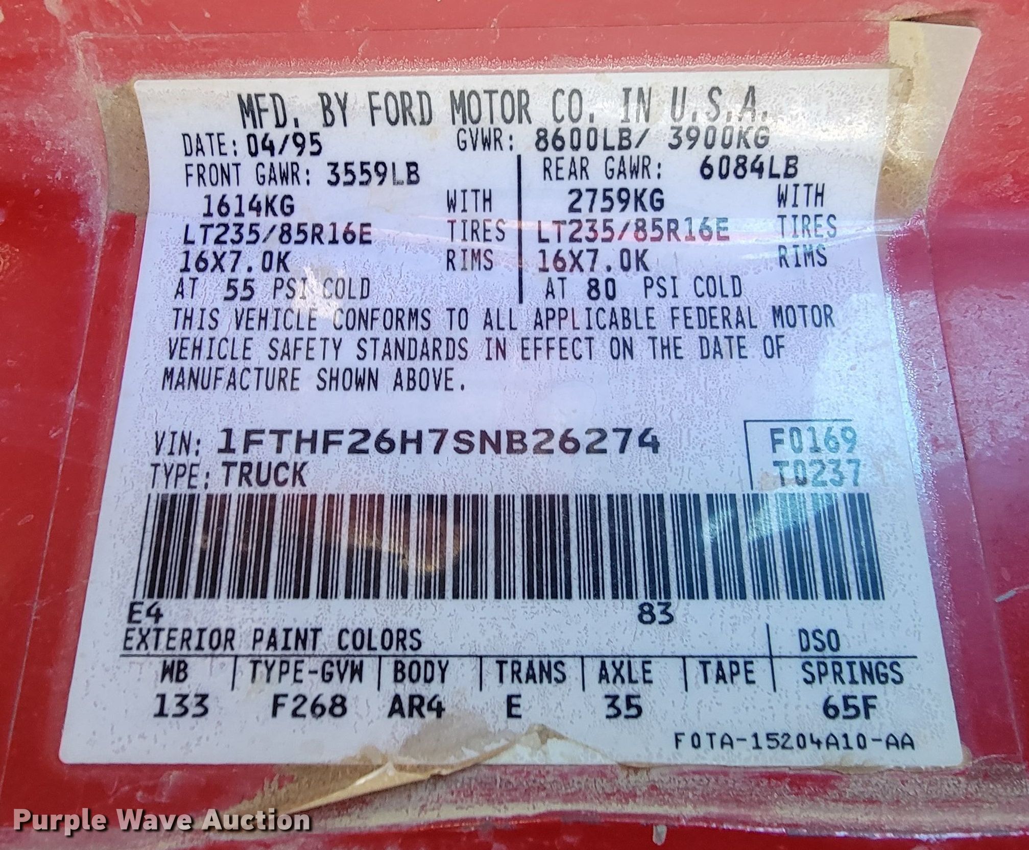 Purple Wave is selling a used 1/2 Ton Pickup or Van in South Dakota. This item is a 1995 Ford F250 XL pickup truck with the following: Miles: Unknown, VIN: 1FTHF26H7SNB26274