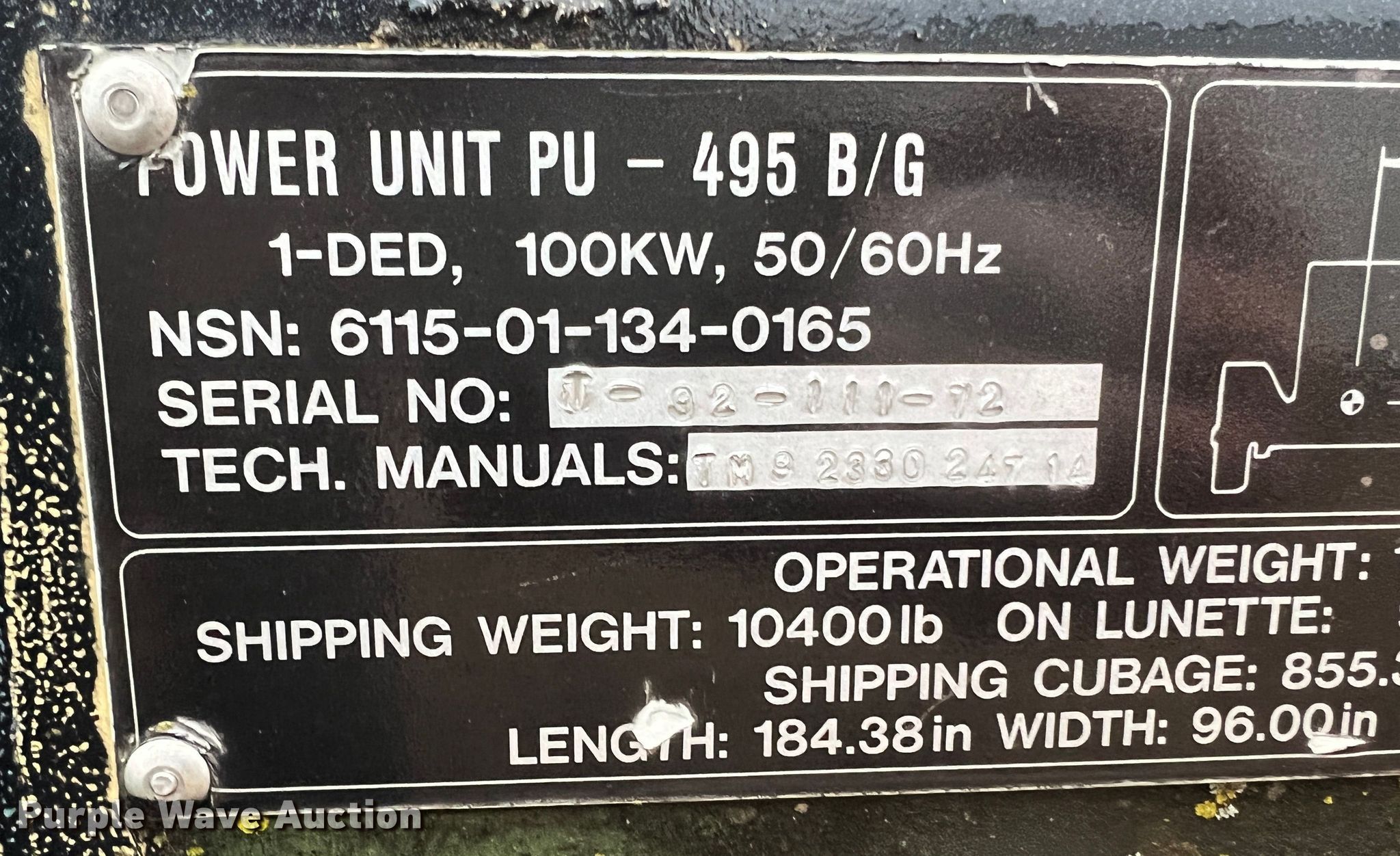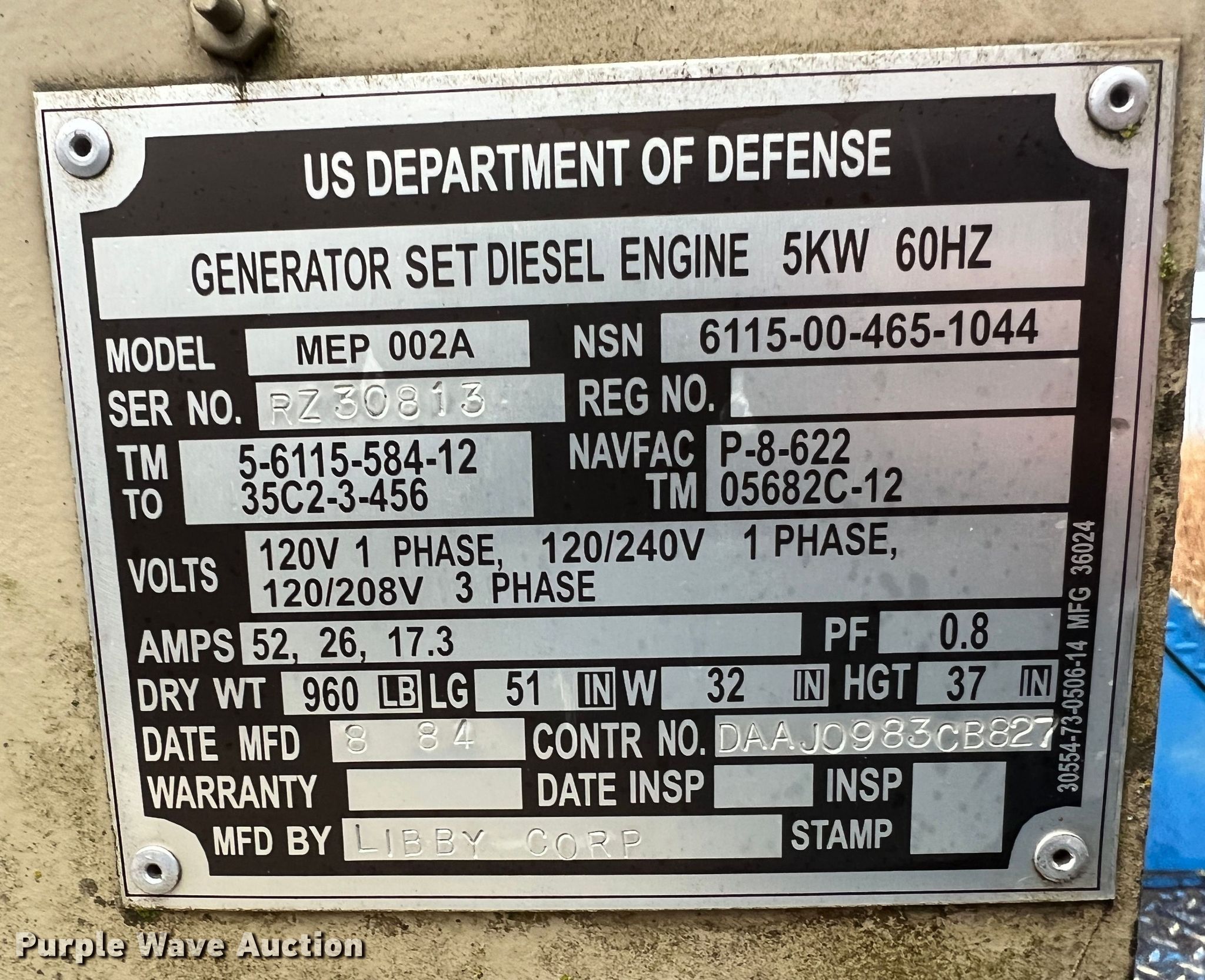 Purple Wave is selling a used Generator Set in Missouri. This item is a 1984 Libby Corp MEP002A generator with the following: Hours: 32 on meter, Serial: T-92-111-72