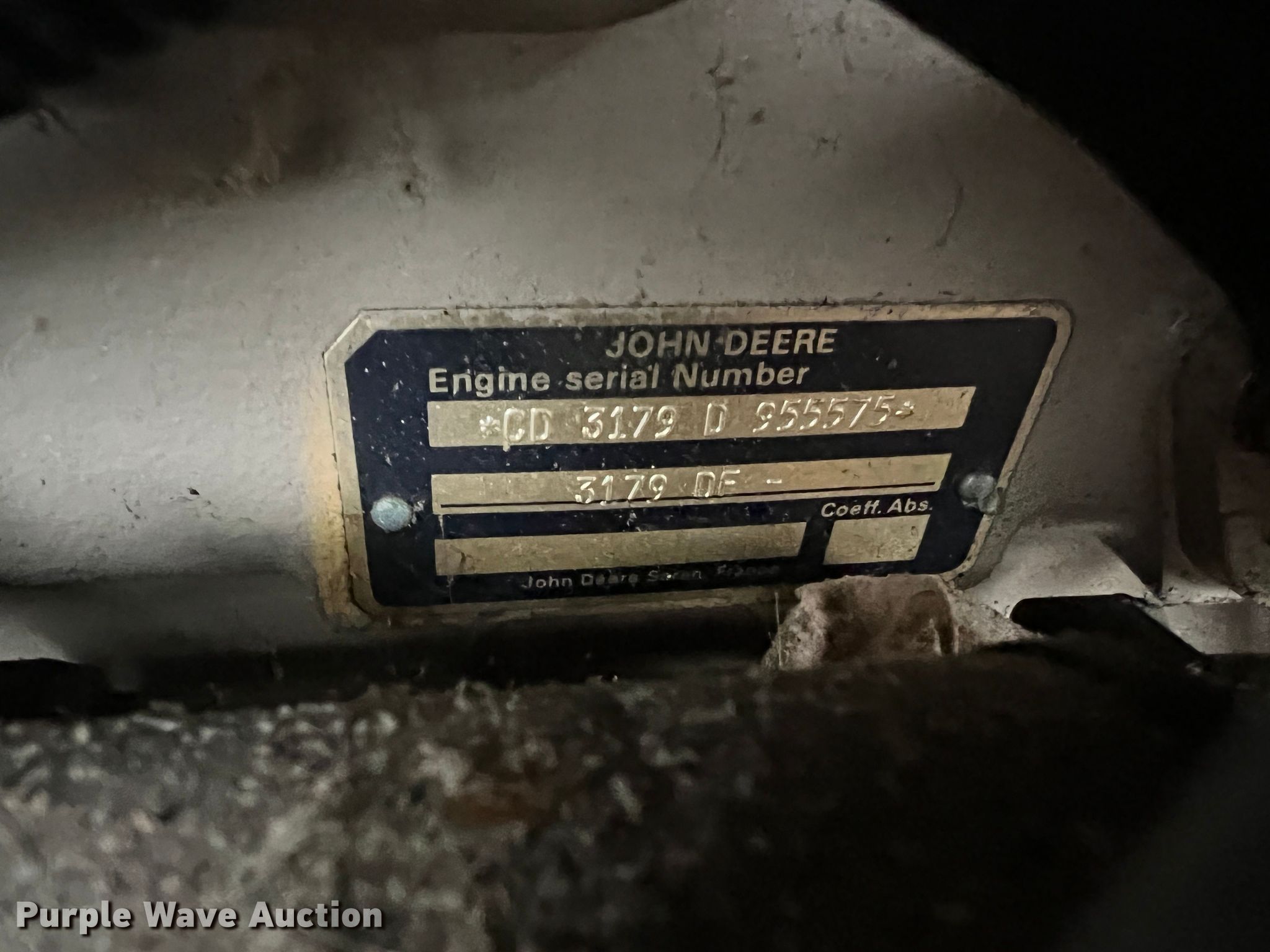 1992 US Military 13M125RPDQ air compressor. Hours: 308 on meter, Serial: 922985. Engine John Deere 3179DF, Serial: CD3179D955575, Fuel type: Diesel. Trailer 10' 11" L x 45" W, Axles: Single. Notes No wheels or tires. Transfer of ownership documentation will be a bill of sale. 30870 Webb Loop. Stover, MO 65078