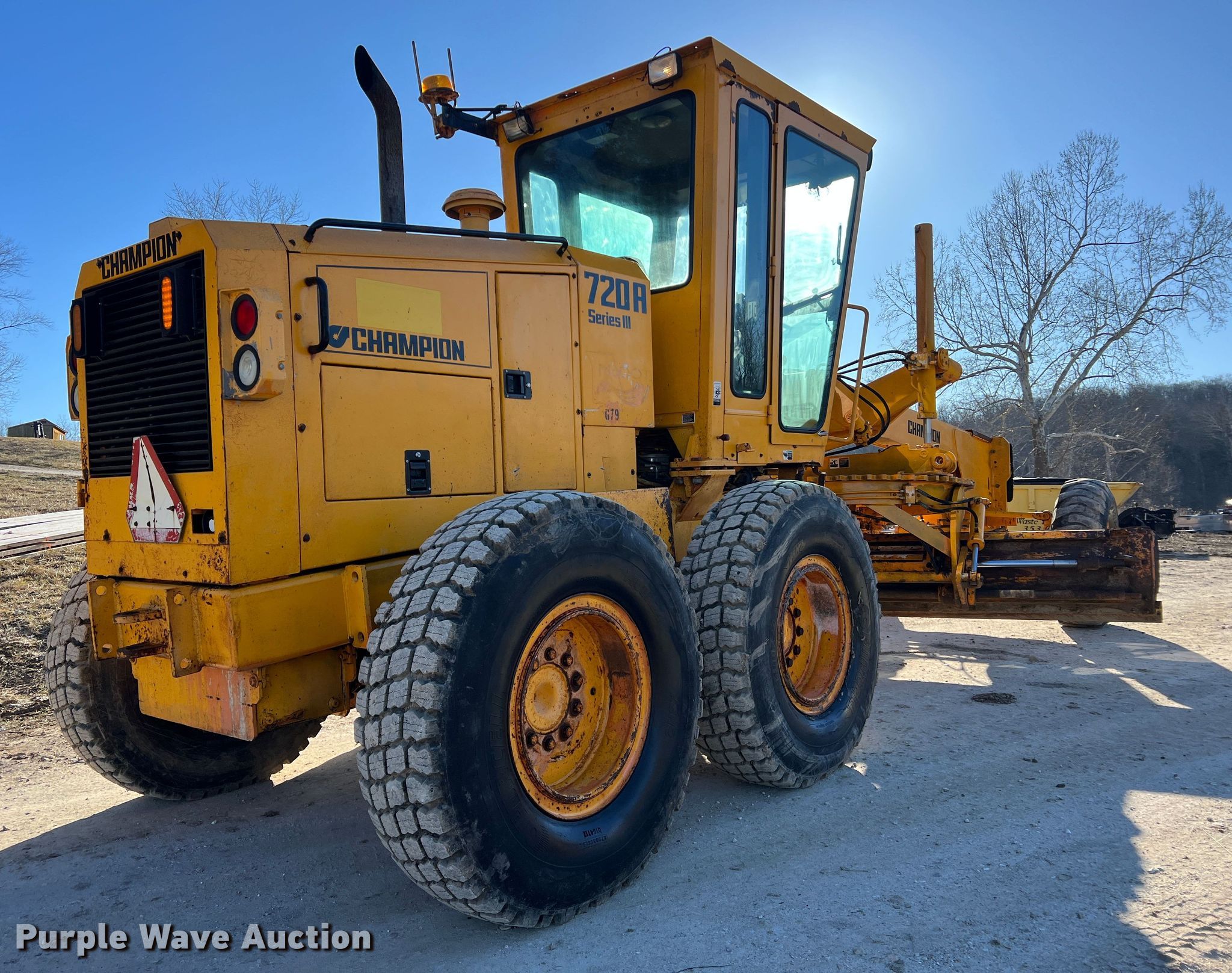 Purple Wave is selling a used Motor Grader in Missouri. This item is a 1993 Champion 720A Series III motor grader with the following: Hours: 6,937 on meter, Serial: 720A-187-1529-23322, Unit #: 8054
