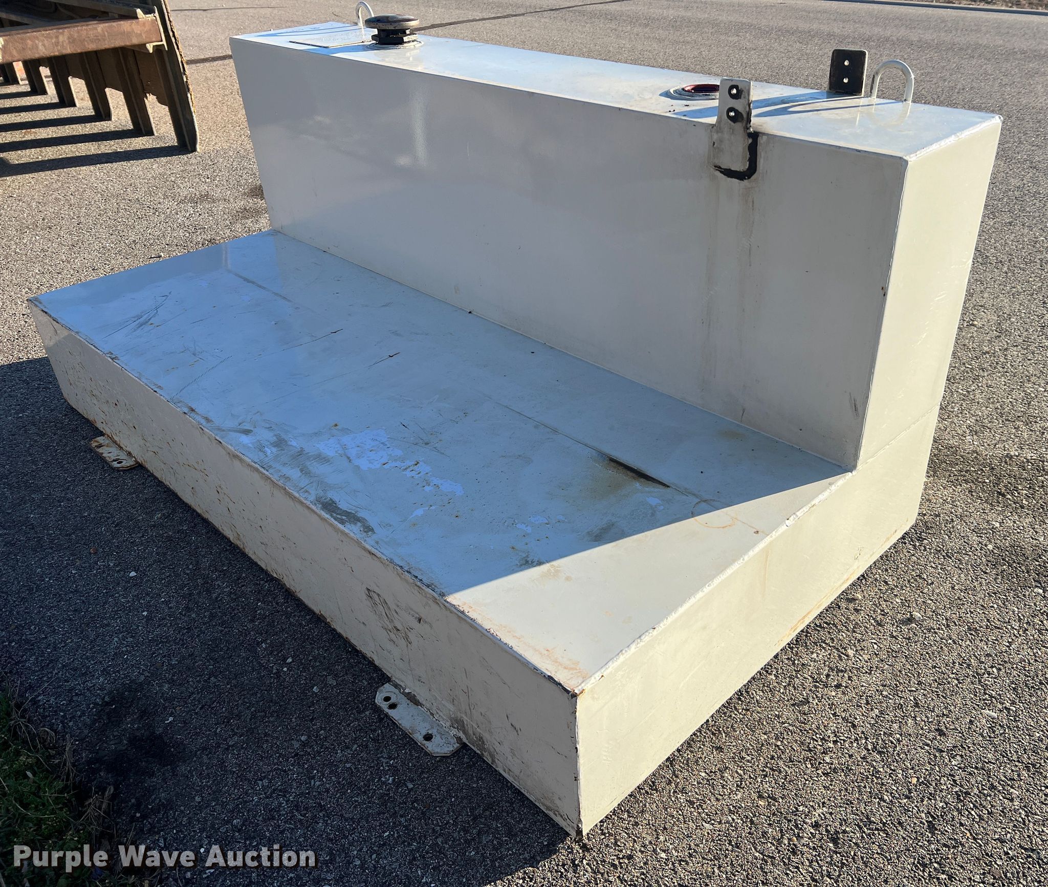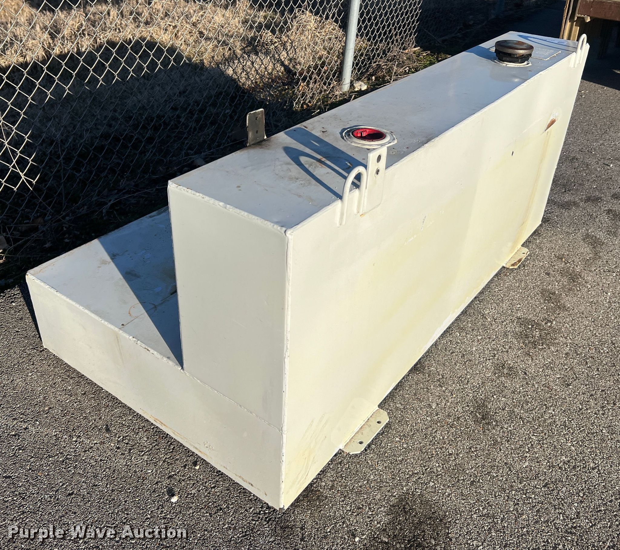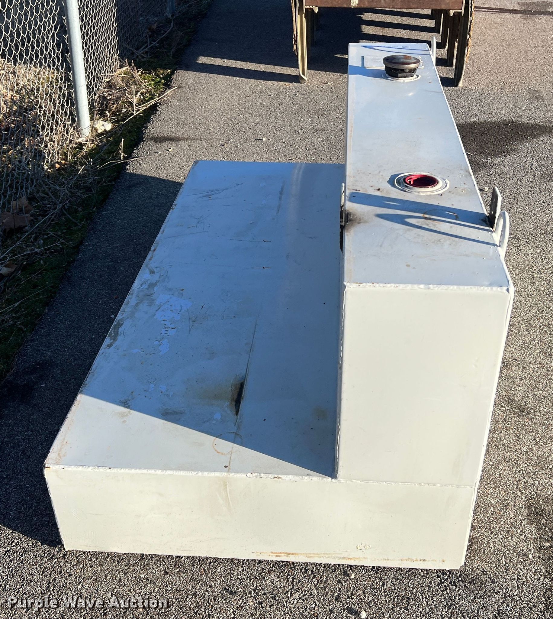 Purple Wave is selling a used Truck Part and Attach. in Missouri. This item is a Delta 480000 fuel transfer tank with the following: Serial: 125567, Capacity: 105 gallons, 31" L x 59.5" W x 26" H