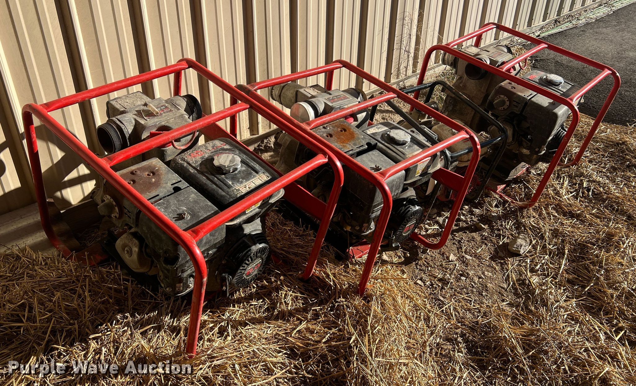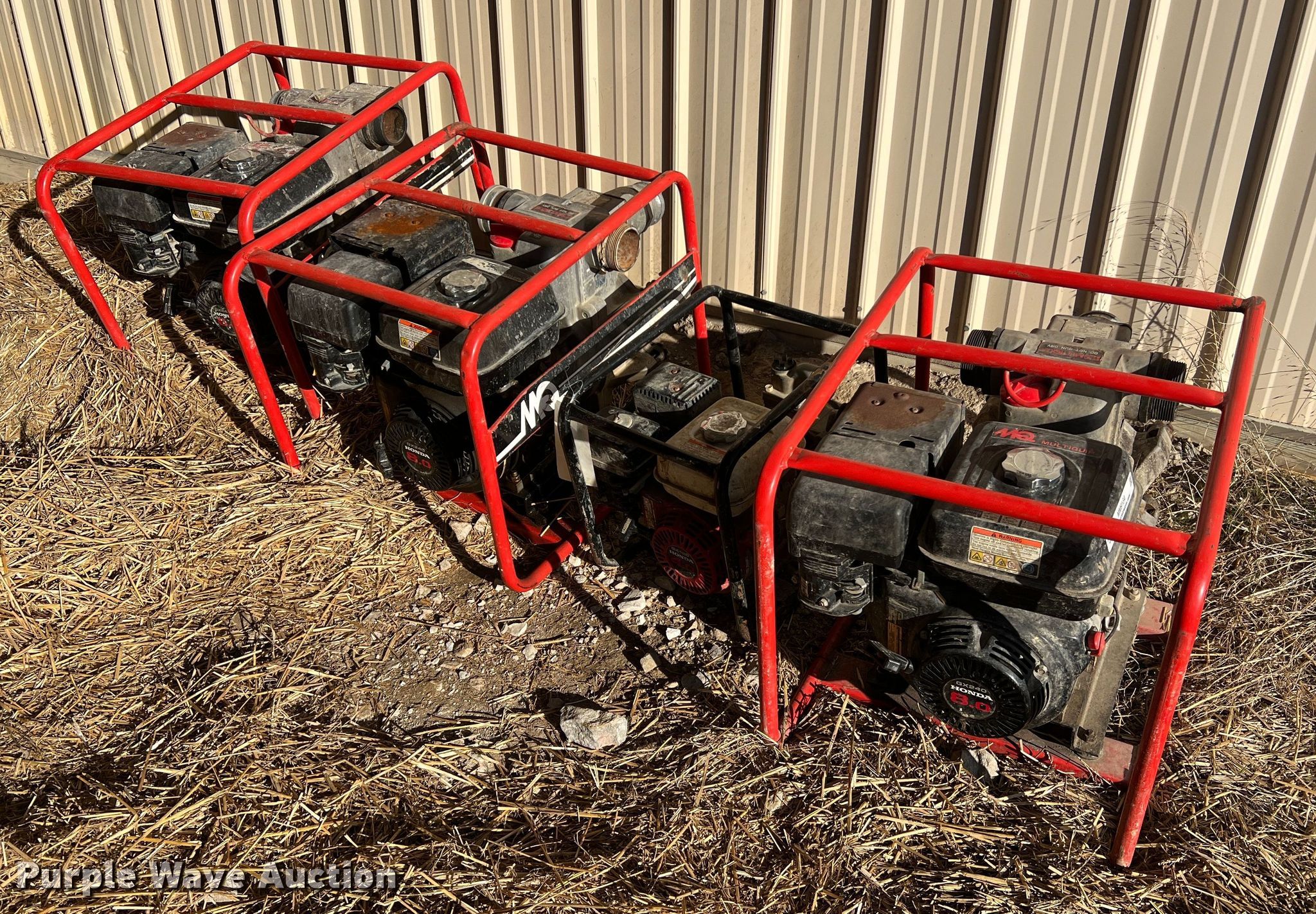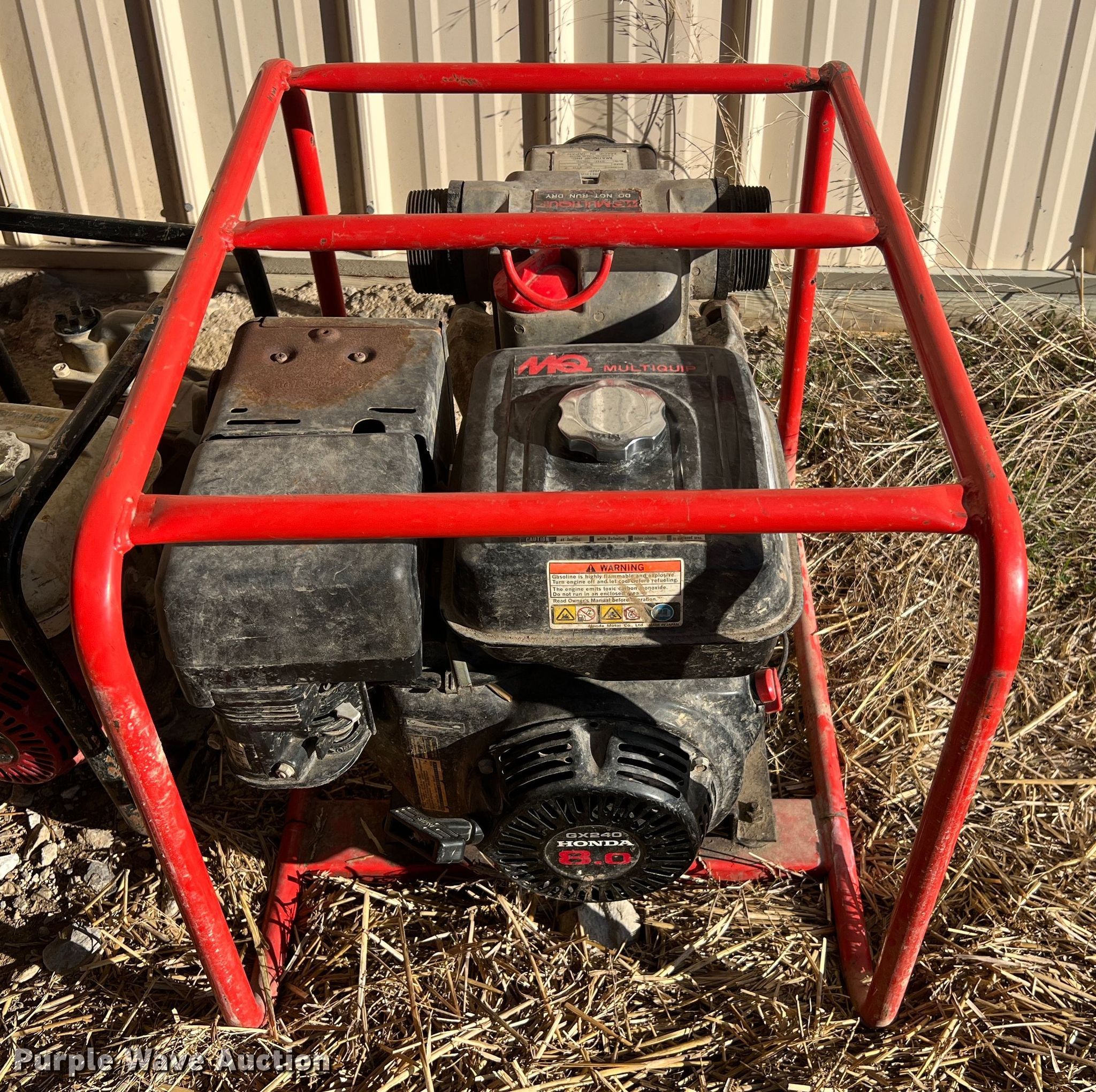 Purple Wave is selling a used Pump in Missouri. This item is a (4) trash pumps with the following: (3) MultiQuip QP-3TH 3" pumps, Honda GX240 gas engines, Tsurumi TE2-50HA 2" pump, Honda GX120 gas engine, 4 HP
