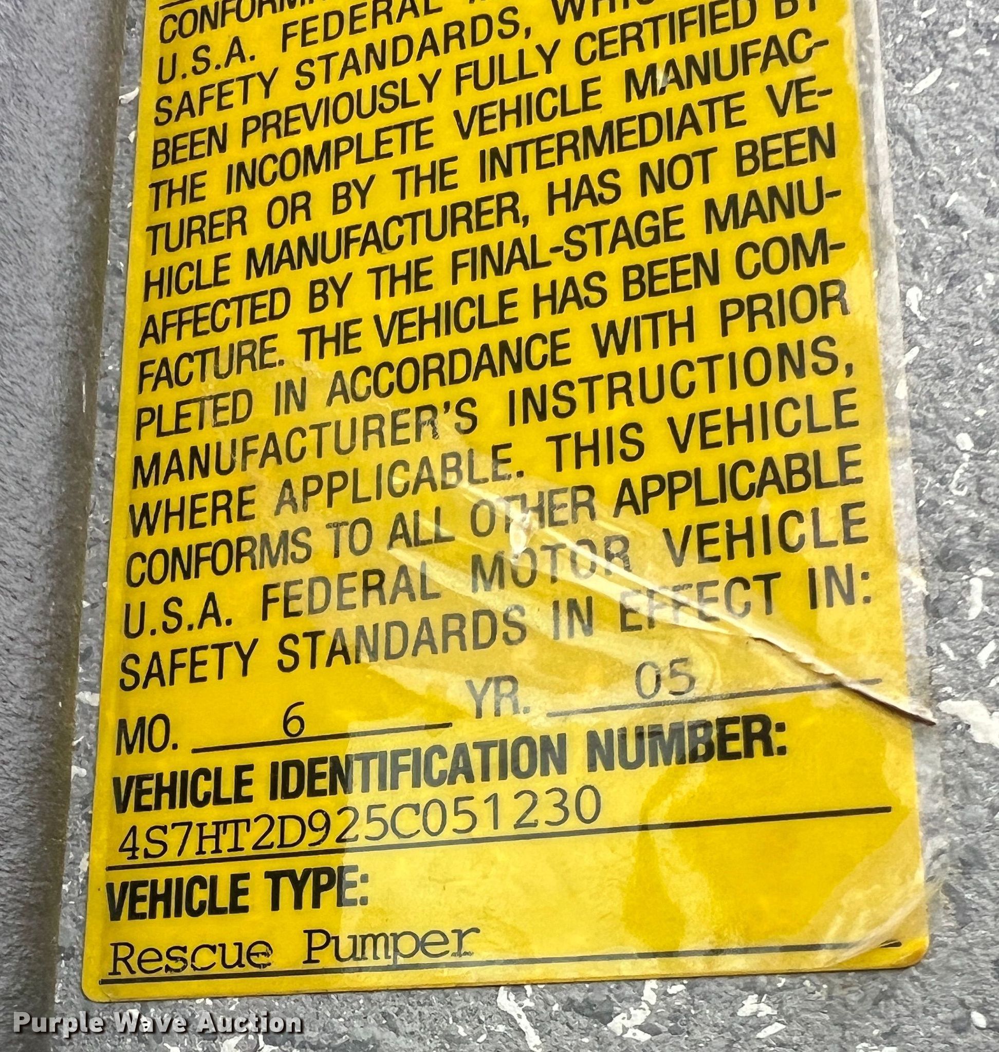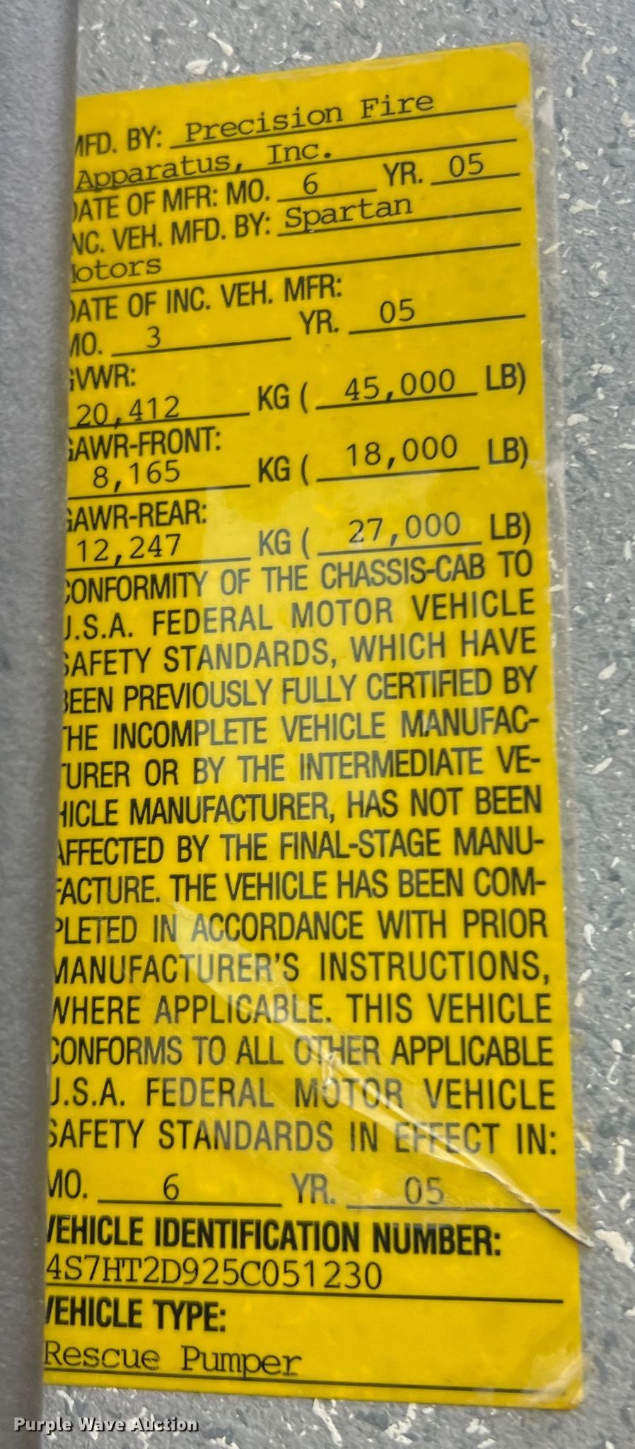 Purple Wave is selling a used Fire Truck or Emergency Vehicle in Missouri. This item is a 2005 Spartan Advantage Pumper pumper fire truck with the following: Miles: 44,623 on odometer, VIN: 4S7HT2D925C051230, Unit #: 1401