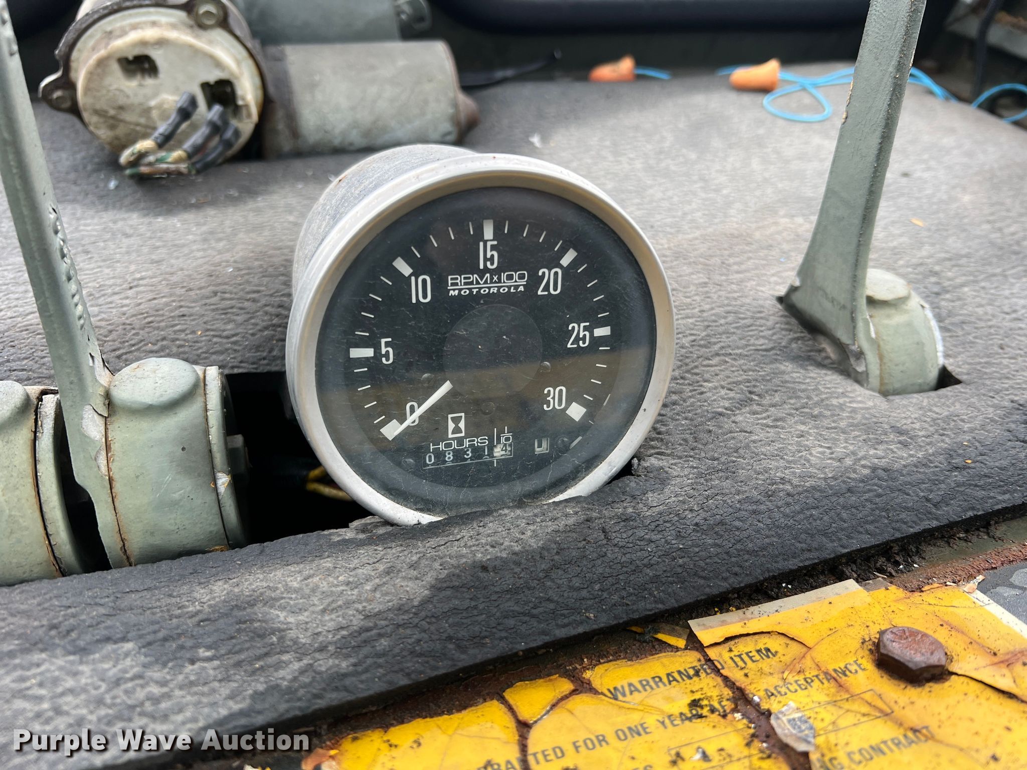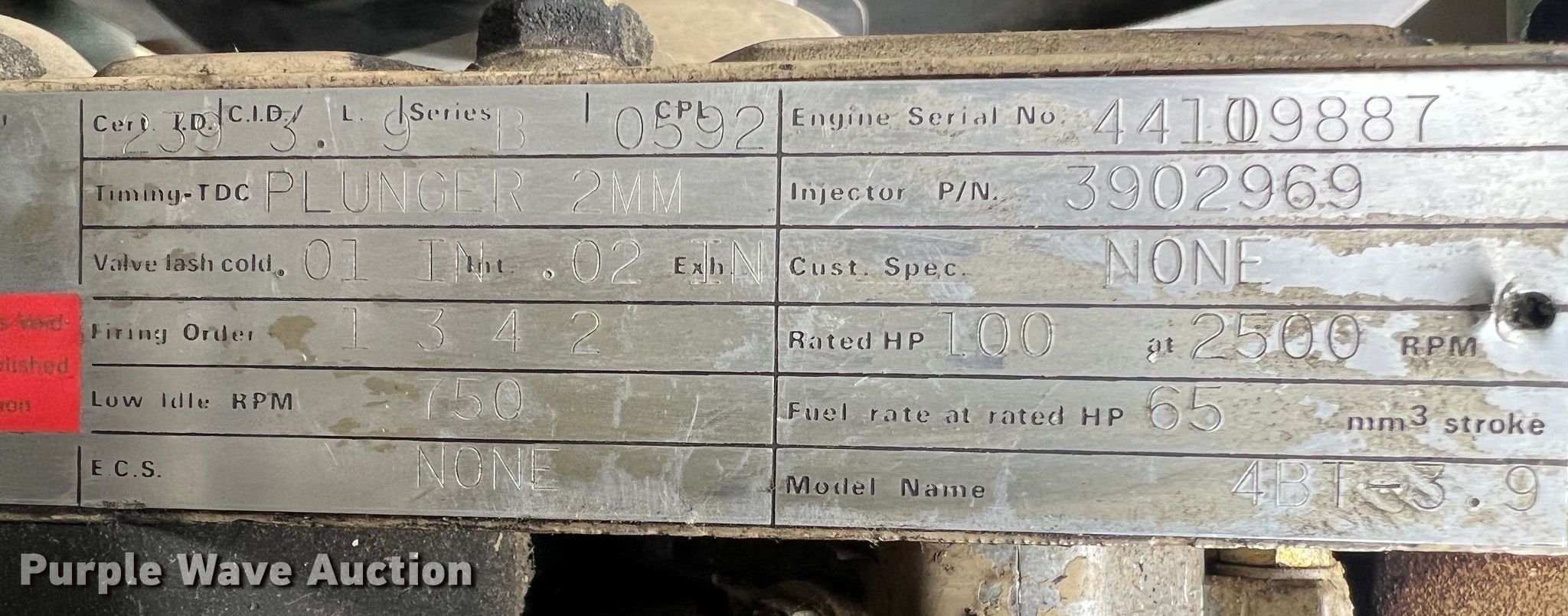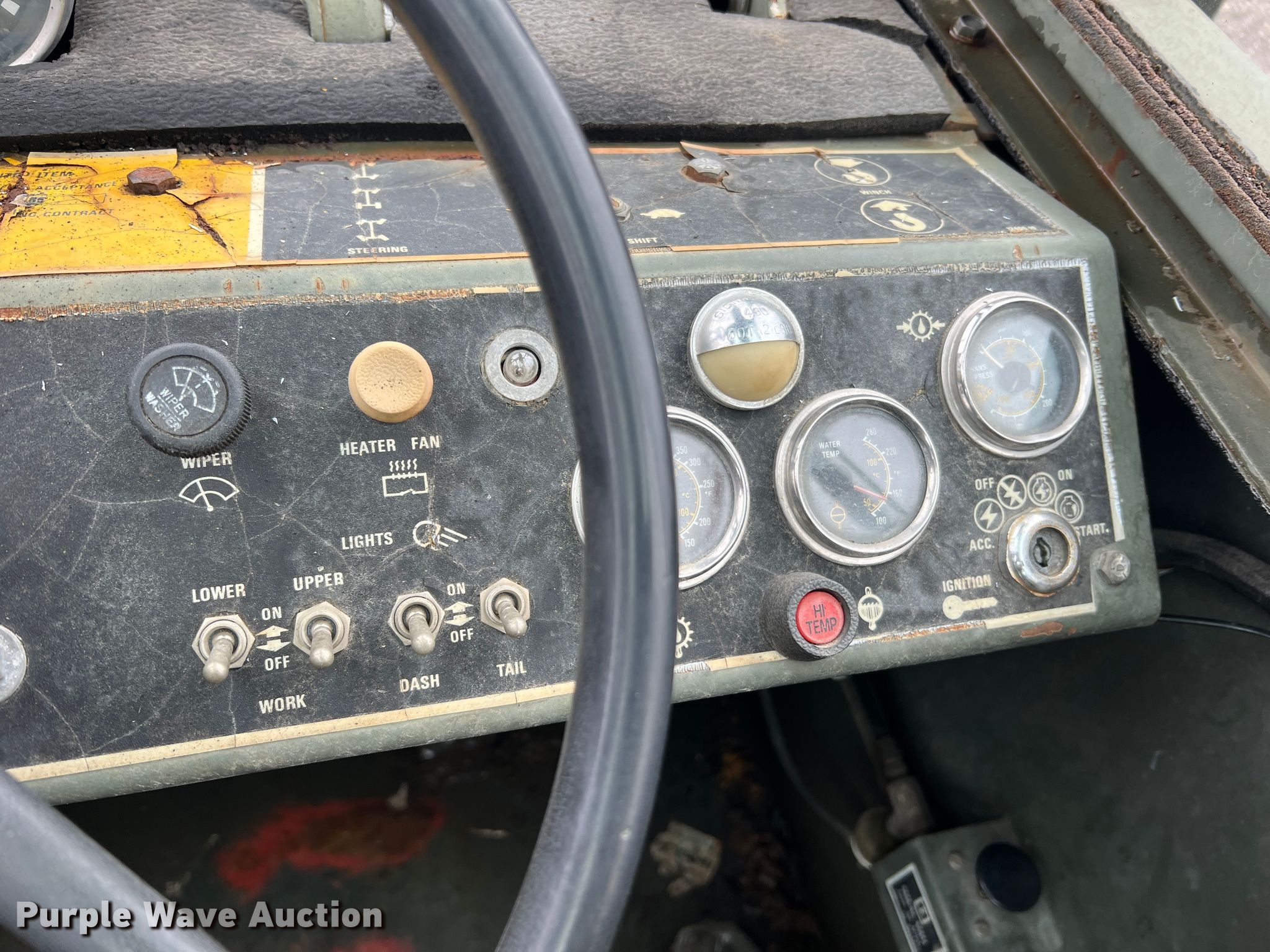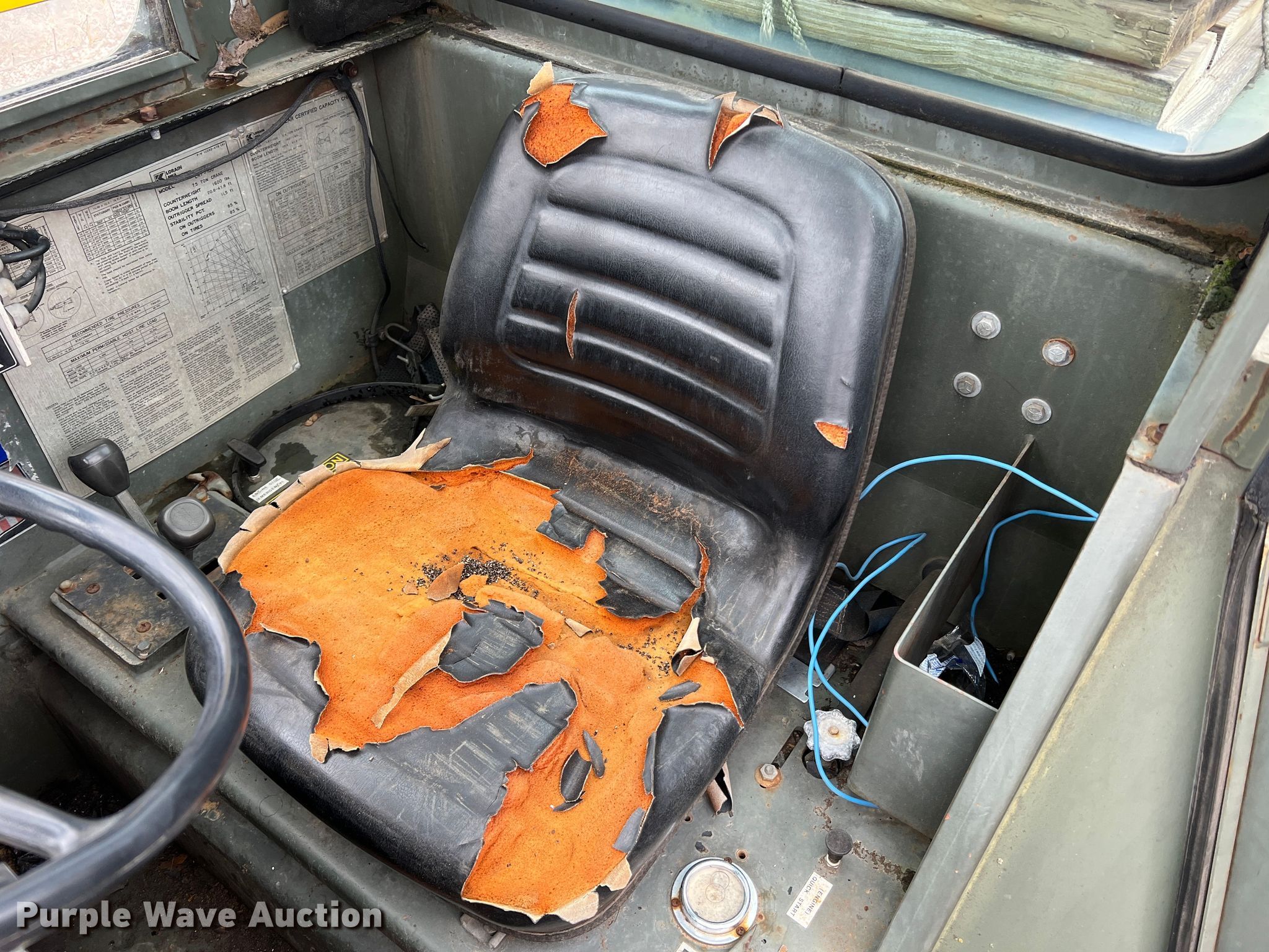 1984 Lorain LRT-100 crane. Hours: 831 on meter, Serial: 97114. Engine Cummins 4BT-3.9, Serial: 44109887, Displacement: 3.9L, Cylinders: 4, Fuel type: Diesel. Transmission 3F - 3R. Chassis Axles: Single, Brakes: Air. Operators station Enclosed cab, Crane controls: Joysticks. Features Boom Telescopic, Sections: 3, Maximum lift capacity: 15,000 lbs, Maximum lift height: 41.6', Stabilizers: 4, Boom controls In-cab, Winches: 1, Crane block Sheaves: 1, Lift chart. Tires Size: 15-22.5. Notes Non-operational parking brake. Transfer of ownership documentation will be a bill of sale. City of Jefferson, MO. 935 Ellis Boulevard. Jefferson City, MO 65101