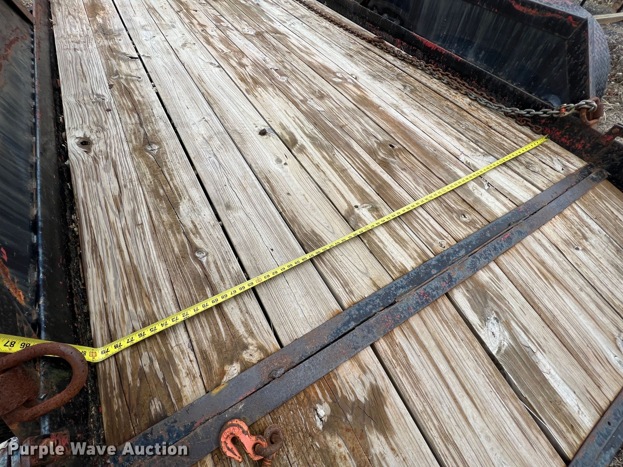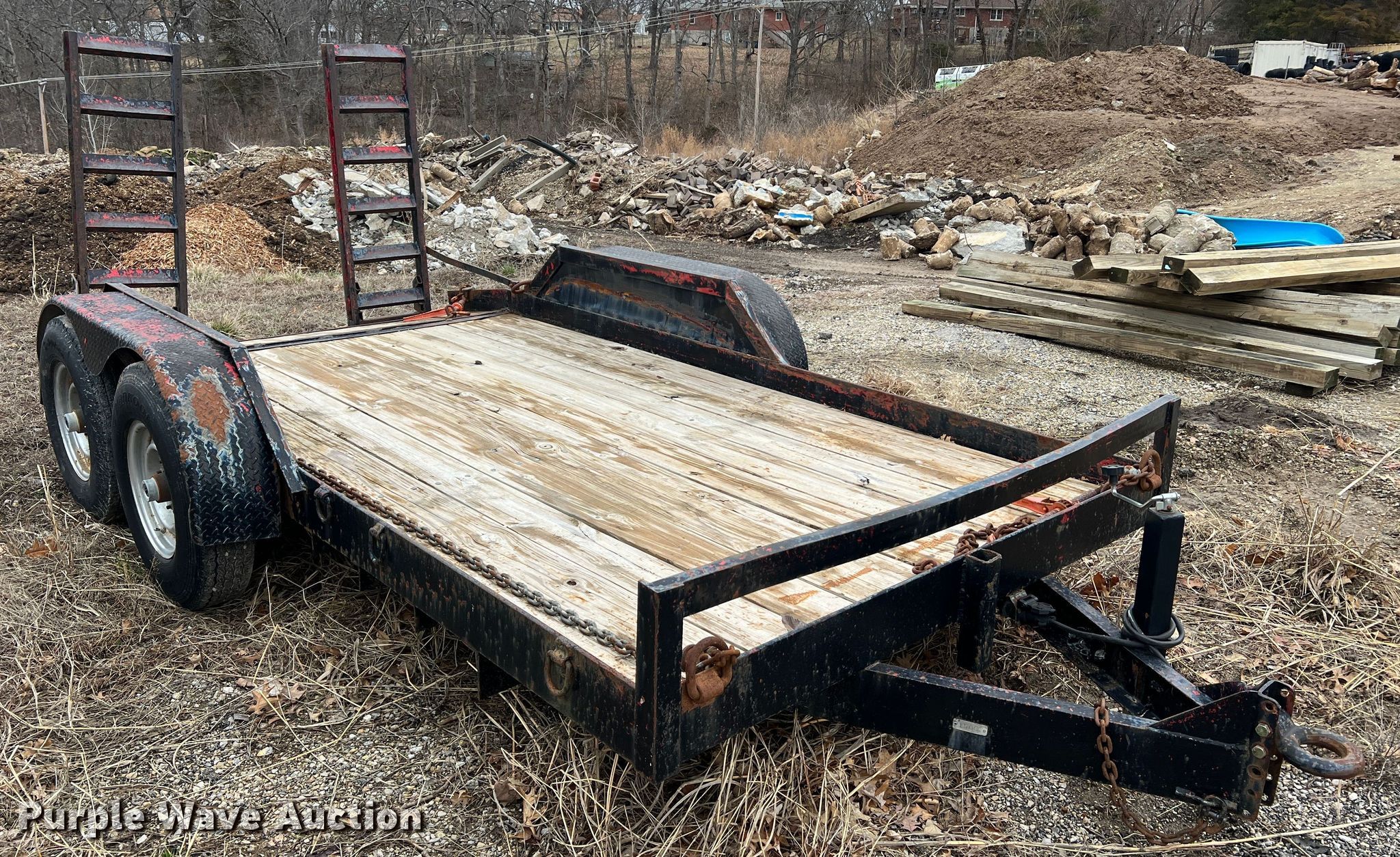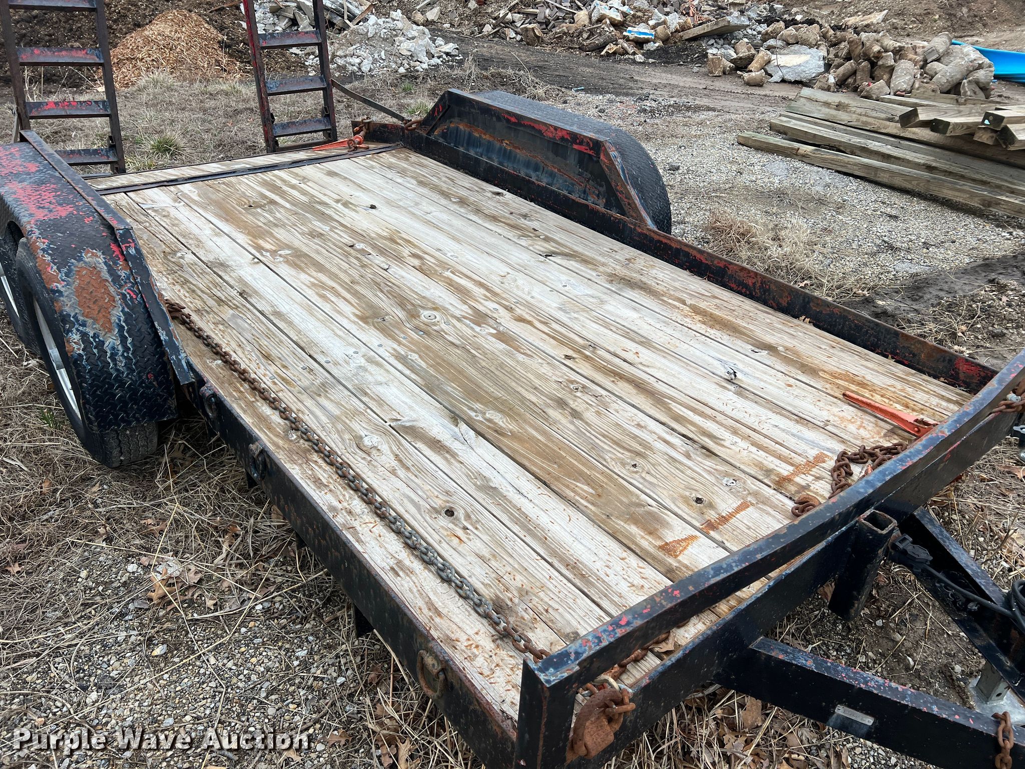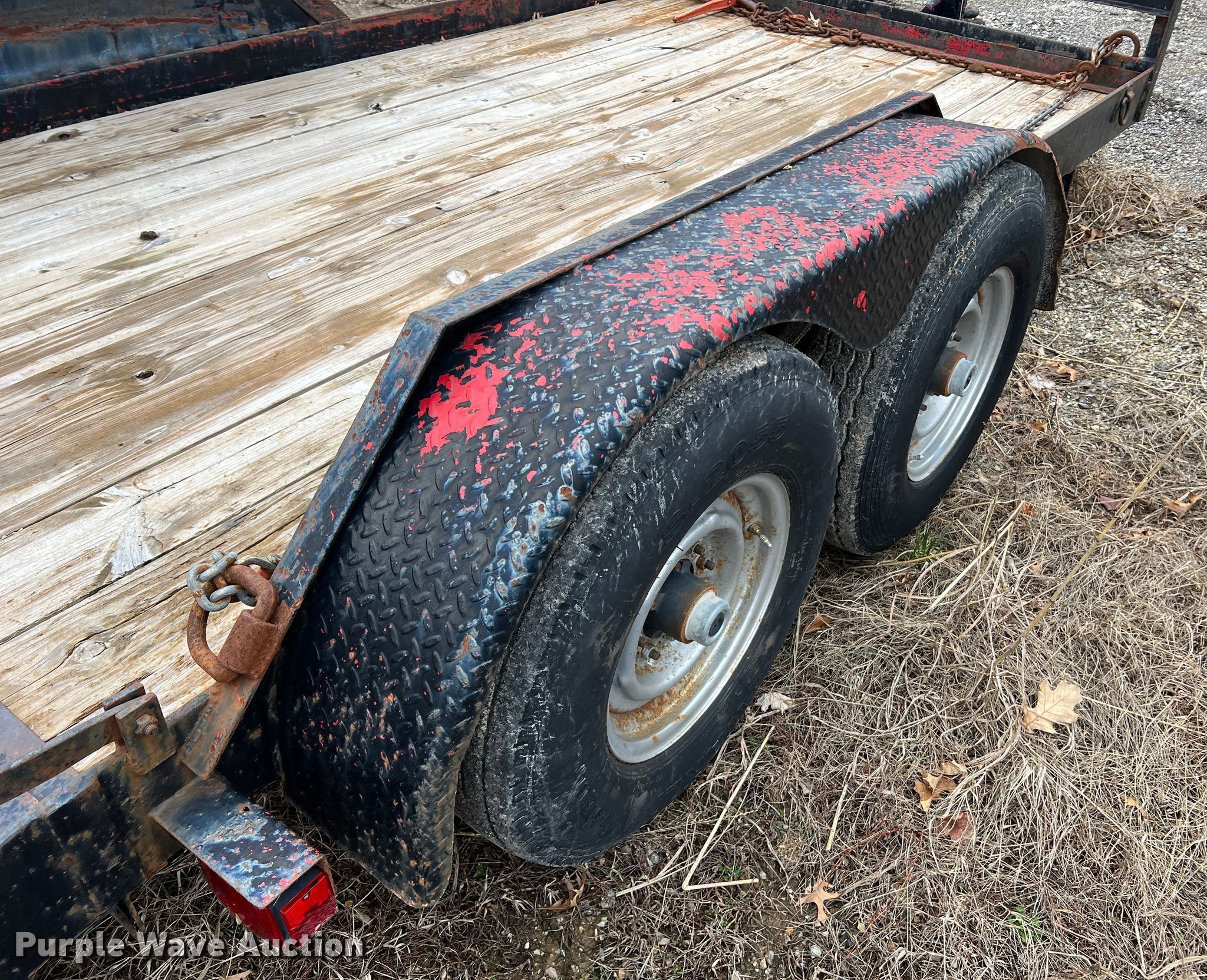 Equipment trailer. VIN: 15025. Dimensions Overall: 19' 6" L x 101" W, Deck: 14' 1" L x 80.5" W, Tail length: 22.5", Ramps: Manual Length: 60". Features Deck type: Wood. Chassis Hitch: Pintle, Landing gear: Single, Suspension: Spring, Brakes: Electric, Axles: Tandem. Tires Steel wheels, Size: 7.50R16LT. Notes Chains not included, Binders not included. Missouri municipality owned asset. No title will be provided.. Transfer of ownership documentation will be a notarized bill of sale in accordance with MSR 301.260. Bidders are responsible for verifying if this is sufficient to obtain title in their jurisdiction prior to bidding. City of Jefferson, MO. 935 Ellis Boulevard. Jefferson City, MO 65101