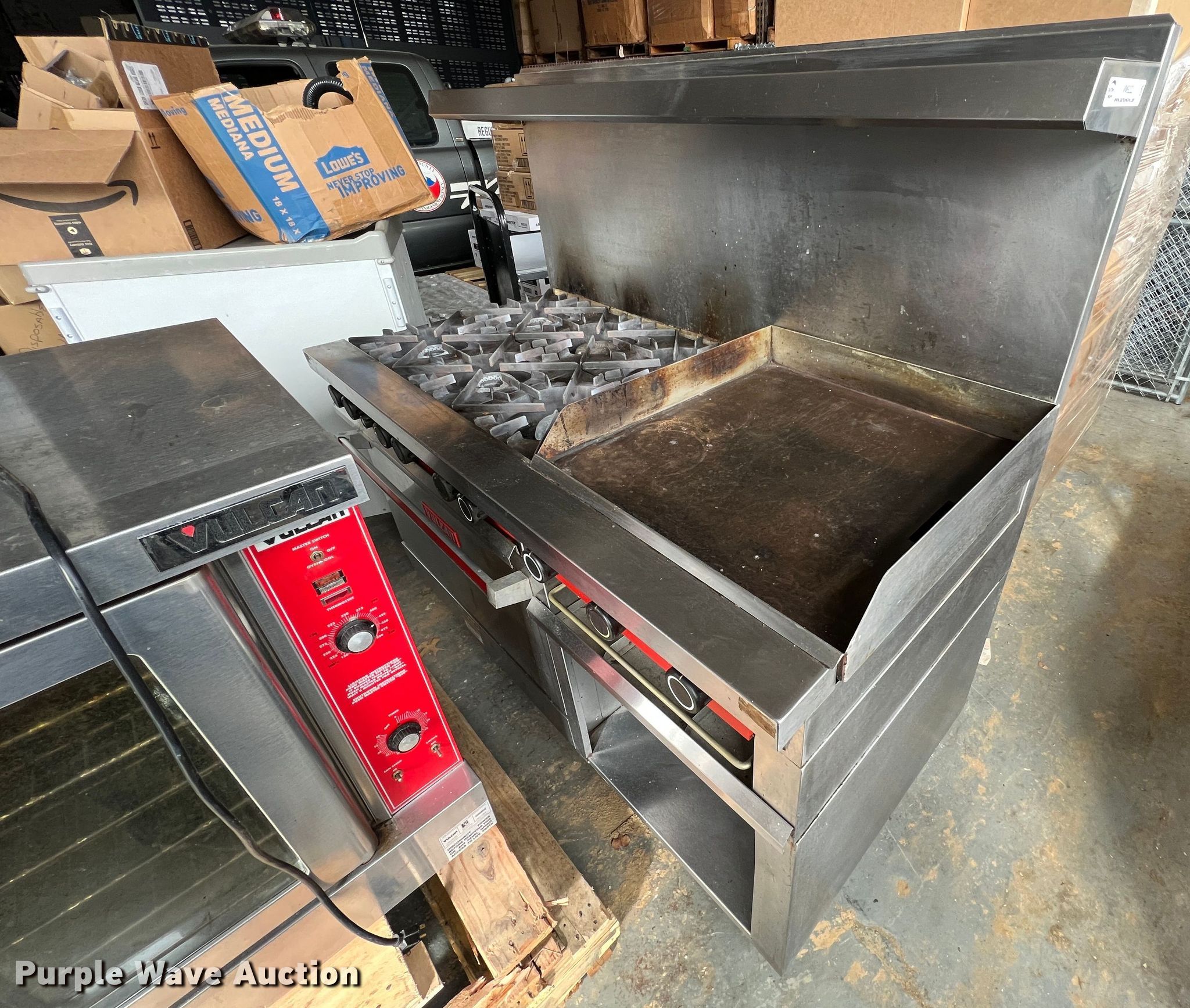 Purple Wave is selling a used Restaurant Equip. in Missouri. This item is a Vulcan kitchen equipment with the following: Gas Stove, Oven