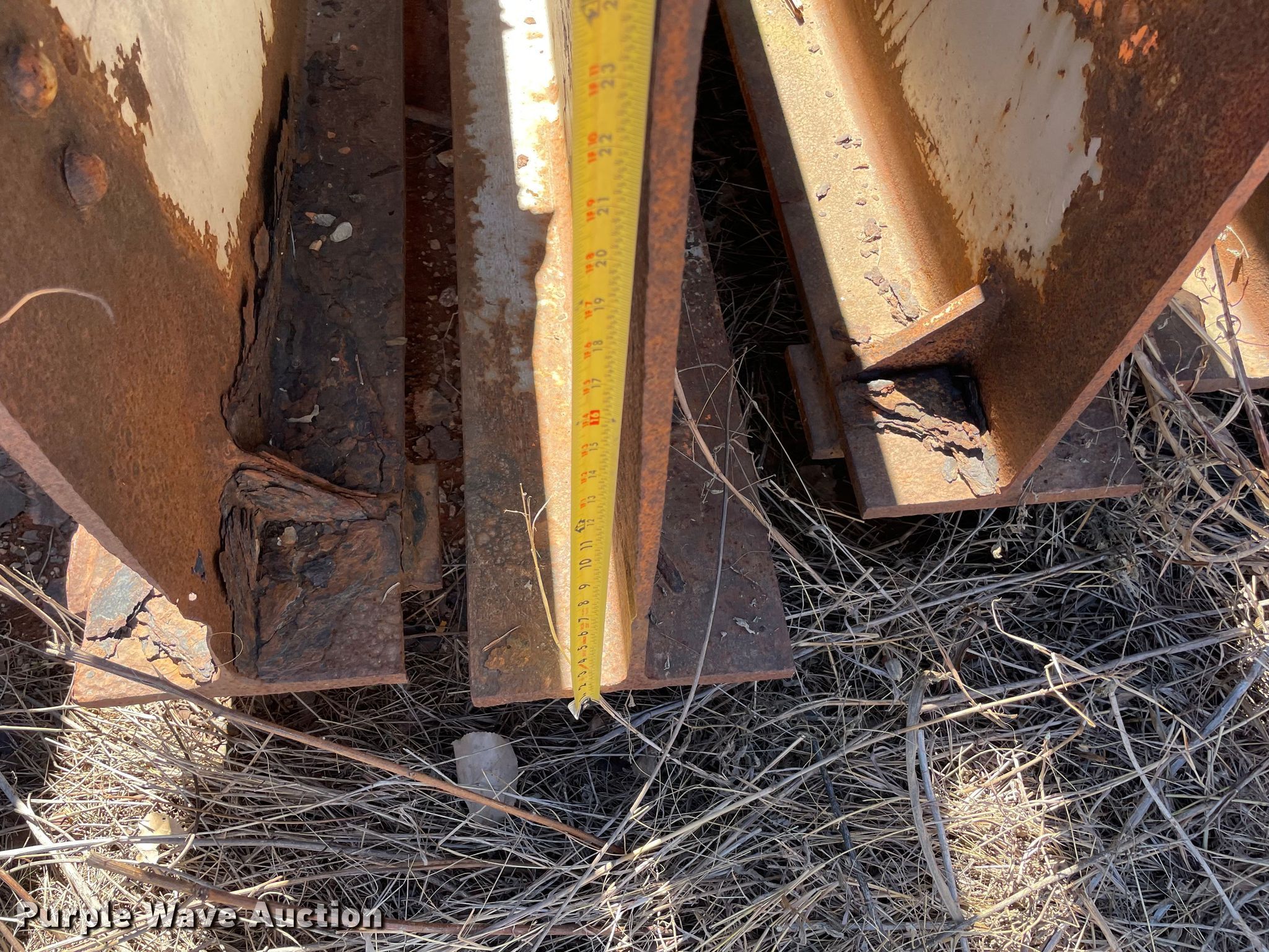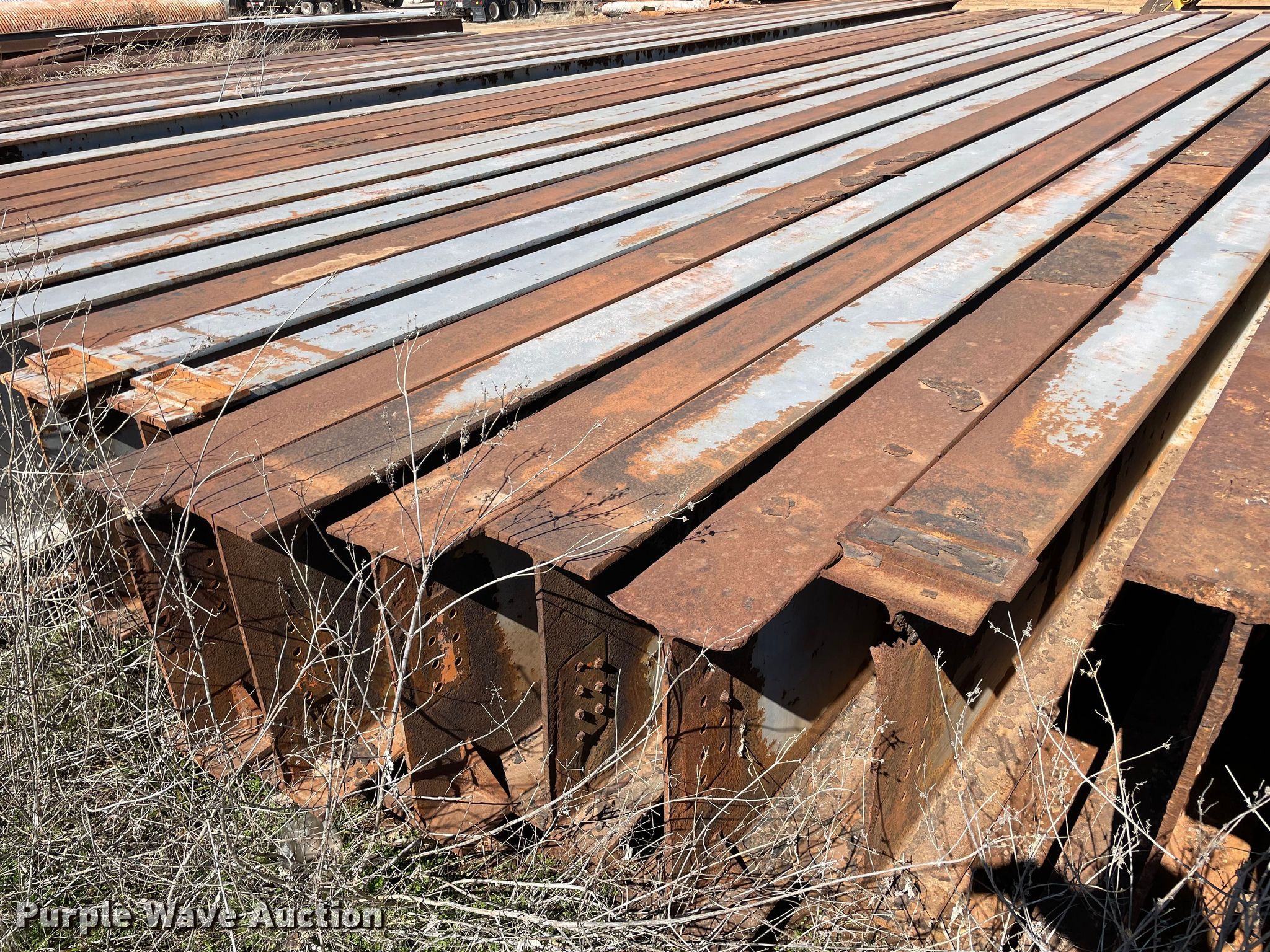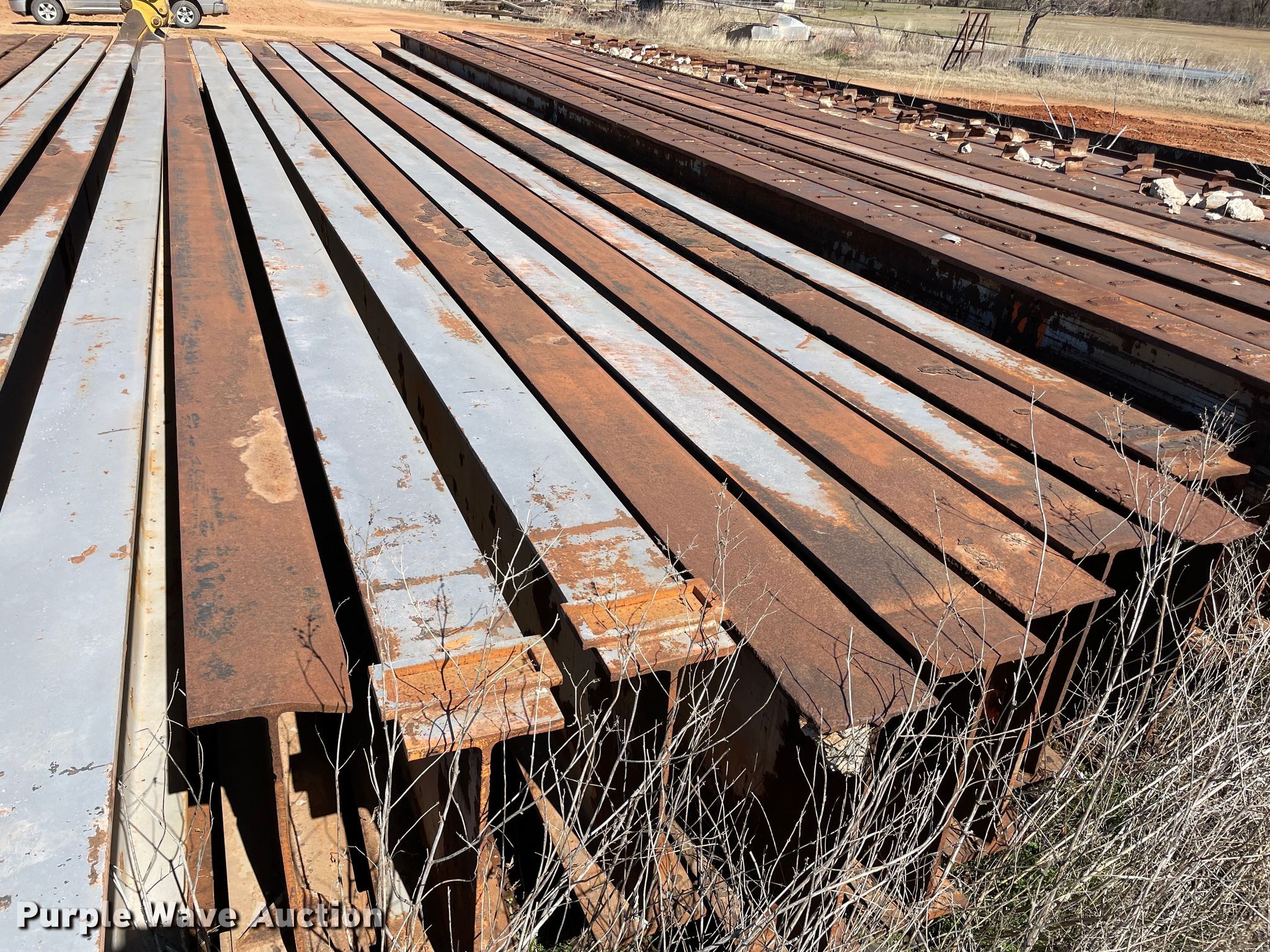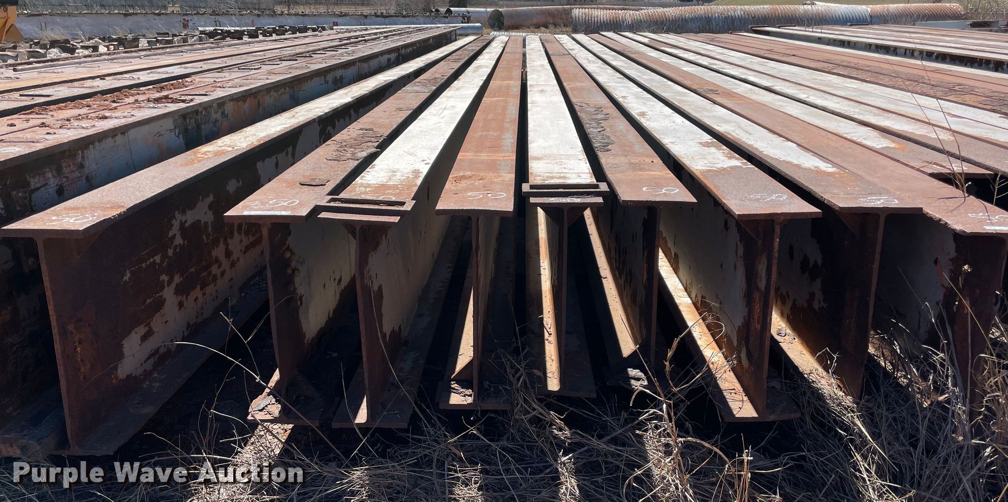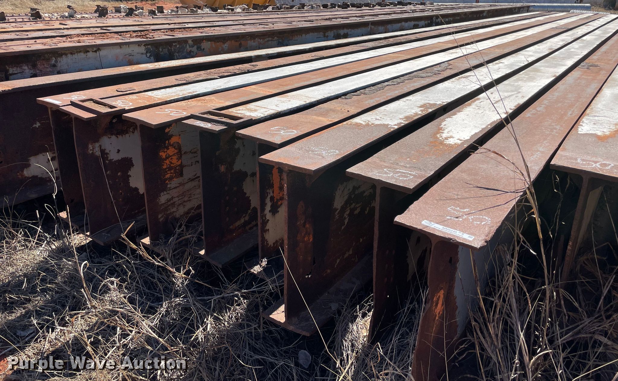 Purple Wave is selling a used Building Materials in Oklahoma. This item is a (9) steel I-beams with the following: 50' L x 10 1/4" W x 30" H, Flange thickness: 5/8", Web thickness: 1/2"