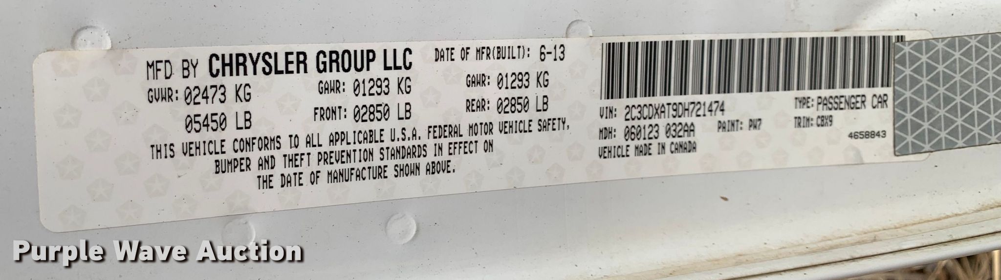 Purple Wave is selling a used Passenger Vehicle in Oklahoma. This item is a 2013 Dodge Charger Police with the following: Miles: Unknown, VIN: 2C3CDXAT9DH721474, Unit #: 1701