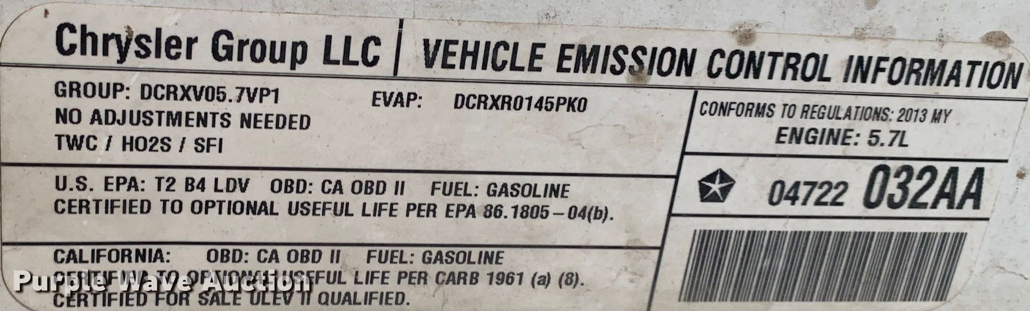 2013 Dodge Charger Police. Miles: Unknown, VIN: 2C3CDXAT6DH720847. Engine Displacement: 5.7L V8 OHV, Cylinders: 8, Fuel type: Gas. Transmission Automatic. Interior AC, Heat, Seat: Power driver, Heated mirrors, Power windows, Power locks, Cruise control. Tires Size: P225/60R18. Notes Decals will be removed prior to auction, Dead battery, Computer mount not included, Parts may be missing , Non-operational unit. Oklahoma title. Title distribution may be delayed up to 14 days from verification of funds. Mileage has not been verified. Odometer discrepancy will be marked on the title. All aspects of removal are the sole responsibility of the purchaser. Craig County Sheriff. 210 W Delaware Ave Ste# 101. Vinta, OK 74301