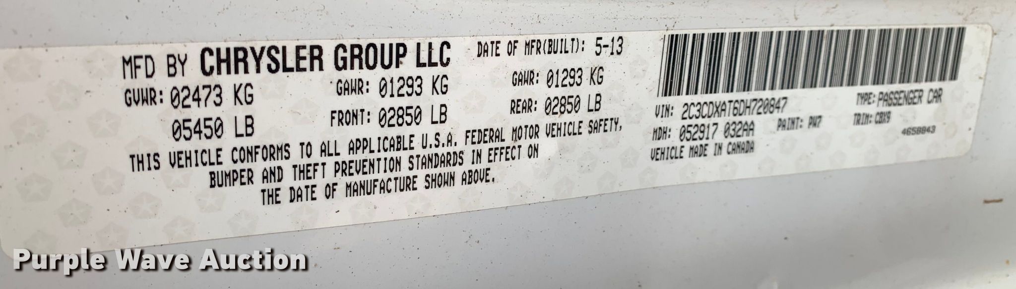 - VIN: 2C3CDXAT6DH720847