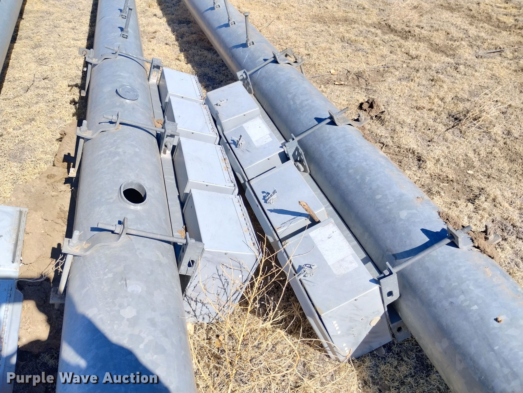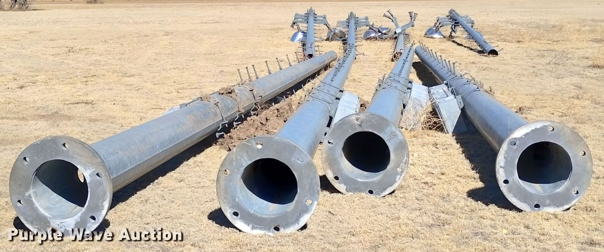 Purple Wave is selling a used Building Materials in Kansas. This item is a (4) Qualite stadium lights with the following: Poles, 73' x 25" diameter, Some fixtures missing or damaged, Unknown operating condition