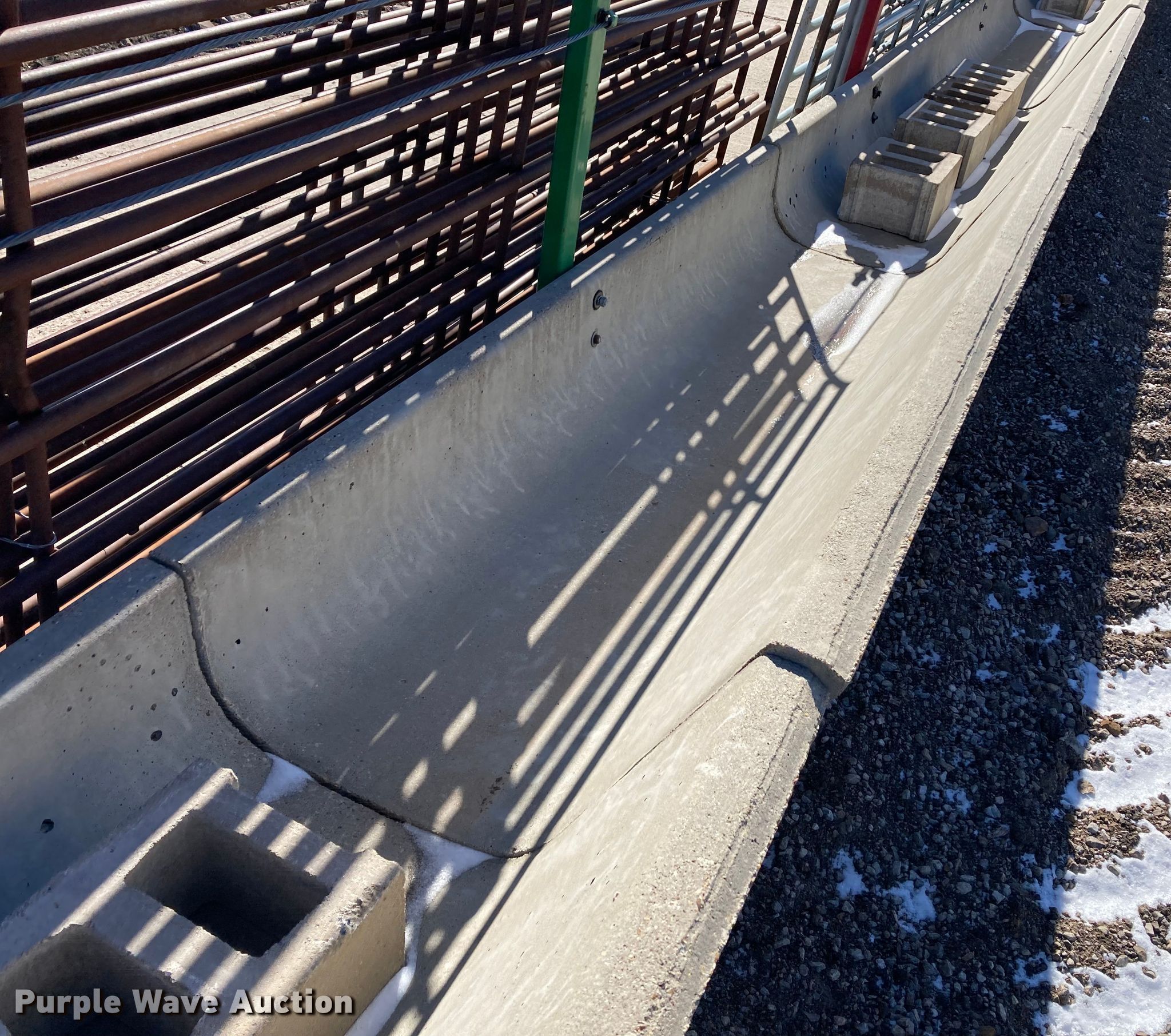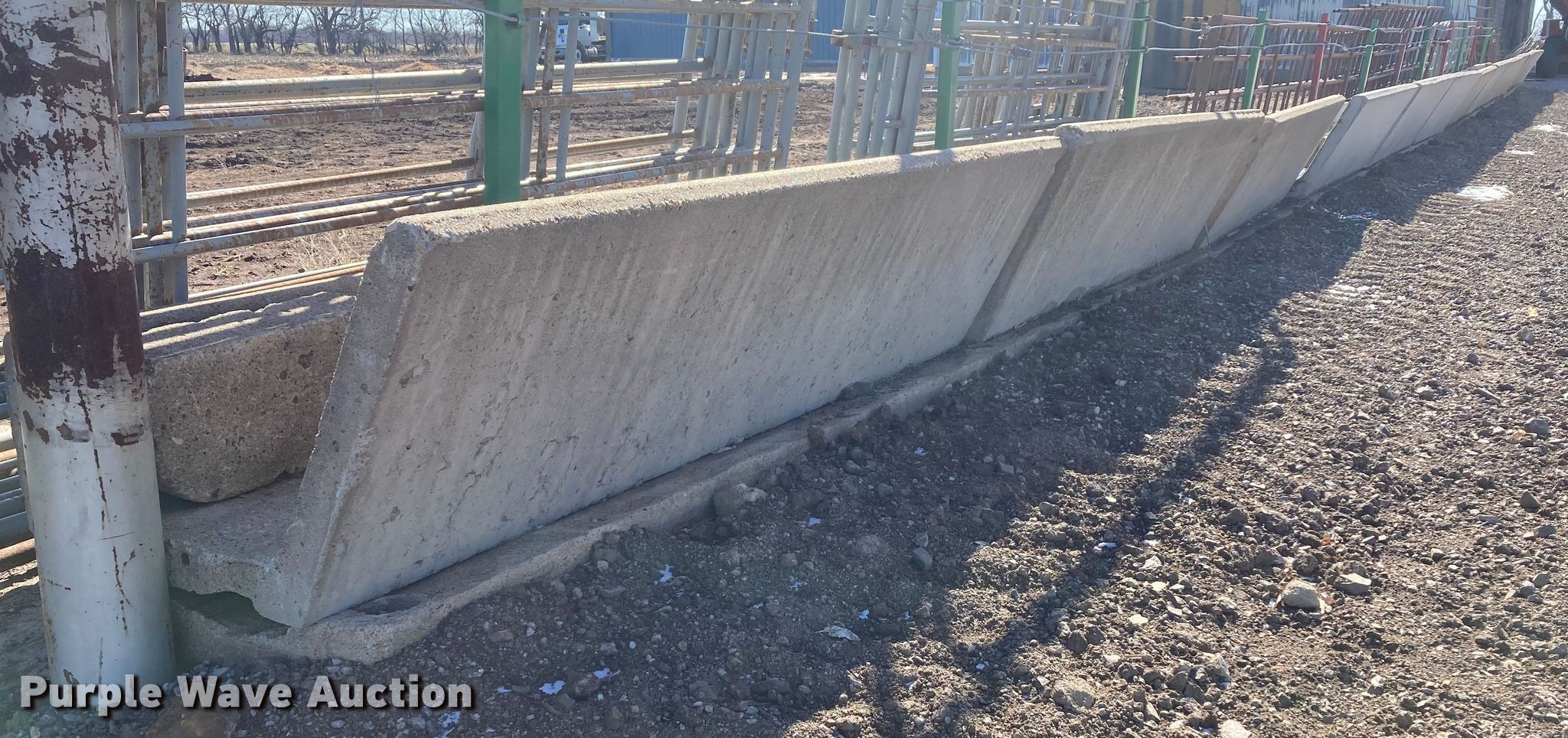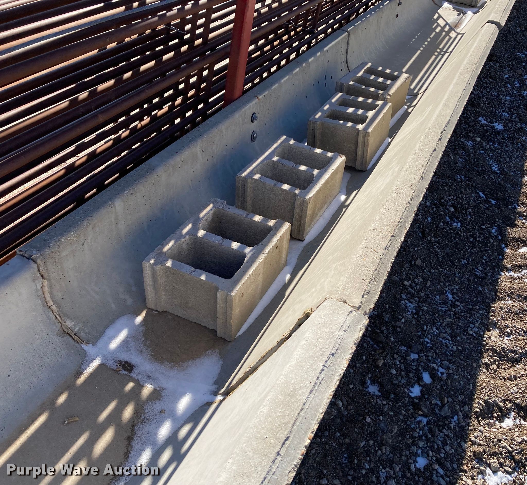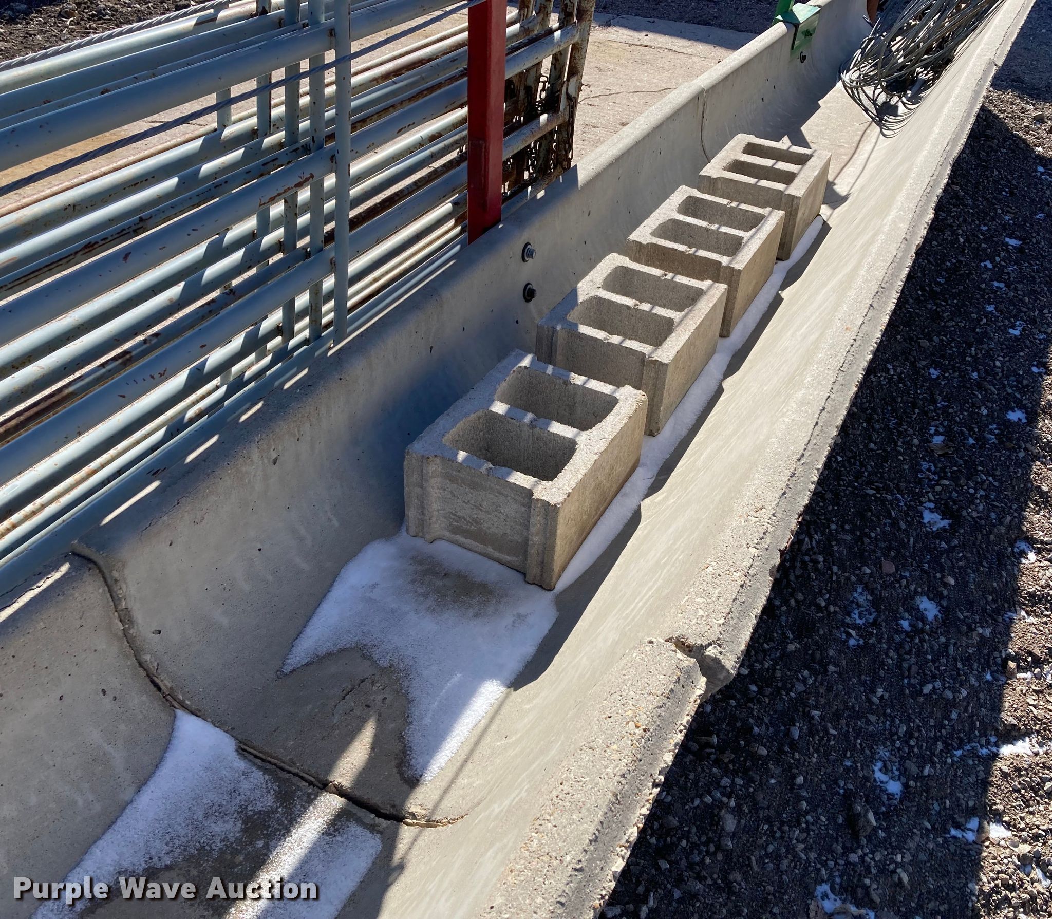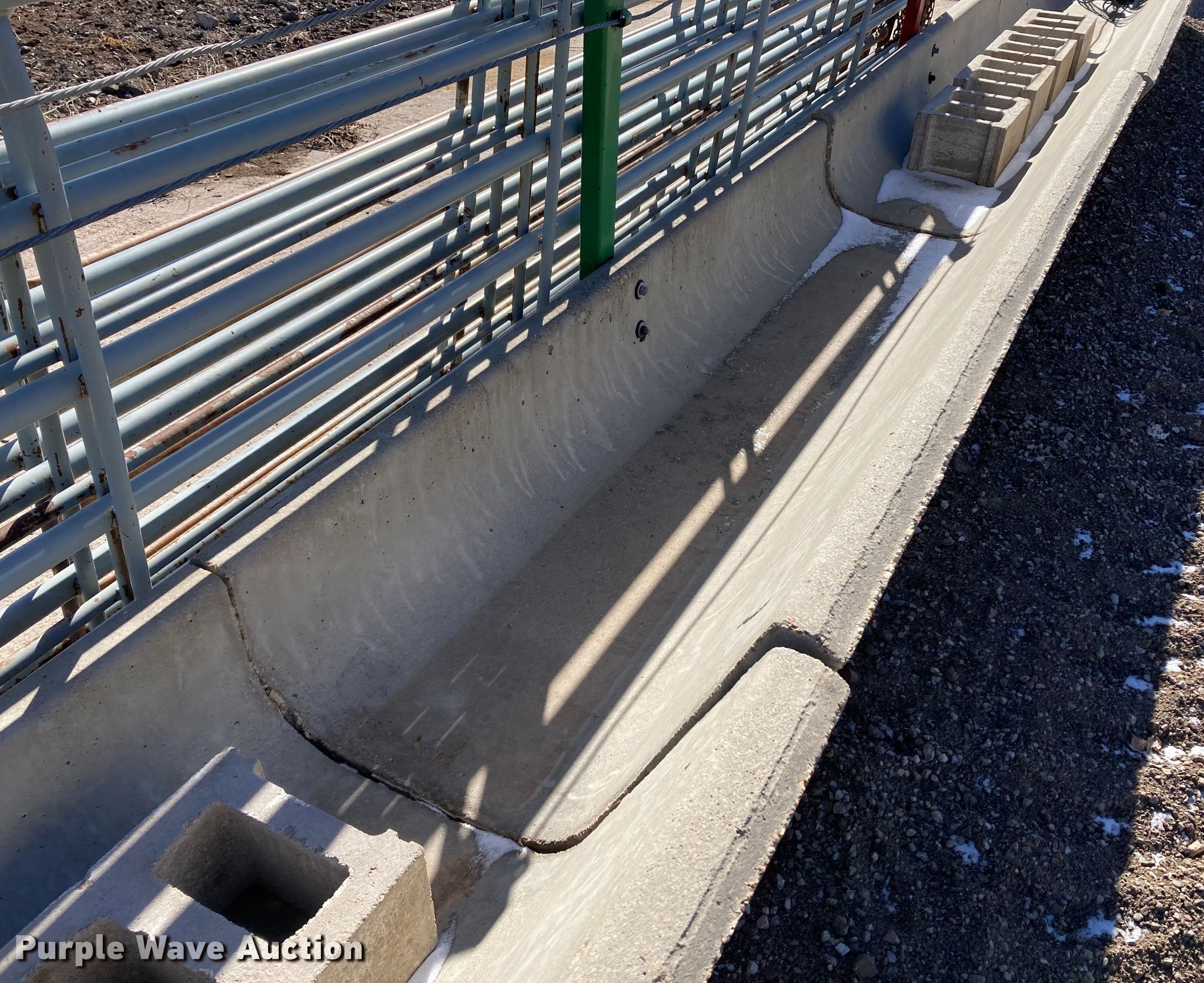 Purple Wave is selling a used Livestock Equip. in Kansas. This item is a Livestock equipment with the following: (12) 8'L concrete feed bunks, (2) end posts, (2) approx. 96'L x 3/8" diameter cables, Additional cable, (30) blocks and more