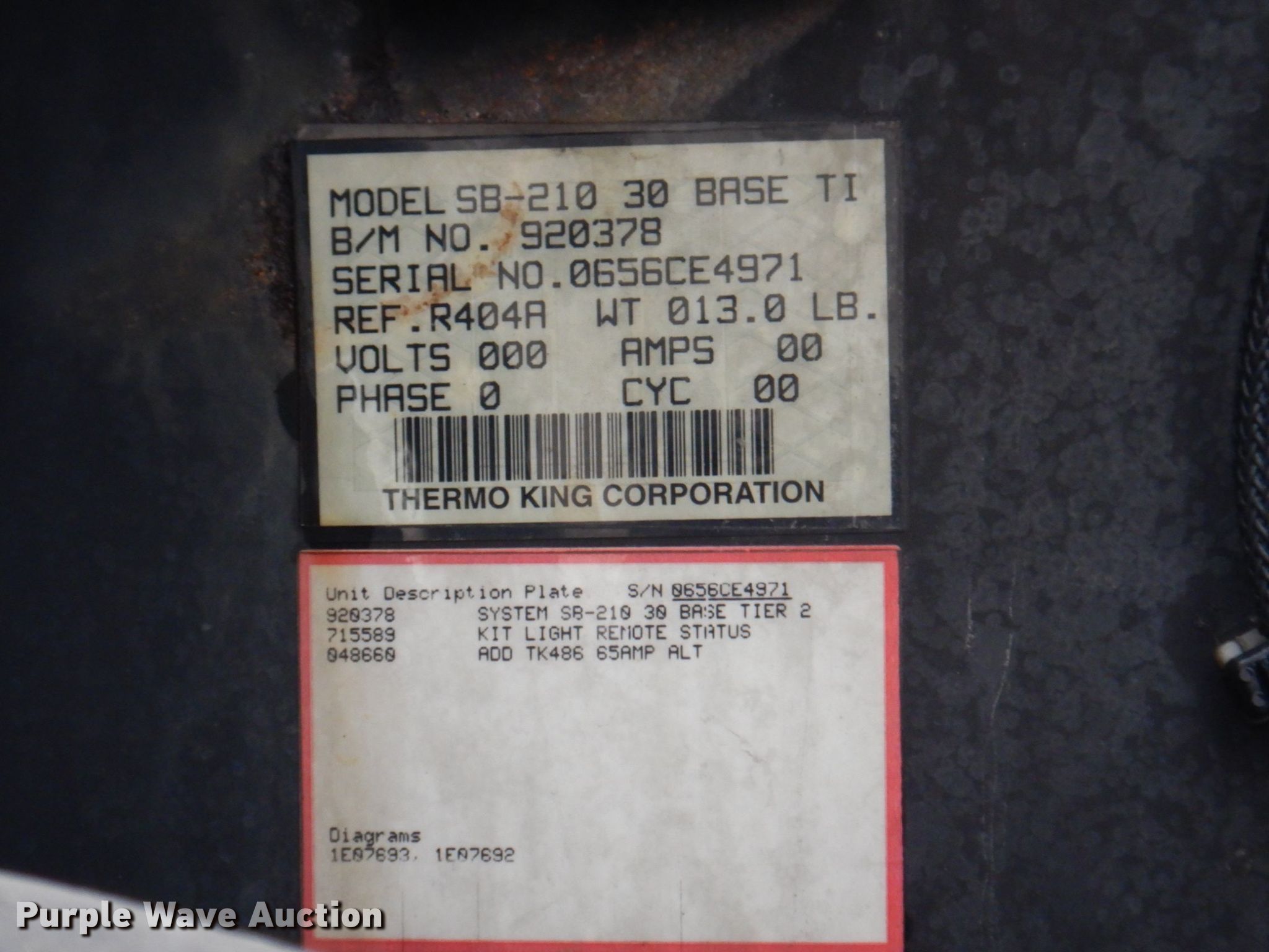 2006 Great Dane refrigerated van trailer. VIN: 1GRAA90276B704240, Unit #: 10818. Dimensions Overall: 45' L x 96" W. Features Deck type: Aluminum, E-track rail system, Refrigeration unit Thermo King SB-210, Hours: 17,692, Serial: 0656CE4971. Chassis Landing gear: Dual, Suspension: Spring, Brakes: Air, Axles: Tandem, Sliding. Tires Steel wheels, Size: 11R22.5. Notes Contents not included, Dead battery, Rear doors damaged. Illinois title. Titles will be distributed after confirmation of payment and removal. NDSM Holdings. 3399 South Ridge Rd.. De Pere, WI 54115