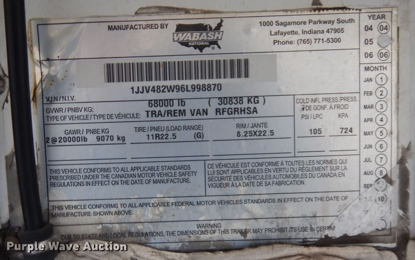 Purple Wave is selling a used Refrigerated Van Trailer in Wisconsin. This item is a 2006 Wabash refrigerated van trailer with the following: VIN: 1JJV482W96L998870, Unit #: 12442