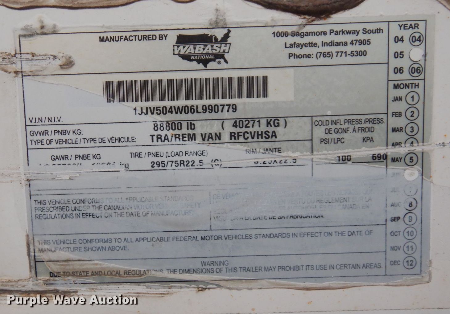 Purple Wave is selling a used Refrigerated Van Trailer in Wisconsin. This item is a 2006 Wabash refrigerated van trailer with the following: VIN: 1JJV504W06L990779, Unit #: 9993