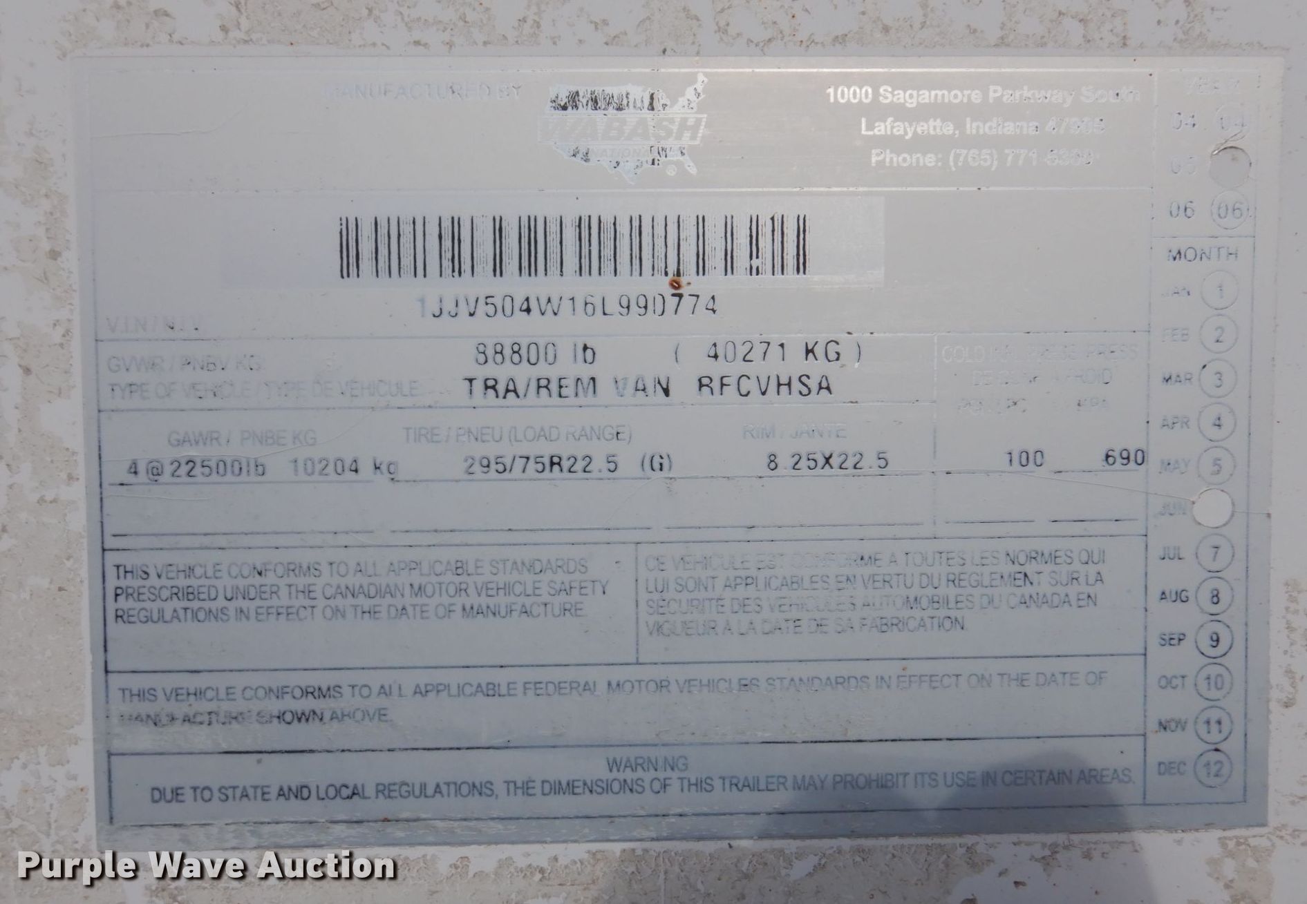 Purple Wave is selling a used Refrigerated Van Trailer in Wisconsin. This item is a 2005 Wabash refrigerated van trailer with the following: VIN: 1JJV504W16L990774, Unit #: 9998