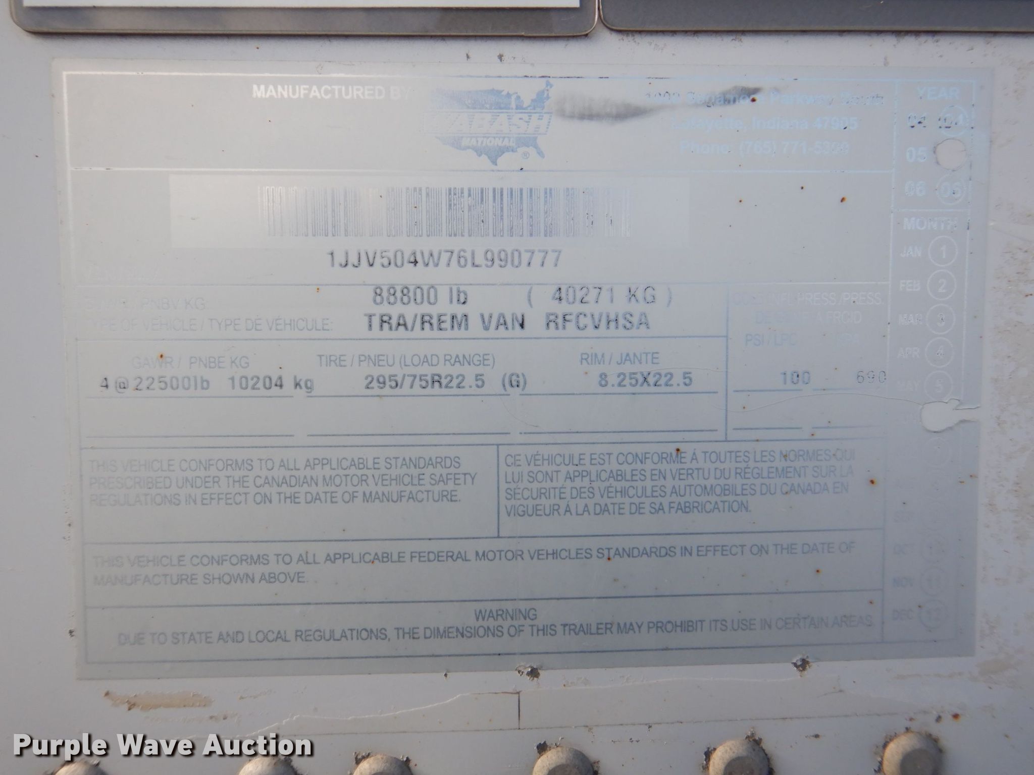 Purple Wave is selling a used Refrigerated Van Trailer in Wisconsin. This item is a 2006 Wabash RFCVHSA refrigerated van trailer with the following: VIN: 1JJV504W76L990777, Unit #: 9995
