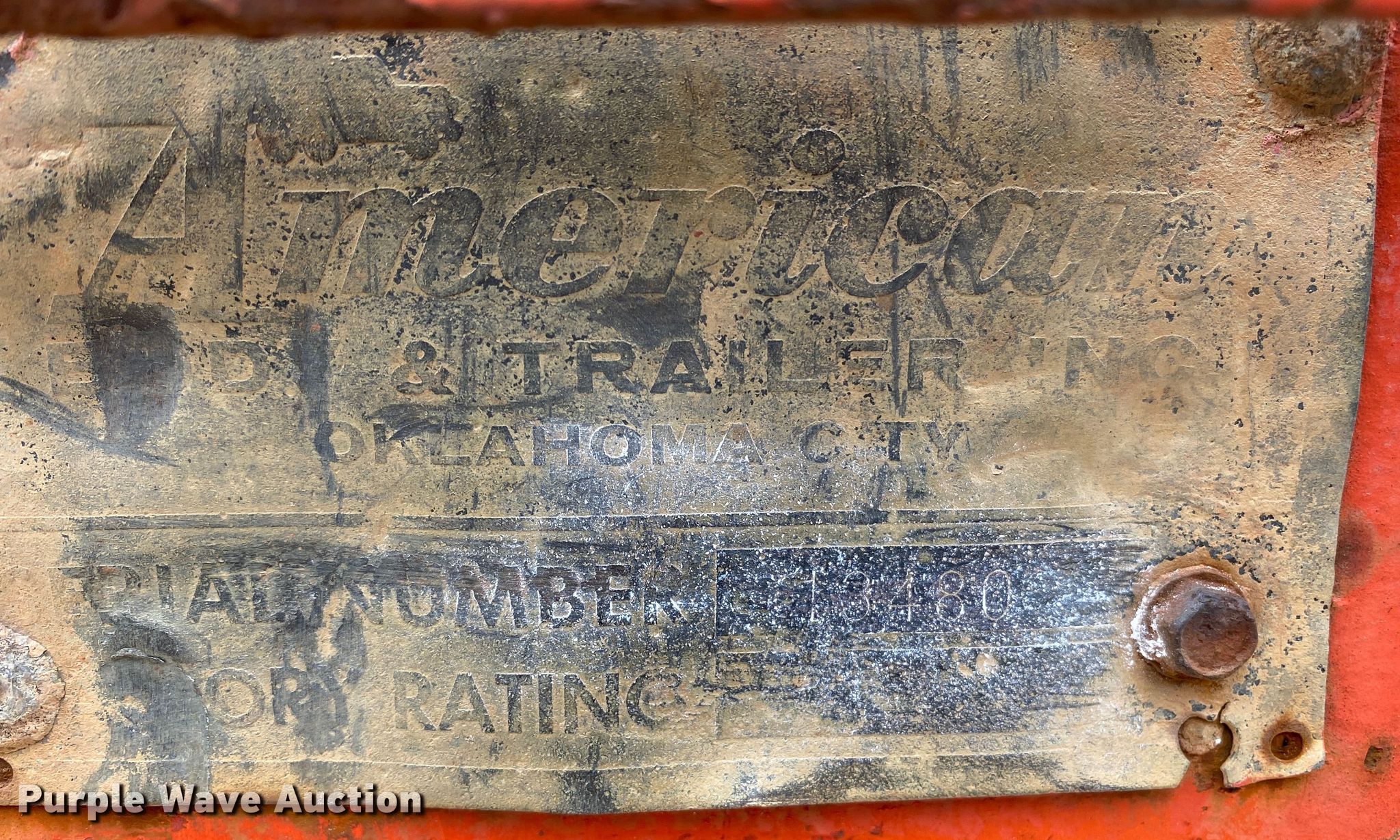 Purple Wave is selling a used Flat or Drop Deck Trailer in Oklahoma. This item is a 1965 American Trailer flatbed trailer with the following: VIN: 13480, Unit #: 14-88