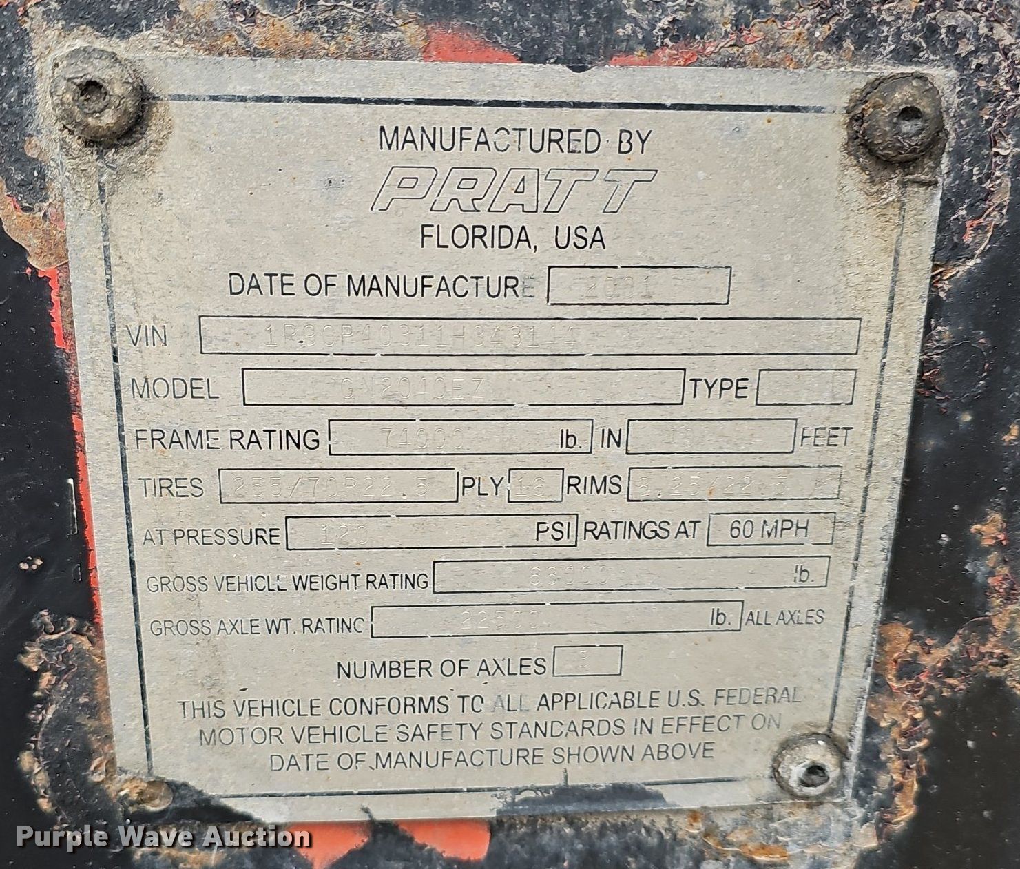 Purple Wave is selling a used Container Trailer in Nebraska. This item is a 2001 Pratt GN2040EZ container trailer with the following: VIN: 1P9CP40311H343144