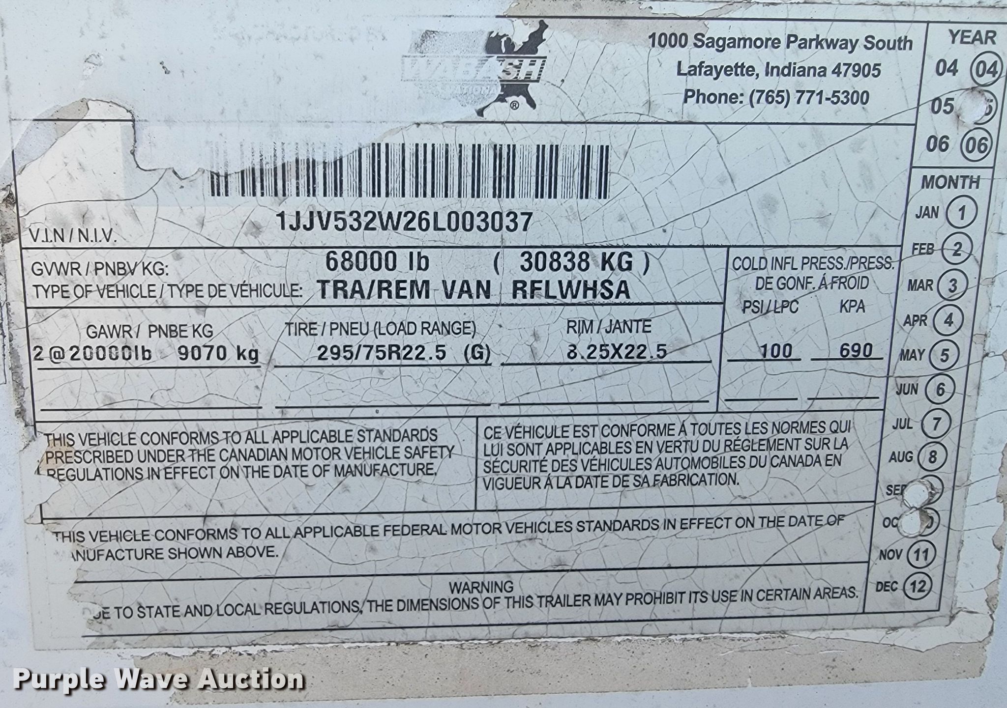 Purple Wave is selling a used Refrigerated Van Trailer in Missouri. This item is a 2006 Wabash refrigerated van trailer with the following: VIN: 1JJV532W26L003037