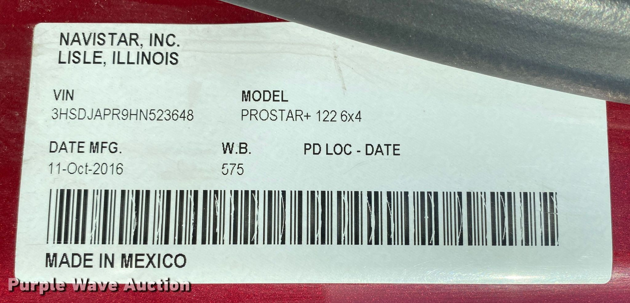 Purple Wave is selling a used Truck Tractor in Oklahoma. This item is a 2017 International ProStar Plus 122 semi truck with the following: Miles: 599,009 on odometer, Hours: 12,457 on meter, VIN: 3HSDJAPR9HN523648