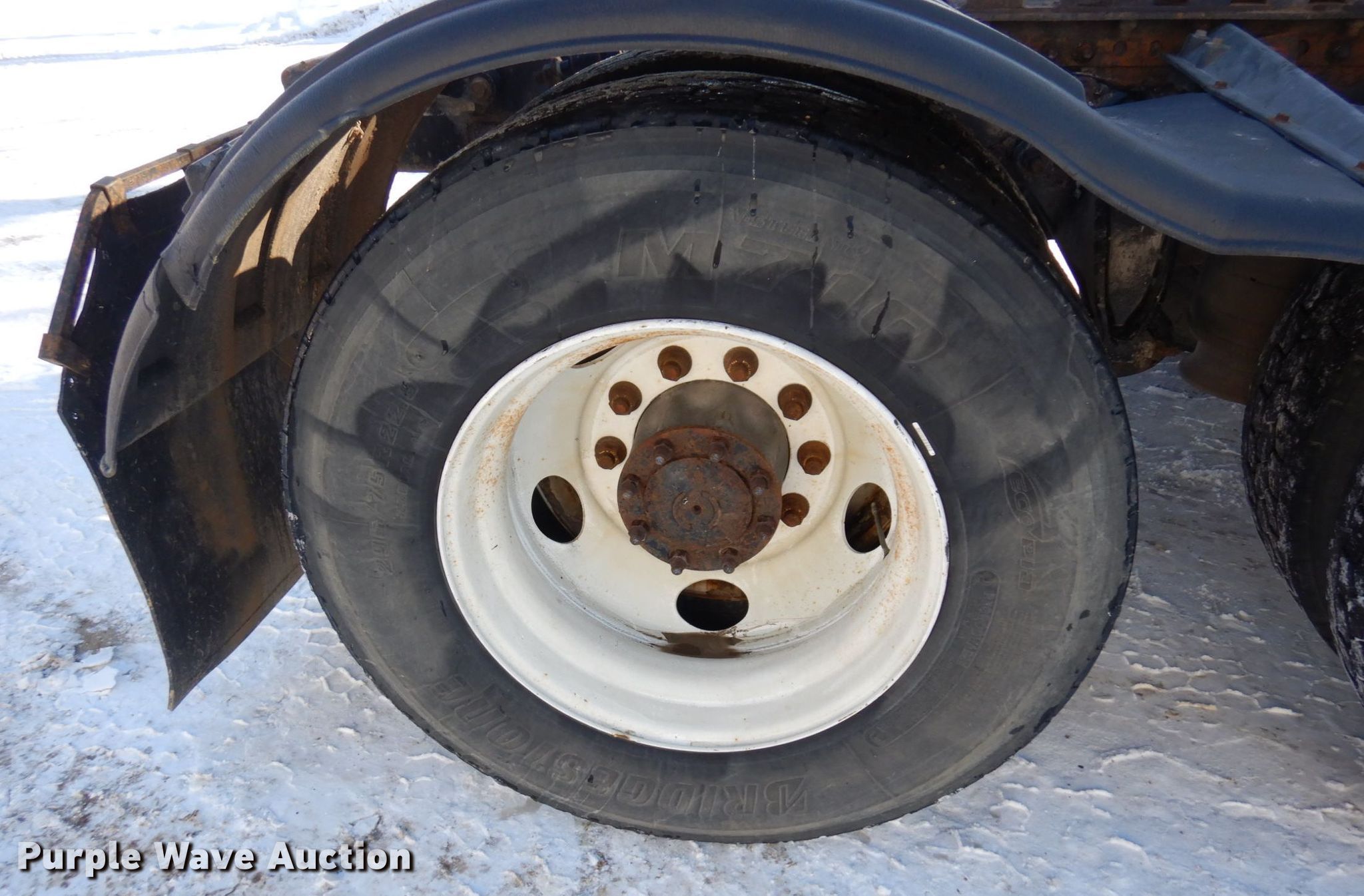 2003 Freightliner Cascadia semi truck. Miles: 1,246,818 on odometer, VIN: 1FUJA6AS33LK90296. Engine Caterpillar C12, Displacement: 12.0L, Cylinders: 6, Fuel type: Diesel, HP: 430. Transmission Manual, Speed: 10. Chassis Axles: Tandem, Differential lock: Inter-axle, Suspension: Air Dump valves, Brakes: Air, GVWR: 52,000 lbs FAWR: 12,000 lbs, RAWR: 20,000 lbs. Interior AC, Heat, Power windows, Cruise control, Sleeper Sleeper length: 4' 10", Beds: Double bunk, Rear climate control. Features Deck plate: Steel, Fifth wheel type: Sliding, Fuel tank: Dual. Tires Size: 295/75R22.5. Minnesota title. Title distribution may be delayed up to 14 days from verification of funds. L and L trucking of Mazeppa inc.. 42107 228th Ave. Mazeppa, MN 55956