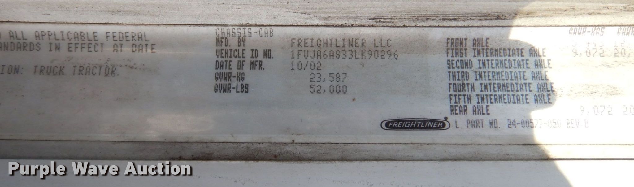 Purple Wave is selling a used Truck Tractor in Minnesota. This item is a 2003 Freightliner Cascadia semi truck with the following: Miles: 1,246,818 on odometer, VIN: 1FUJA6AS33LK90296