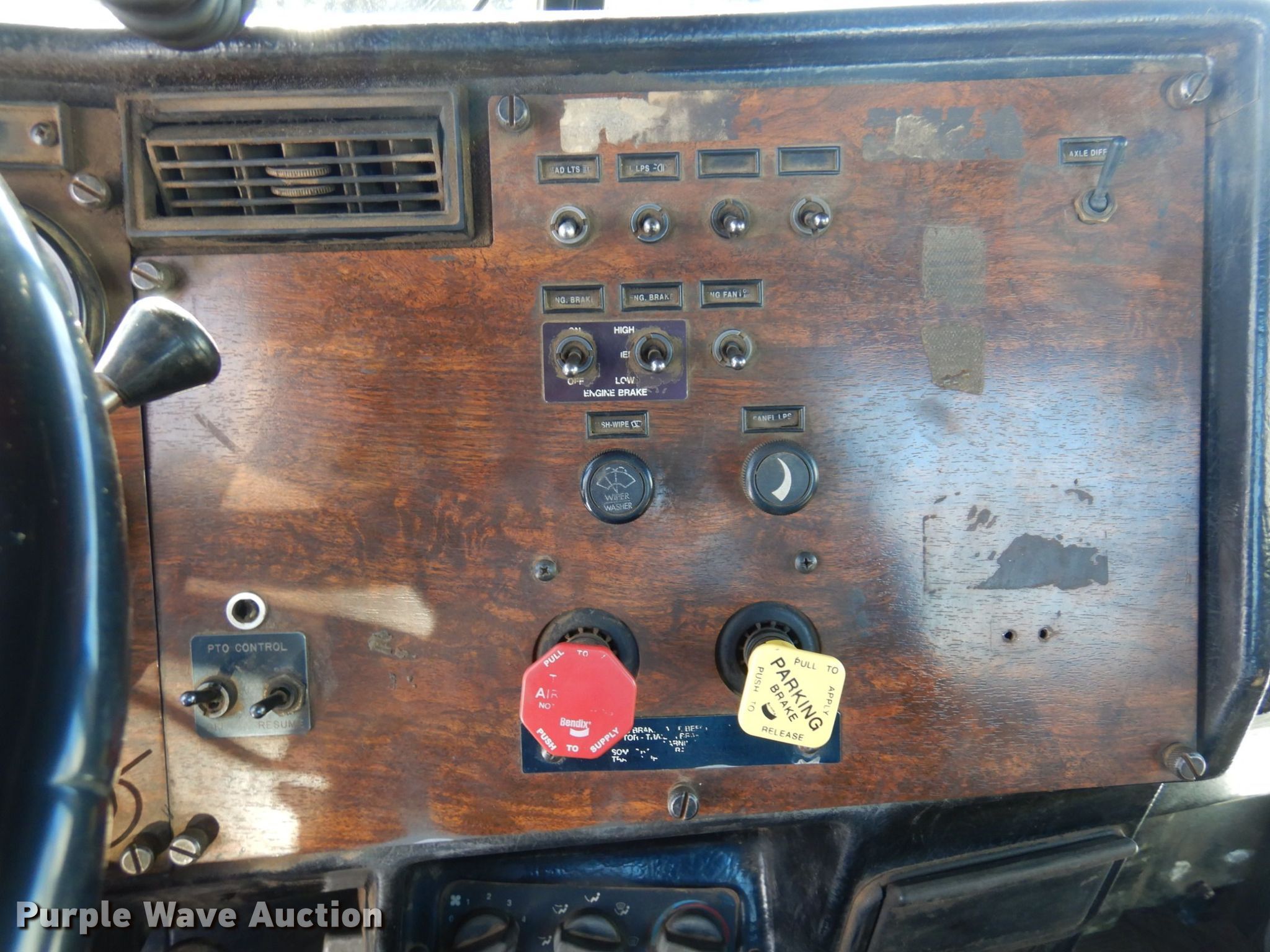 This 1996 Peterbilt 357 roll-off container truck will sell to the highest bidder regardless of price.
