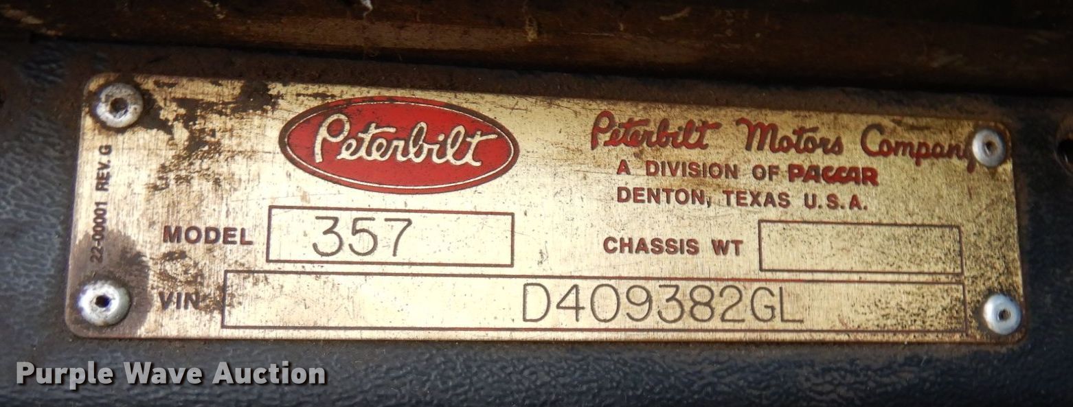 1996 Peterbilt 357 roll-off container truck. Miles: 680,260 on odometer, VIN: D409382GL. Engine Caterpillar 3176, Cylinders: 6, Fuel type: Diesel. Transmission Eaton Fuller, Manual, Speed: 13. Chassis Axles: Triple, Pusher axle Steerable, Suspension: Air, Brakes: Air, PTO. Interior AC, Heat, Auxiliary controls. Features Roll-off bed 21' 6" L, Ram: Double. Tires Front: 425/65R22.5, Rear: 11R24.5, Lift axle: 255/70R22.5. Minnesota title. Title distribution may be delayed up to 14 days from verification of funds. L and L trucking of Mazeppa inc.. 42107 228th Ave. Mazeppa, MN 55956