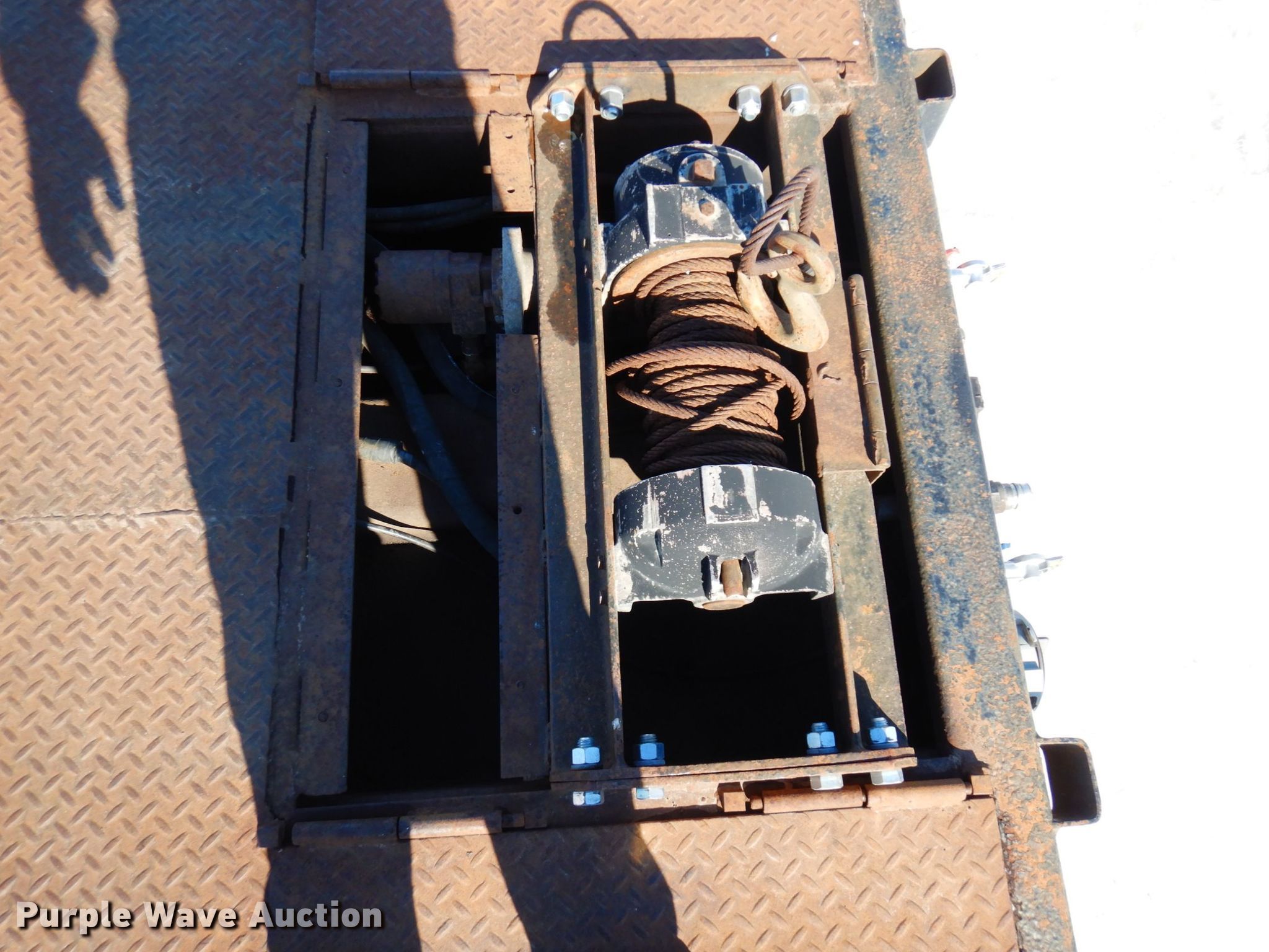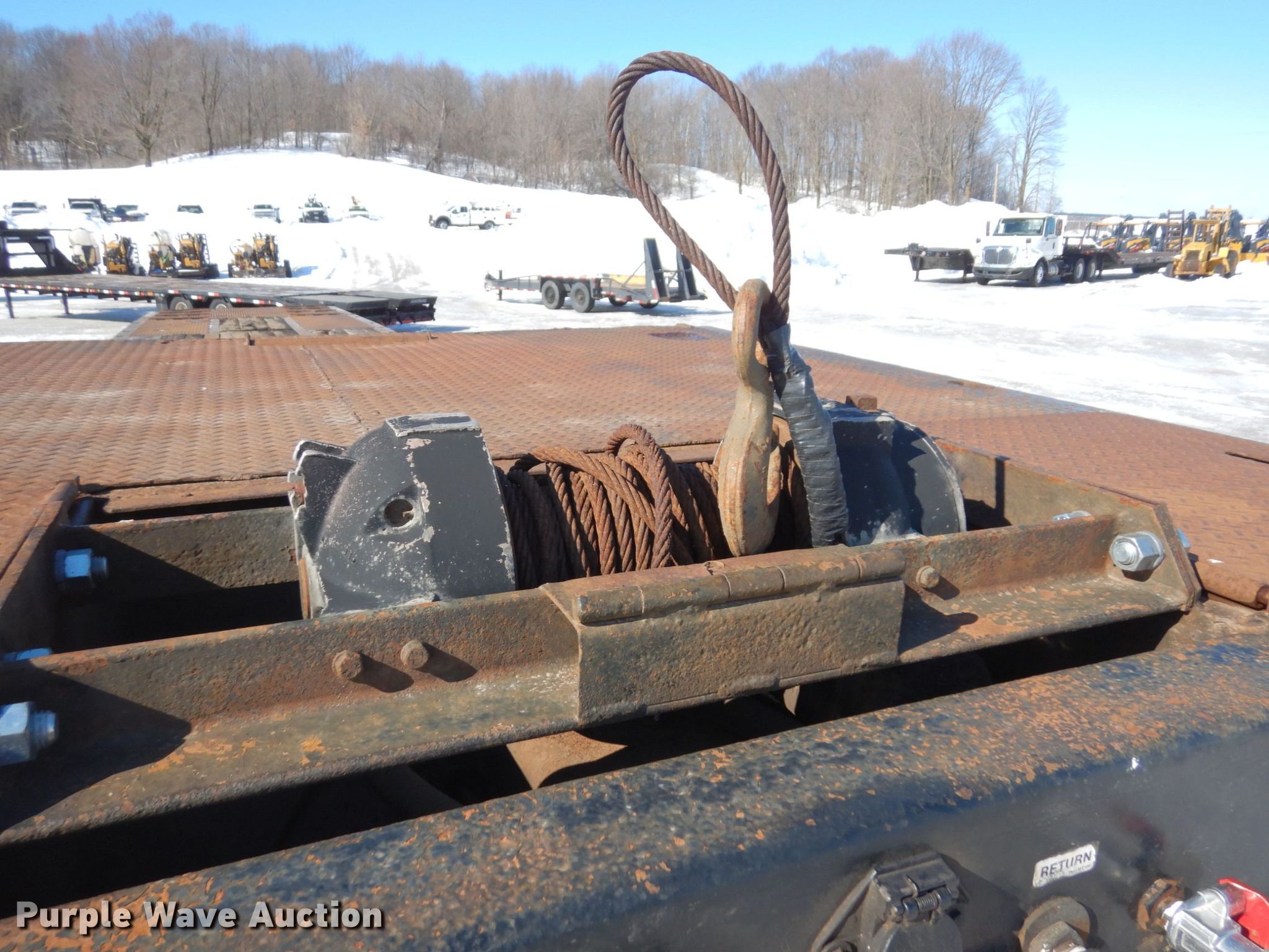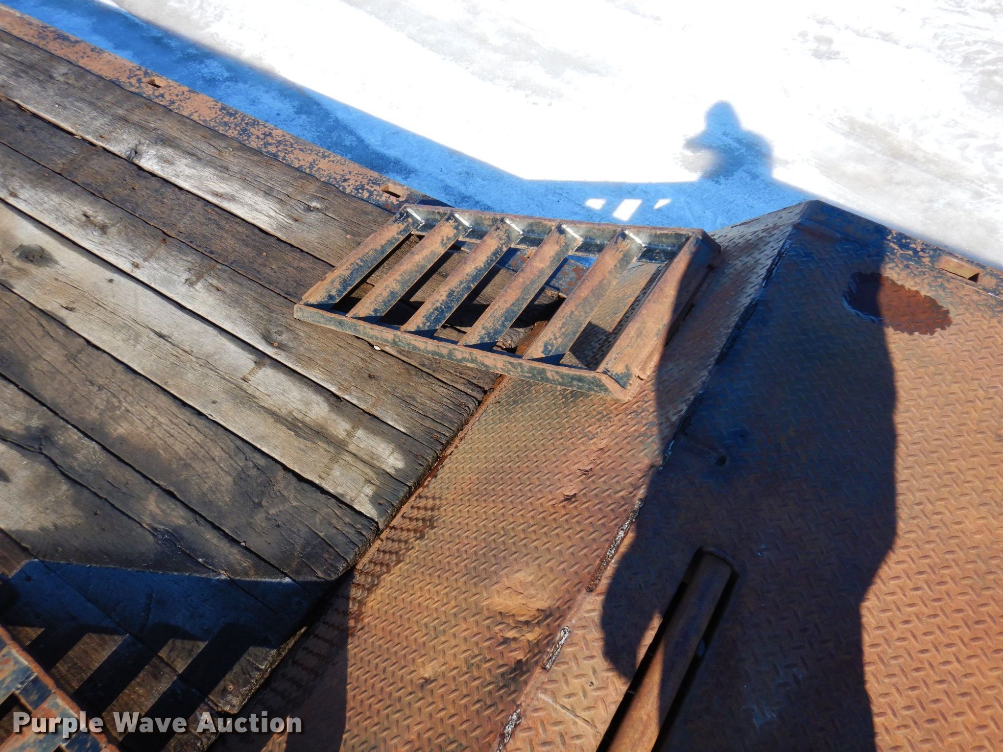 1991 Trail King TK70HT-462 drop deck equipment trailer. VIN: 1TKA04621NM109726. Dimensions Overall: 46' L x 102" W, Deck: 28' L x 102" W, Top deck length: 8', Deck height: 2' 10", Hydratail length: 7' 10", Ramps: Hydraulic. Features Deck type: Wood, Winch, Hydraulic controls: Manual. Chassis Landing gear: Dual, Two speed, Suspension: Air, Brakes: Air, Axles: Tandem, GVWR: 85,000 lbs. Tires Steel wheels, Size: 10R17.5. Wisconsin title. Title distribution may be delayed up to 14 days from verification of funds. Push Incorporated. 1100 Lindy Street. Rice Lake, WI 54868