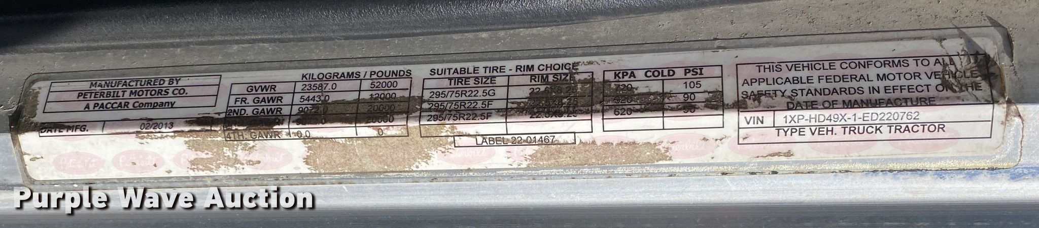 - VIN: 1XPHD49X1ED220762