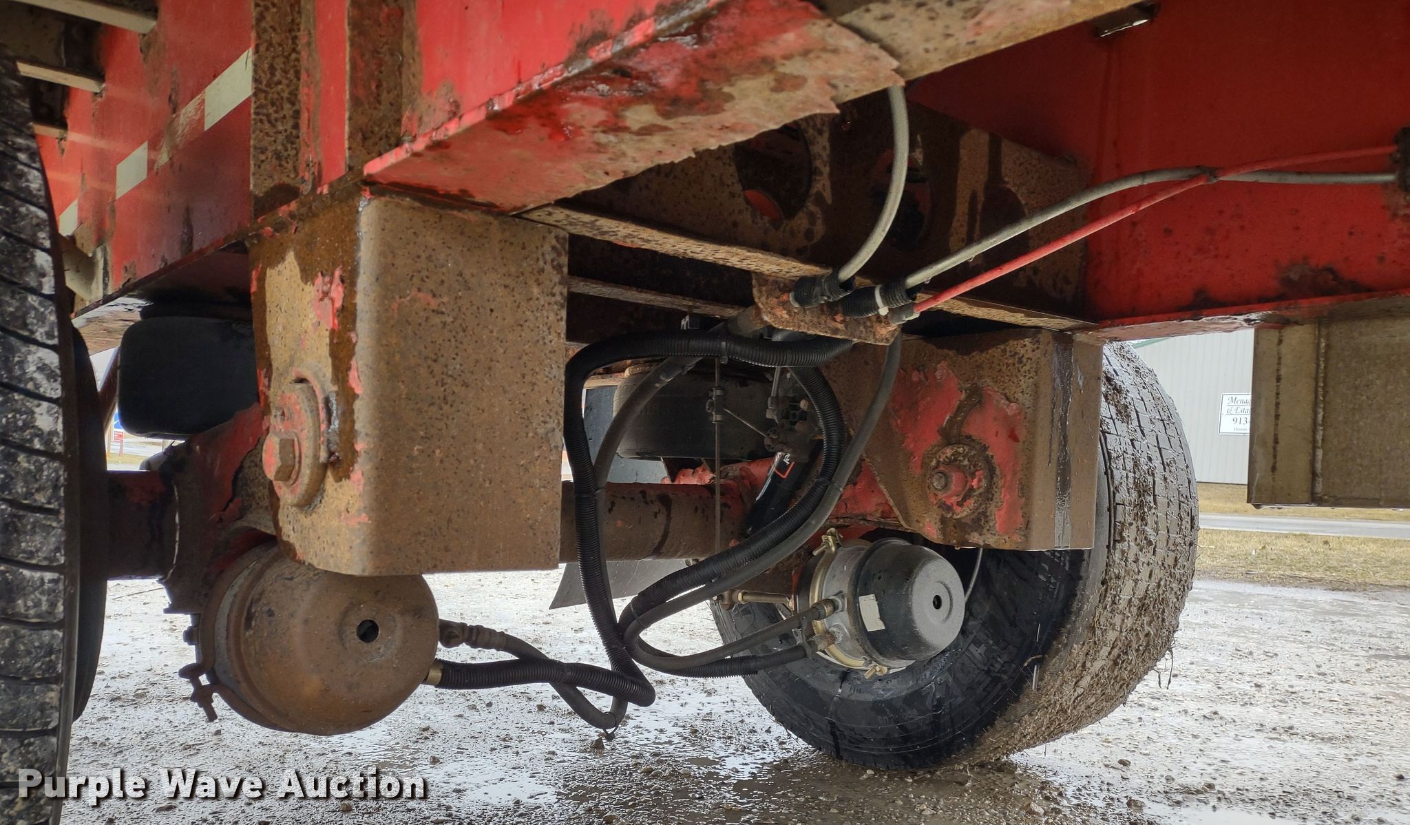 1998 Wilson Road Brute flatbed trailer. VIN: 4WWBGB6B6WM601485. Dimensions Overall: 48' L x 8' W, Deck height: 56". Features Deck type: Aluminum, Wood, Winch Capacity: 4,000 lbs. Chassis Landing gear: Dual, Suspension: Air, Brakes: Air, Axles: Spread, GVWR: 89,250 lbs, GAWR: 19,040 lbs. Tires Aluminum wheels, Size: 445/50R225. Notes Truck not included, GPS tracker not included. Kansas title. 205 E Market Street. La Cygne, KS 66040