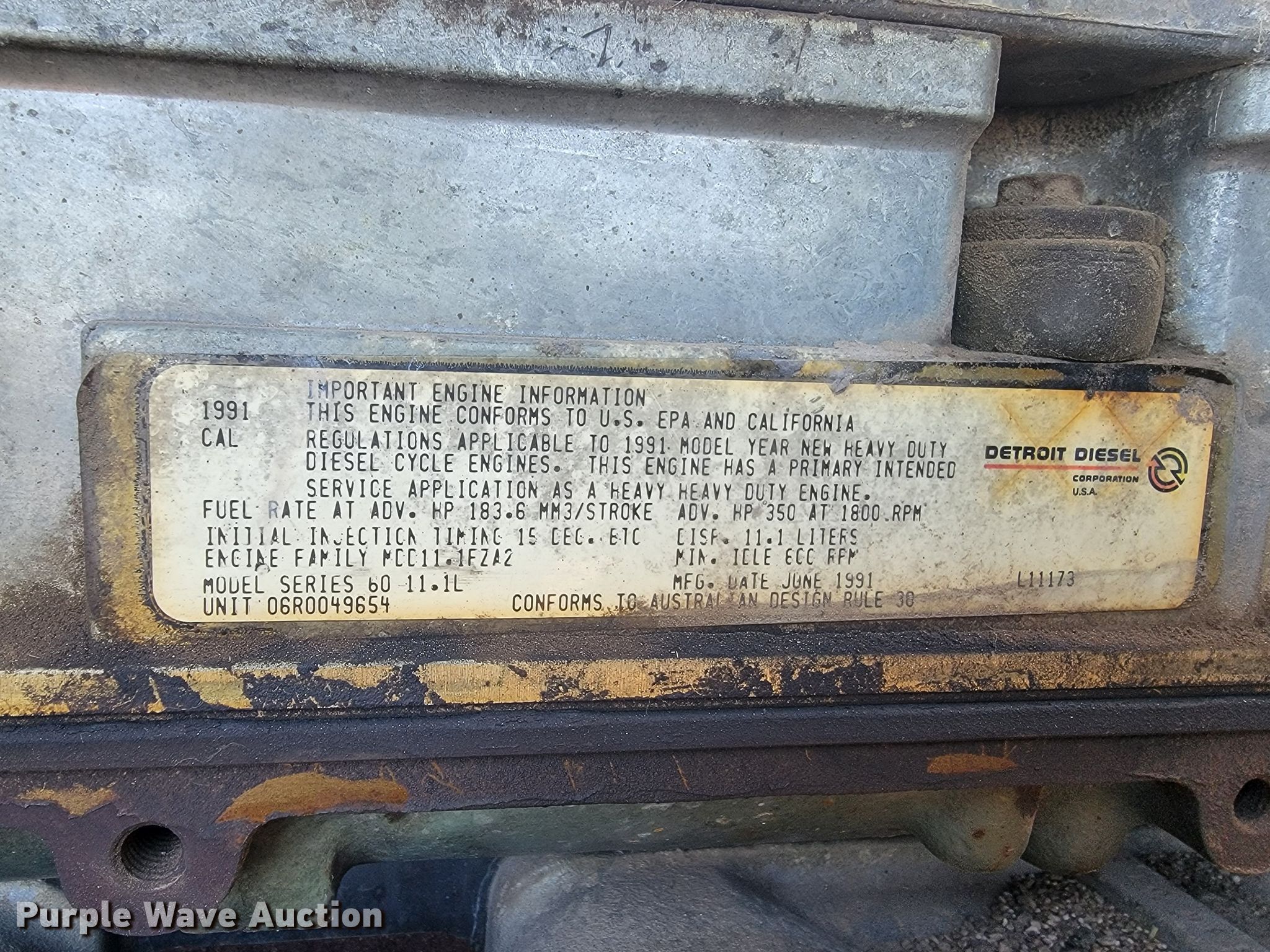 1992 Volvo Aero WIA semi truck. Miles: Unknown Last known mileage: 72,583, VIN: 4V1WDBRF7NU510302. Engine Detroit Series 60, Displacement: 11.1L, Cylinders: 6, Fuel type: Diesel, Engine brake. Transmission Manual, Speed: 13. Chassis Axles: Tandem, Differential lock: Inter-axle, Suspension: Air Dump valves, Brakes: Air. Interior AC, Heat, Sleeper Sleeper length: 4' 3", Beds: Single. Features Fifth wheel type: Air operated, Sliding, Fuel tank: Dual. Tires Size: 295/75R22.5. Notes Windshield chipped or cracked, Non-operational odometer, Non-operational AC Compressor belt missing. View repairs. South Dakota title. Title distribution may be delayed up to 14 days from verification of funds. Cort Riggle Construction LLC. Fort Pierre, SD 57532
