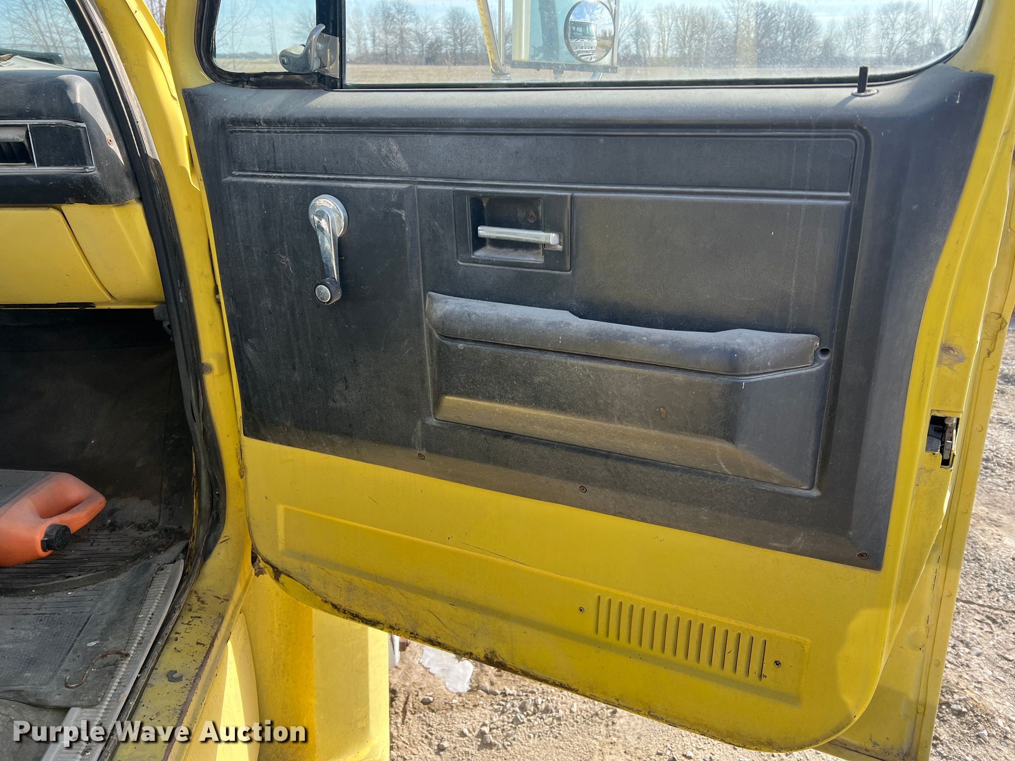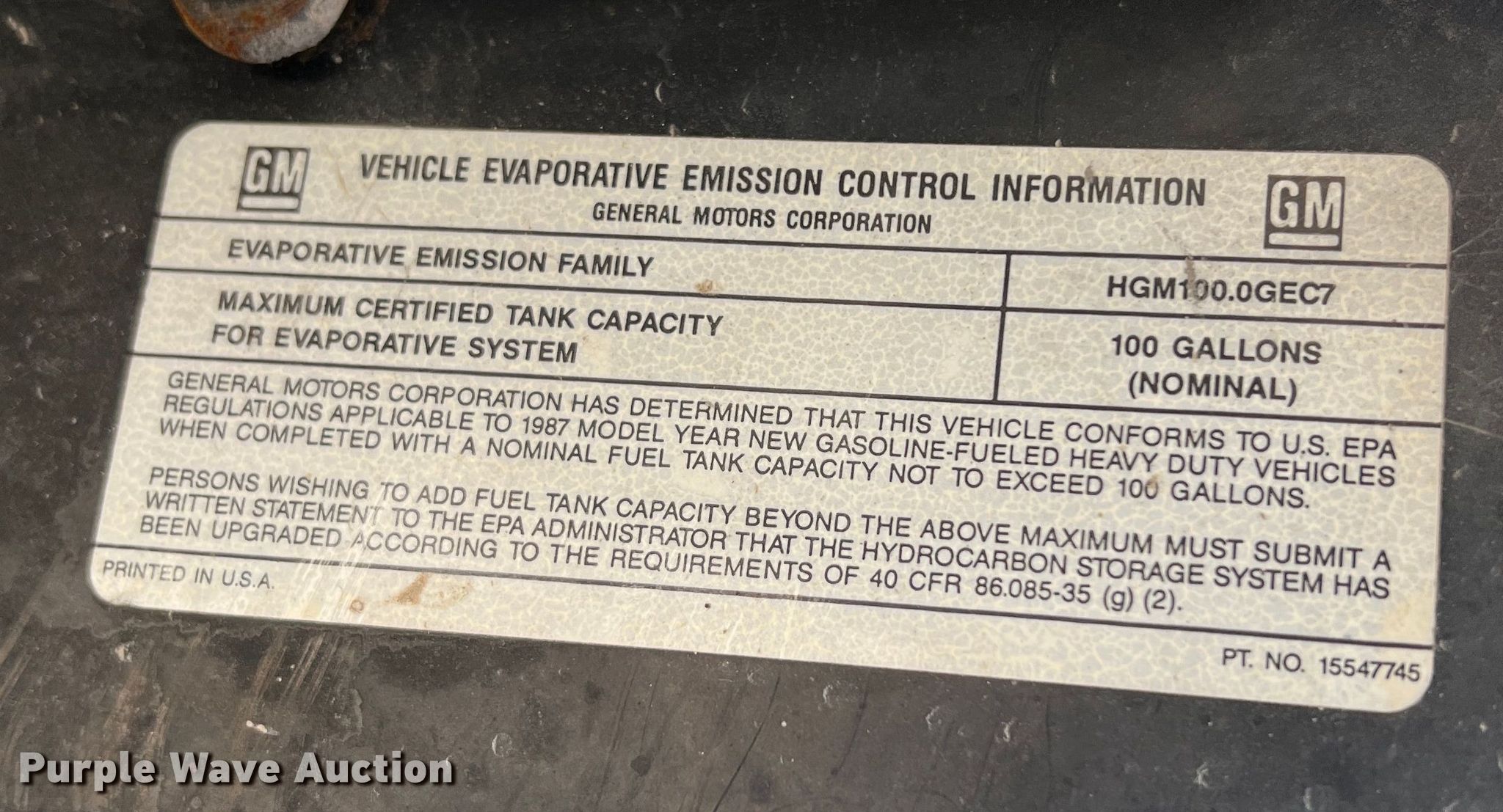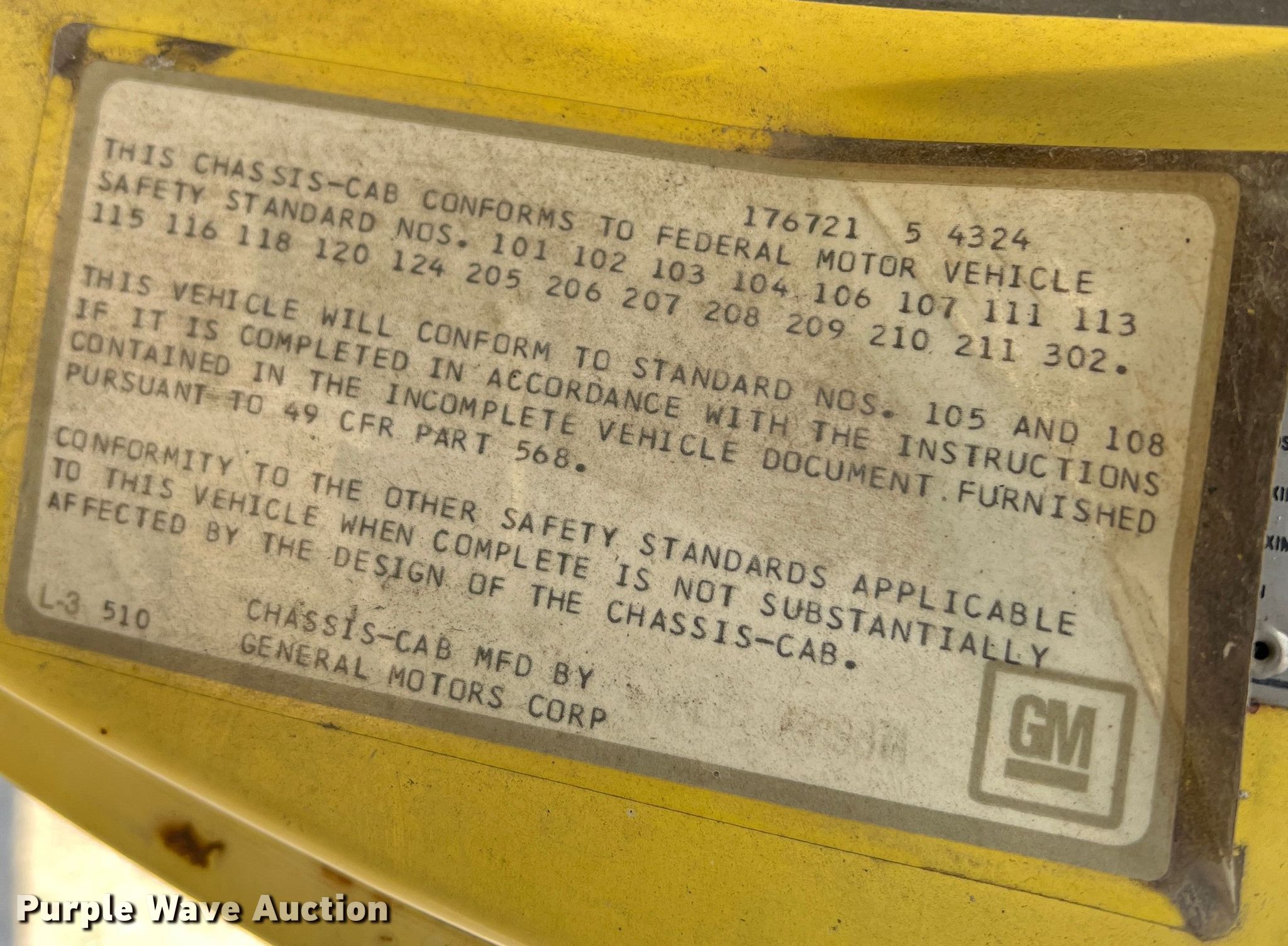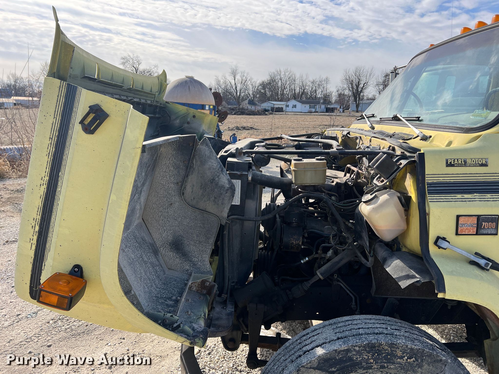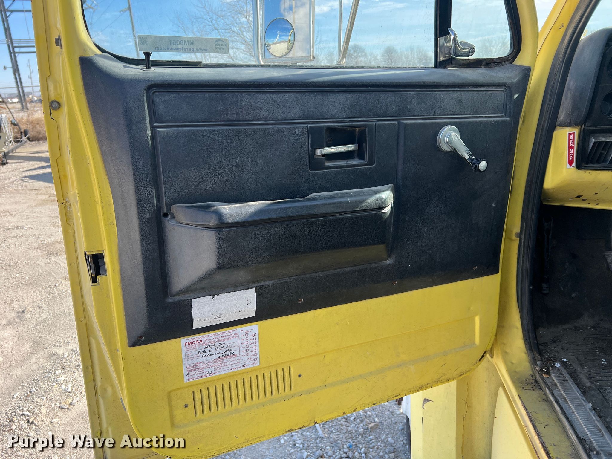 1987 GMC C7000 truck cab and chassis. Miles: 125,206 on odometer, VIN: 1GDJ7D1B4HV515990, Unit #: 23. Engine Displacement: 6.0L, Cylinders: 8, Fuel type: Gas. Transmission Manual, Speed: 5. Chassis Axles: Single, Suspension: Spring, Brakes: Hydraulic, Truck chassis: 14' 7", GVWR: 23,900 lbs. Interior Heat. Features Fuel tank: Single. Tires Front: 245/75R22.5, Rear: 235/80R22.5. Notes Non-operational unit. Missouri title. MFA Ag Inc.. 506 E 1st St. Laddonia, MO 63352
