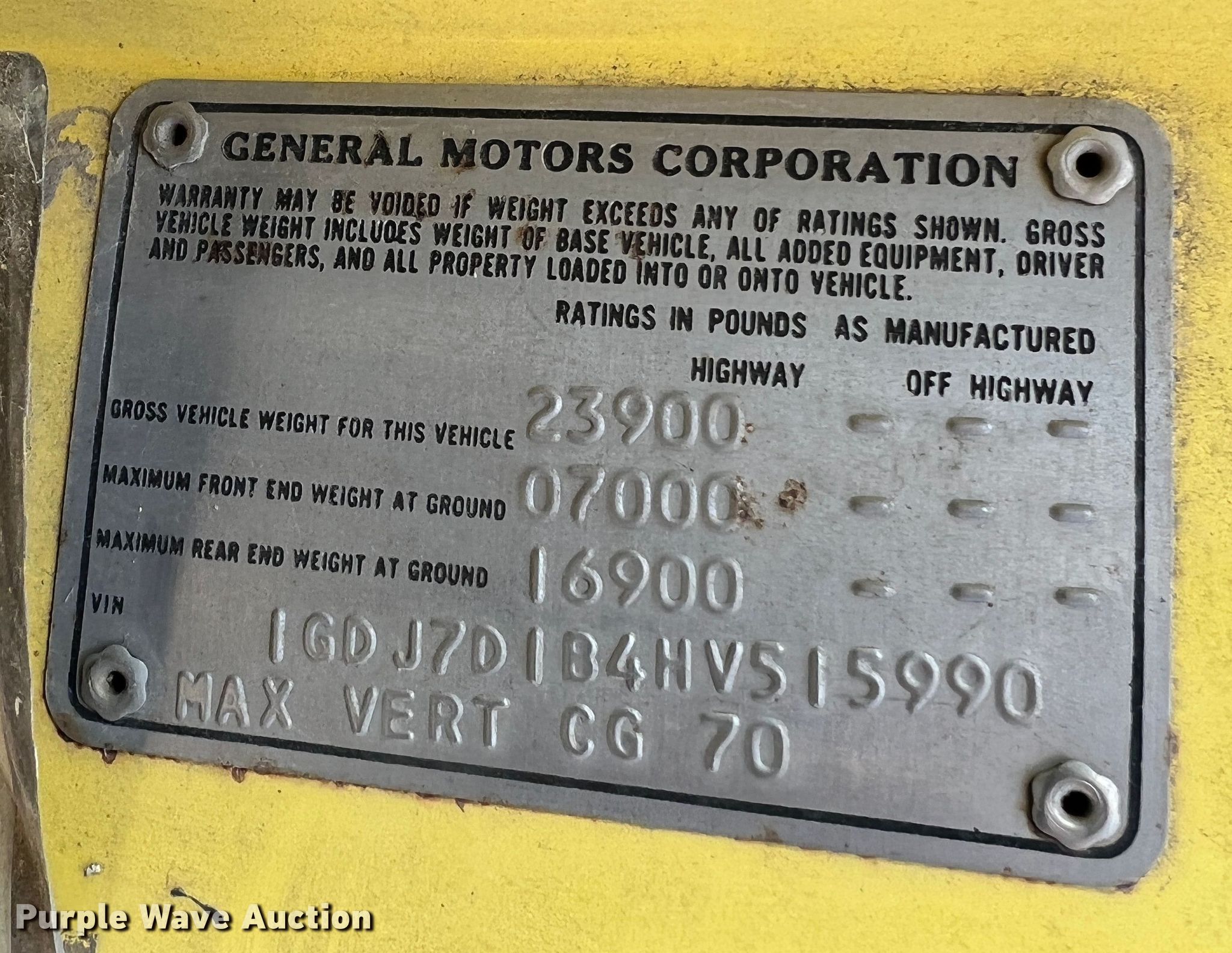 Purple Wave is selling a used Truck Chassis in Missouri. This item is a 1987 GMC C7000 truck cab and chassis with the following: Miles: 125,206 on odometer, VIN: 1GDJ7D1B4HV515990, Unit #: 23