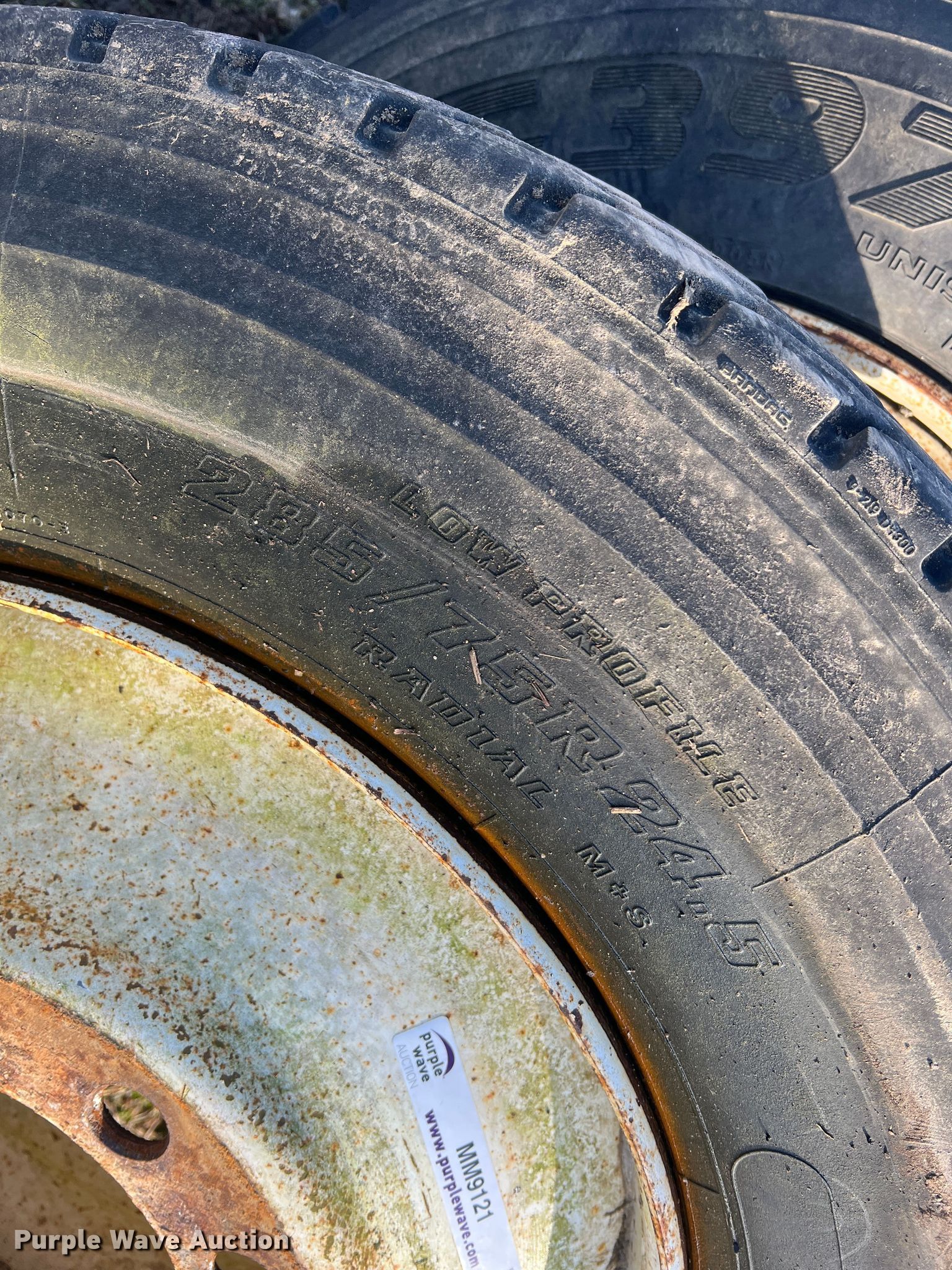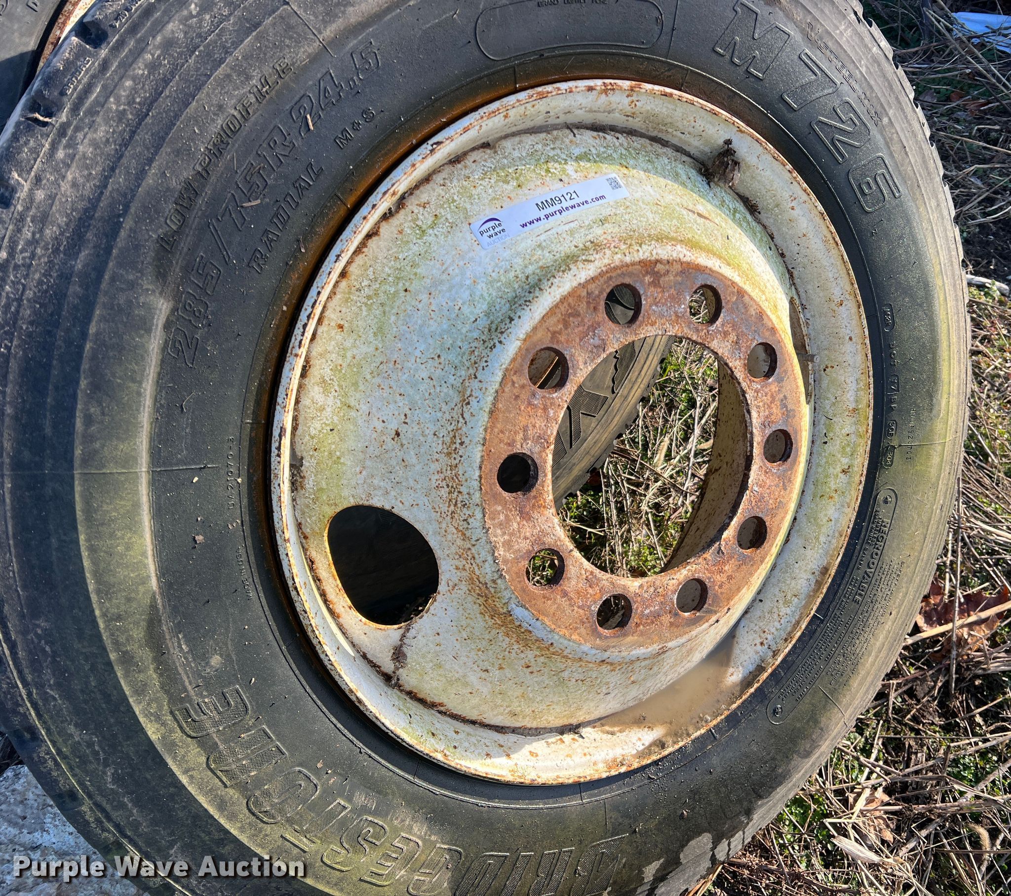 Purple Wave is selling a used Industrial Tires or Tracks in Missouri. This item is a (8) wheels and tires with the following: (4) 285/75R24.5, Ten lug, (4) 275/80R24.5, Ten lug
