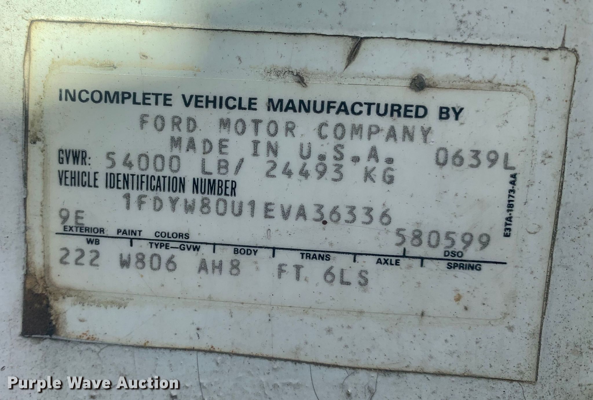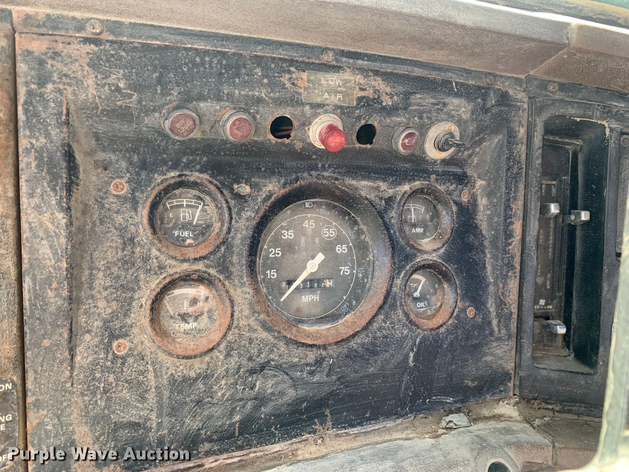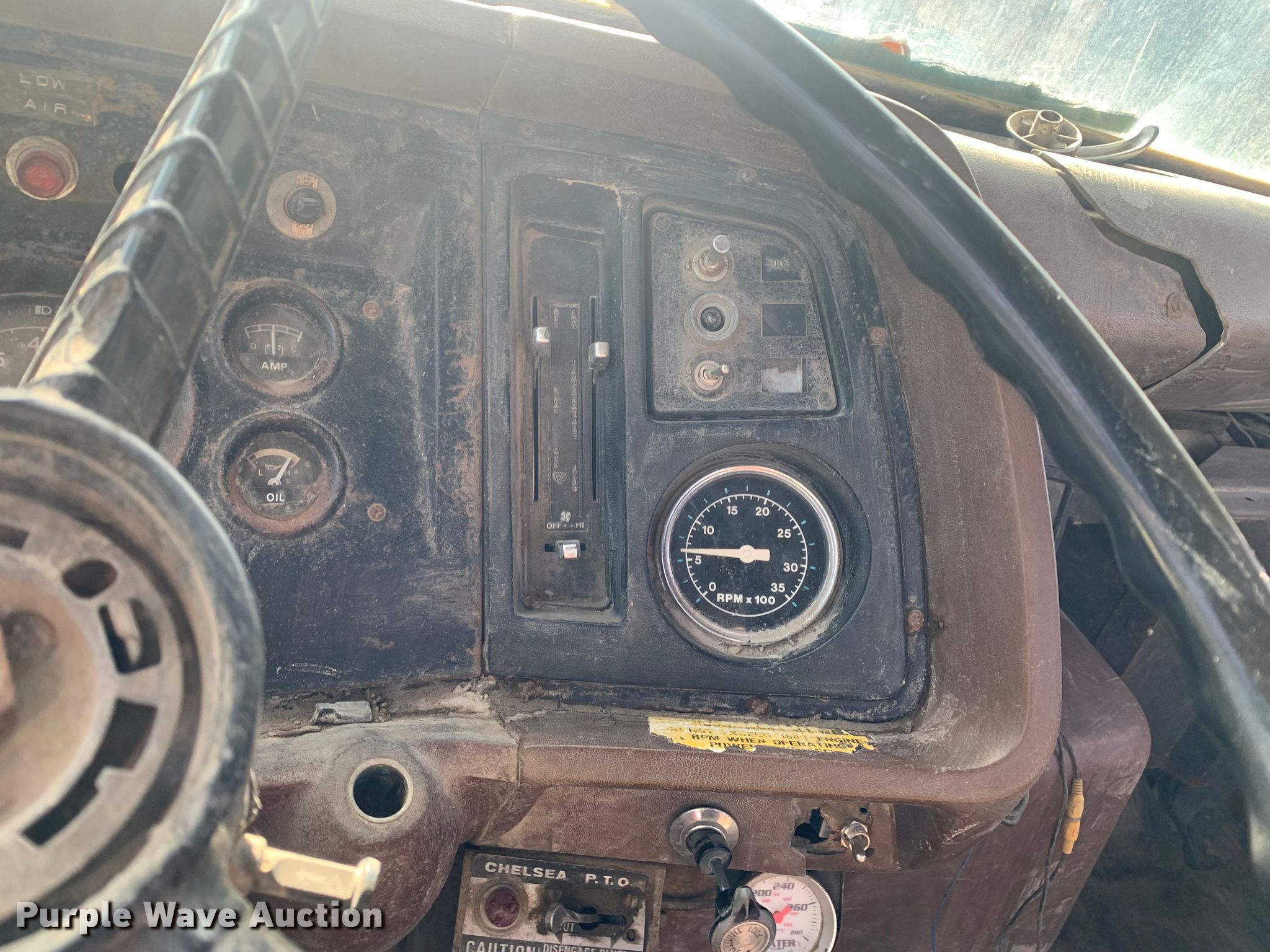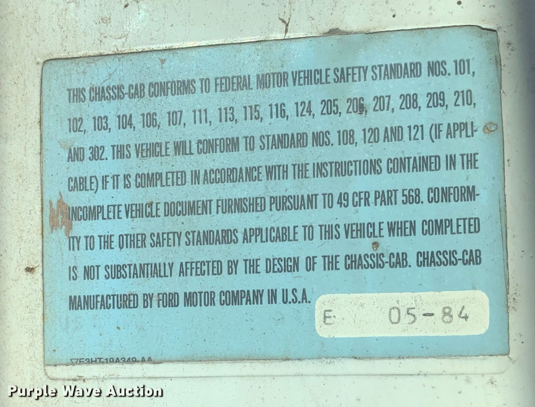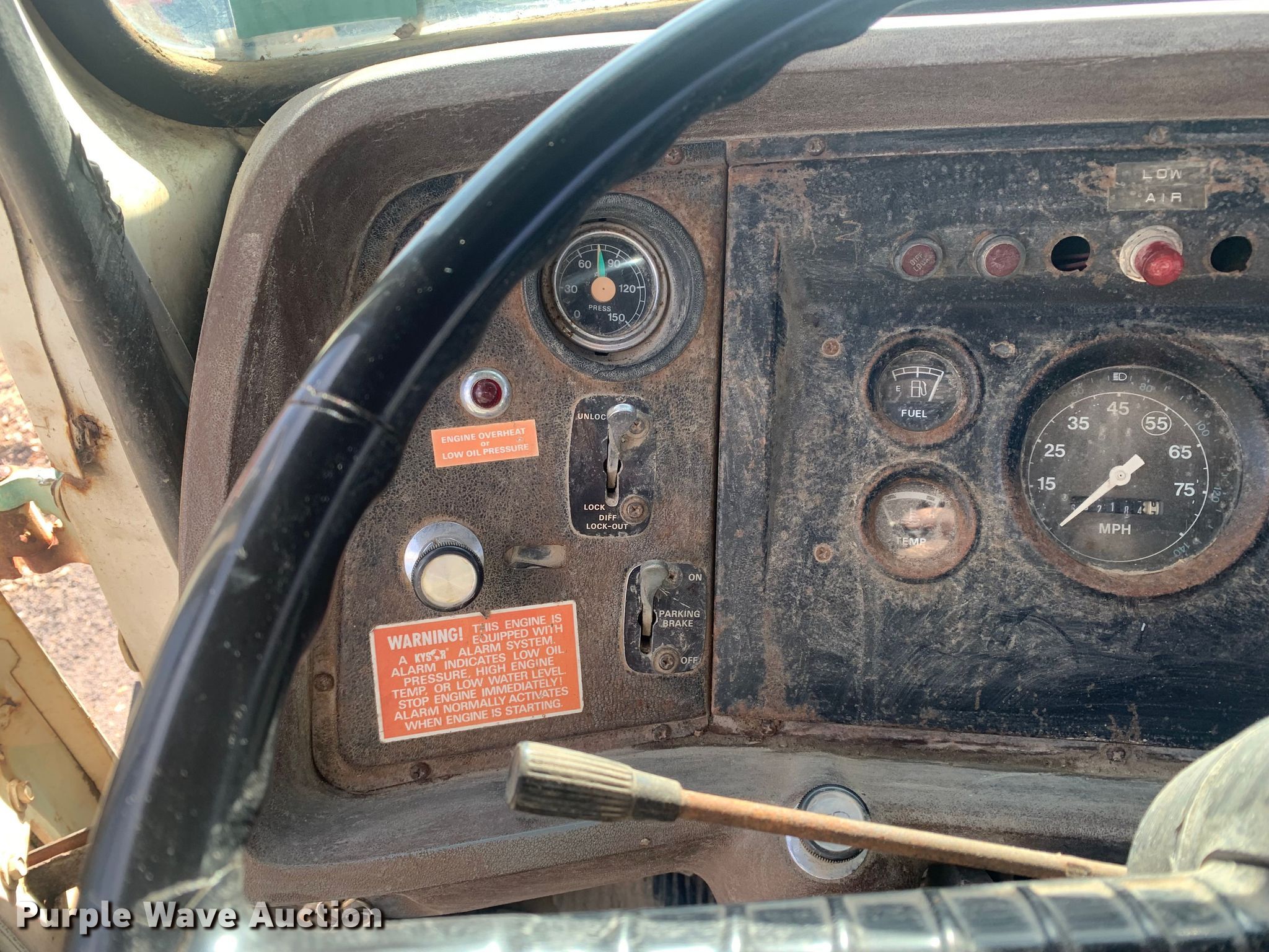 1984 Ford LNT8000 roll-off container truck. Miles: 682,184 on odometer, VIN: 1FDYW80U1EVA36336. Engine Caterpillar 3208T, Serial: 933844, Cylinders: 8, Fuel type: Diesel. Transmission Eaton Fuller Roadranger RT-6613, Manual, Speed: 13. Chassis Axles: Tandem, Suspension: Spring, Brakes: Air, PTO, Wet kit, GVWR: 54,000 lbs, Wheelbase: 222". Interior AC, Heat, Brake controller. Features Roll-off bed Galbreath U5EX174, Serial: 8425420, 19' 9" L x 2' 10.5" W, Ram: Double, Winch. Tires Front: 445/65R22.5, Rear: 11R22.5. Notes Batteries not included, AC issues, blow warm. Minnesota title. Winding Road Construction. 111 Gaskins St. Como, TX 75431