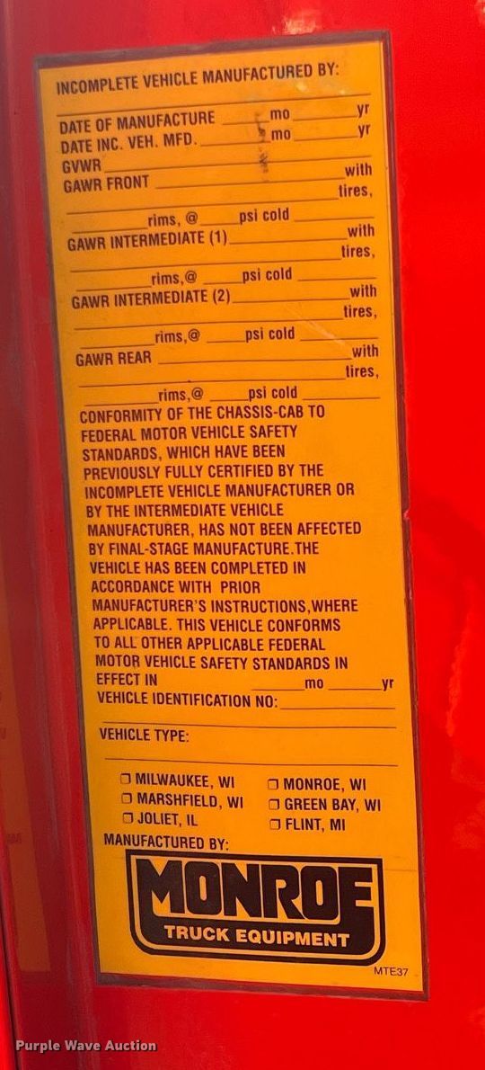 2003 Sterling LT7501 dump truck. Miles: 238,656 on odometer, Hours: 9,891 on meter, VIN: 2FZHATAK23AL69679, KDOT ID: 263-5033. Engine Caterpillar 3126, Displacement: 7.2L, Cylinders: 6, Fuel type: Diesel, Engine brake. Transmission Eaton Fuller RTO10910B-AS2, Automated manual. Chassis Axles: Tandem, Differential lock: Inter-axle, Suspension: Spring over walking beam, Brakes: Air, Front mount PTO, GVWR: 53,880 lbs FAWR: 13,880 lbs, IAWR: 20,000 lbs, RAWR: 20,000 lbs. Interior AC, Heat, Heated mirrors, Cruise control. Features Dump bed Henderson, 13' L x 8' W, Side height: 32", Bed type: Steel, Roll tarp, Ram: Single , End gate: Air operated, Spreader Monroe MV-156-84-59-KS, Capacity: 13 cu.yd., Plow Monroe, Width: 132". Tires Size: 295/75R22.5. Notes Dead battery, Hydraulic issues, Possible transmission issues, Possible differential issues, noise, Non-operational end gate latches, Possible tire issues. Kansas title. Titles will be distributed after confirmation of payment and removal. Title distribution may be delayed up to 30 days from verification of funds. Kansas Department of Transportation - Hutchinson. 500 N. Hendricks. Hutchinson, KS 67501