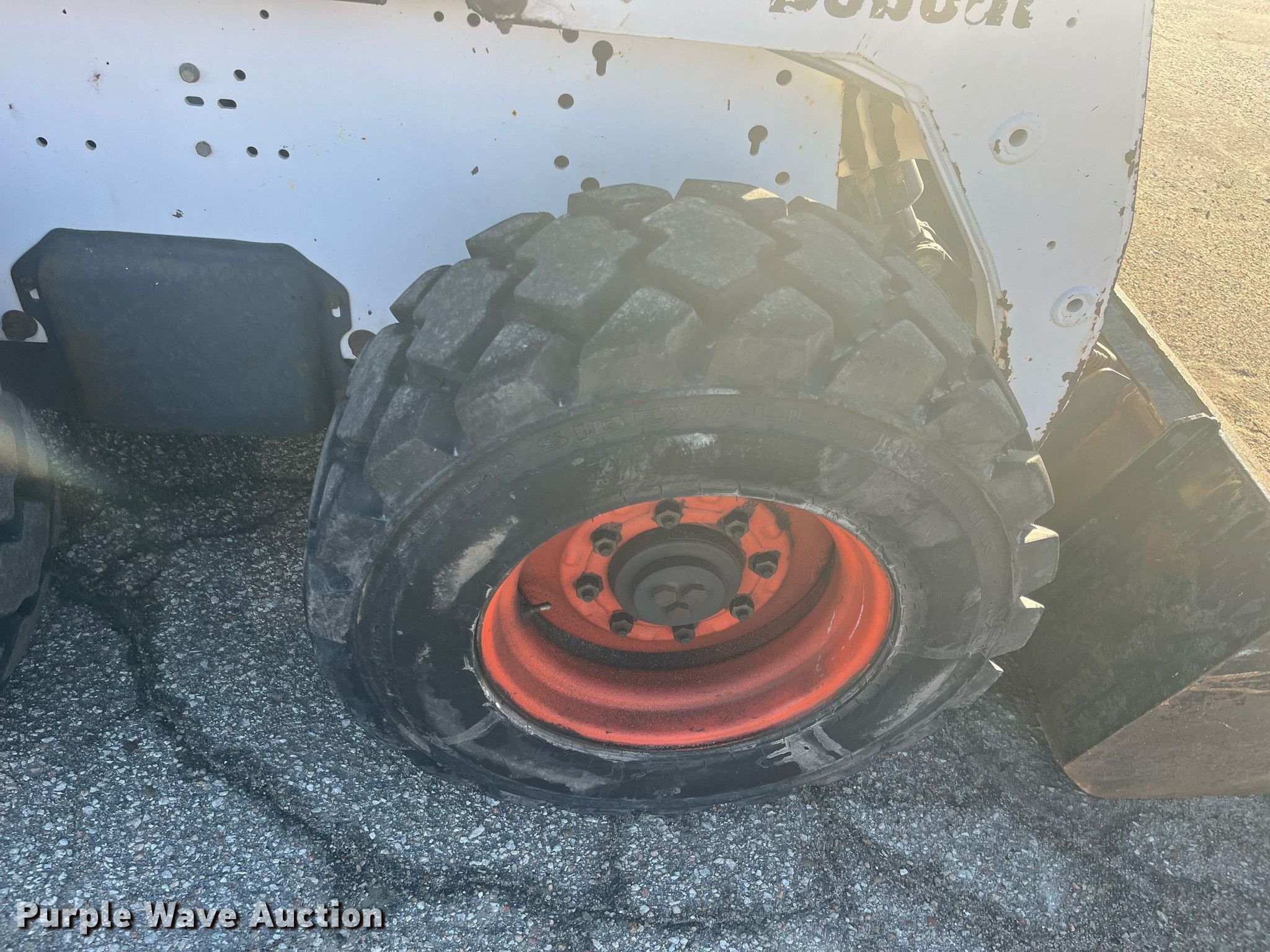 2001 Bobcat 863 skid steer loader. Hours: 480 on meter, Serial: 514448503, KDOT ID: 370-5021. Engine Deutz, Cylinders: 4, Fuel type: Diesel. Transmission Hydrostatic. Operators station OROPS, Bucket control: Foot. Features Auxiliary hydraulics, Auxiliary electrical outlet, Quick coupler: Manual, Bucket Width: 67", Cutting edge: Weld-on. Tires Size: 12x16.5. Notes Additional tire and wheel, Dead battery, Non-operational original hour meter, secondary hour meter installed, Wheel seal leak. Kansas Department of Transportation - Hutchinson. 500 N. Hendricks. Hutchinson, KS 67501