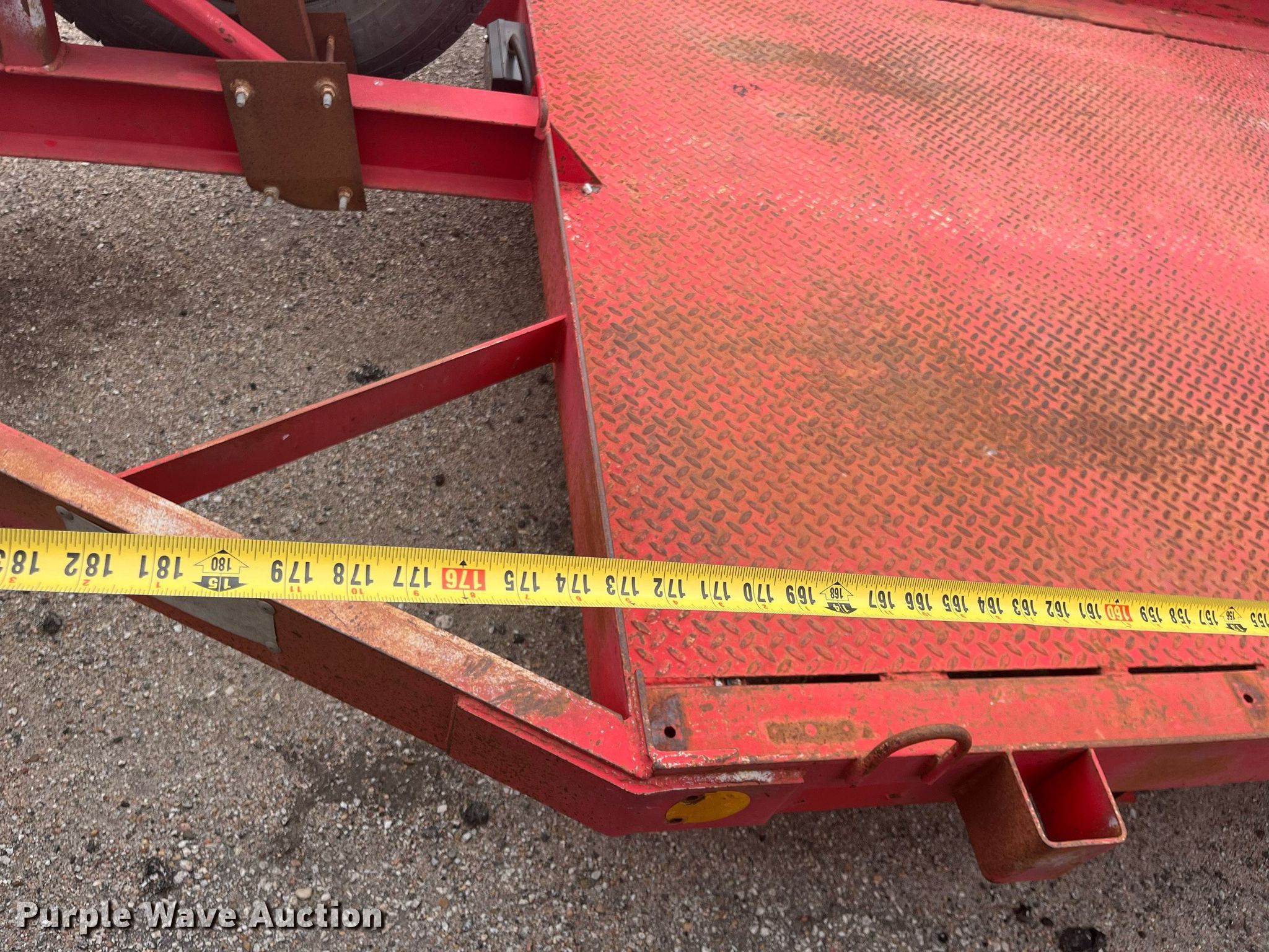 1991 JFW F2W utility trailer. VIN: 10920, KDOT ID: 782-5031. Dimensions Overall: 20' L x 8' W, Deck: 14' L x 6' W. Features Deck type: Steel. Chassis Hitch: Pintle, Landing gear: Single, Suspension: Spring, Brakes: Hydraulic, Axles: Tandem. Tires Steel wheels, Size: 225/75R15. Kansas title. Titles will be distributed after confirmation of payment and removal. Title distribution may be delayed up to 30 days from verification of funds. Kansas Department of Transportation - Hutchinson. 500 N. Hendricks. Hutchinson, KS 67501