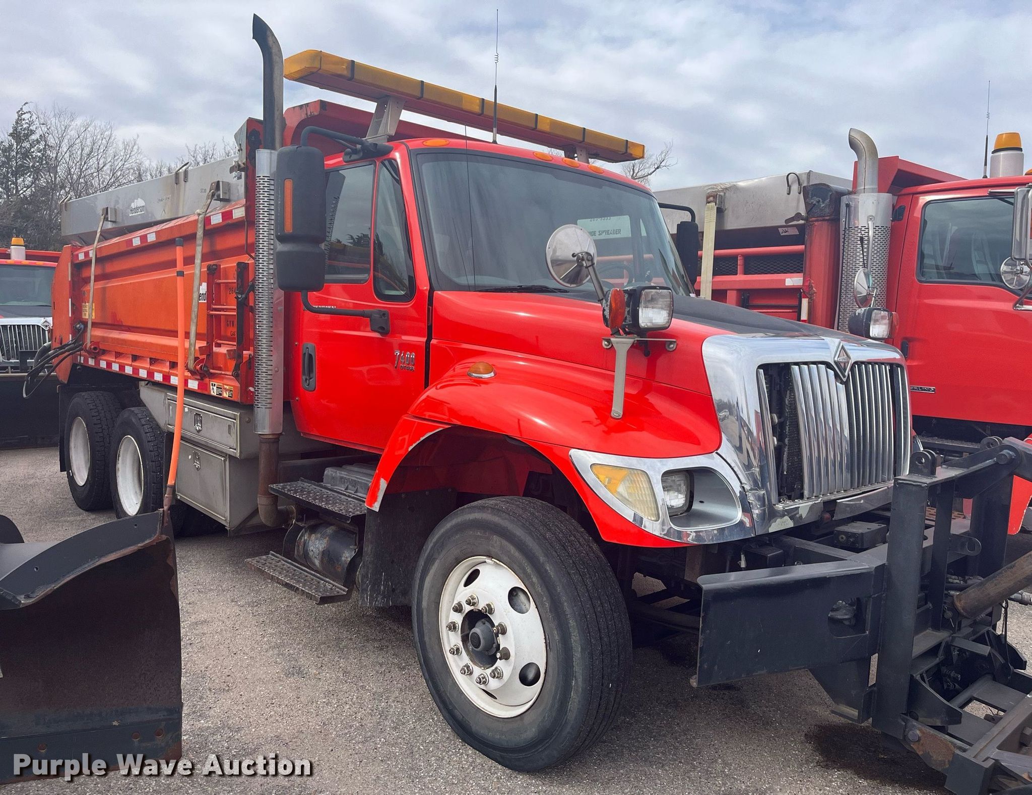 2007 International 7400 dump truck. Miles: 168,604 on odometer, Hours: 12,416 on meter, VIN: 1HTWHAAR97J443289, KDOT ID: 264-5097. Engine International DT466, Displacement: 7.6L, Cylinders: 6, Fuel type: Diesel. Transmission Allison 3500RDS6-SP, Automatic. Chassis Axles: Tandem, Differential lock: Inter-axle, Suspension: Spring over walking beam, Brakes: Air, Front mount PTO, GVWR: 53,220 lbs FAWR: 13,220 lbs, IAWR: 20,000 lbs, RAWR: 20,000 lbs. Interior AC, Heat, Cruise control. Features Dump bed Henderson 13.5XKDOTX109427, 13' 6" L x 96" W, Bed type: Steel, Roll tarp, Ram: Single , End gate: Air operated, Spreader Henderson, Capacity: 13 cu.yd., Plow Width: 132". Tires Size: 275/80R22.5. Notes Windshield chipped or cracked, Dead battery, Grill damage, Air leak, Rear hydraulic leak, hydraulic line damaged. Kansas title. Titles will be distributed after confirmation of payment and removal. Title distribution may be delayed up to 30 days from verification of funds. Kansas Department of Transportation - Hutchinson. 500 N. Hendricks. Hutchinson, KS 67501