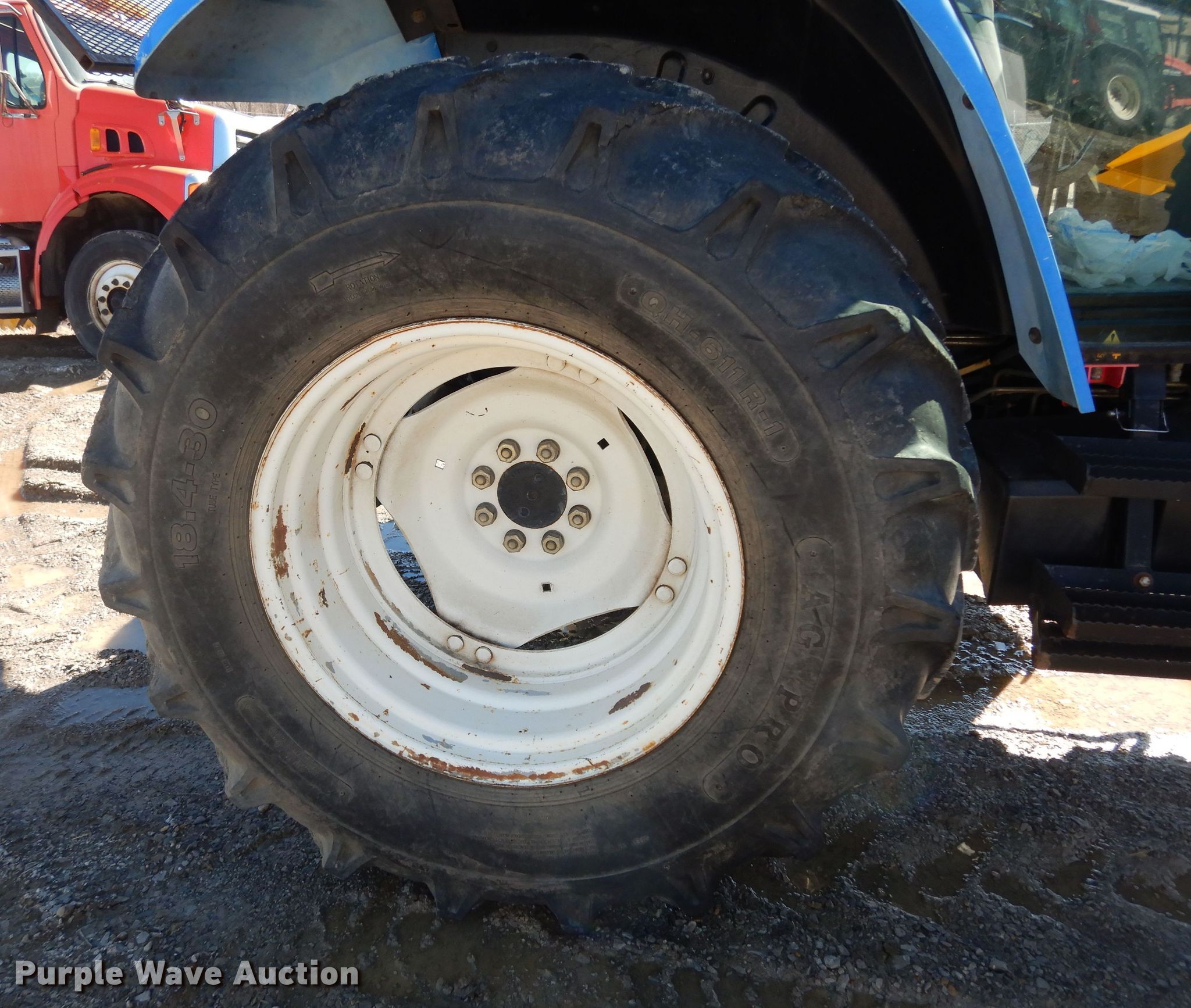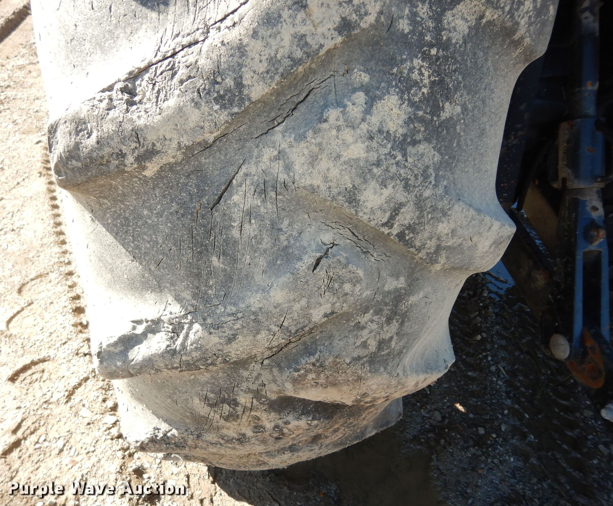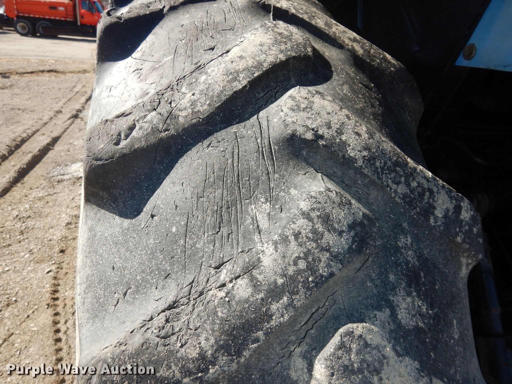 2003 New Holland TS100 tractor. Hours: 5,957 on meter, Serial: 208271B, KDOT ID: 352-1113. Engine New Holland , Displacement: 5.0L, Cylinders: 4, Fuel type: Diesel. Transmission Powershift, 16F - 16R. Operators station AC, Heat. Features PTO: 1000, Three point Top link, Hydraulic remote sets Rear: 4. Tires Front: 11L-16, Rear: 18.4-30. Notes Dead battery, Brake issues, Seat broken, Non-operational windshield wiper, Non-operational radio, AC condenser mount broken. Kansas Department of Transportation - Topeka. 121 SW 21st St. Topeka, KS 66612