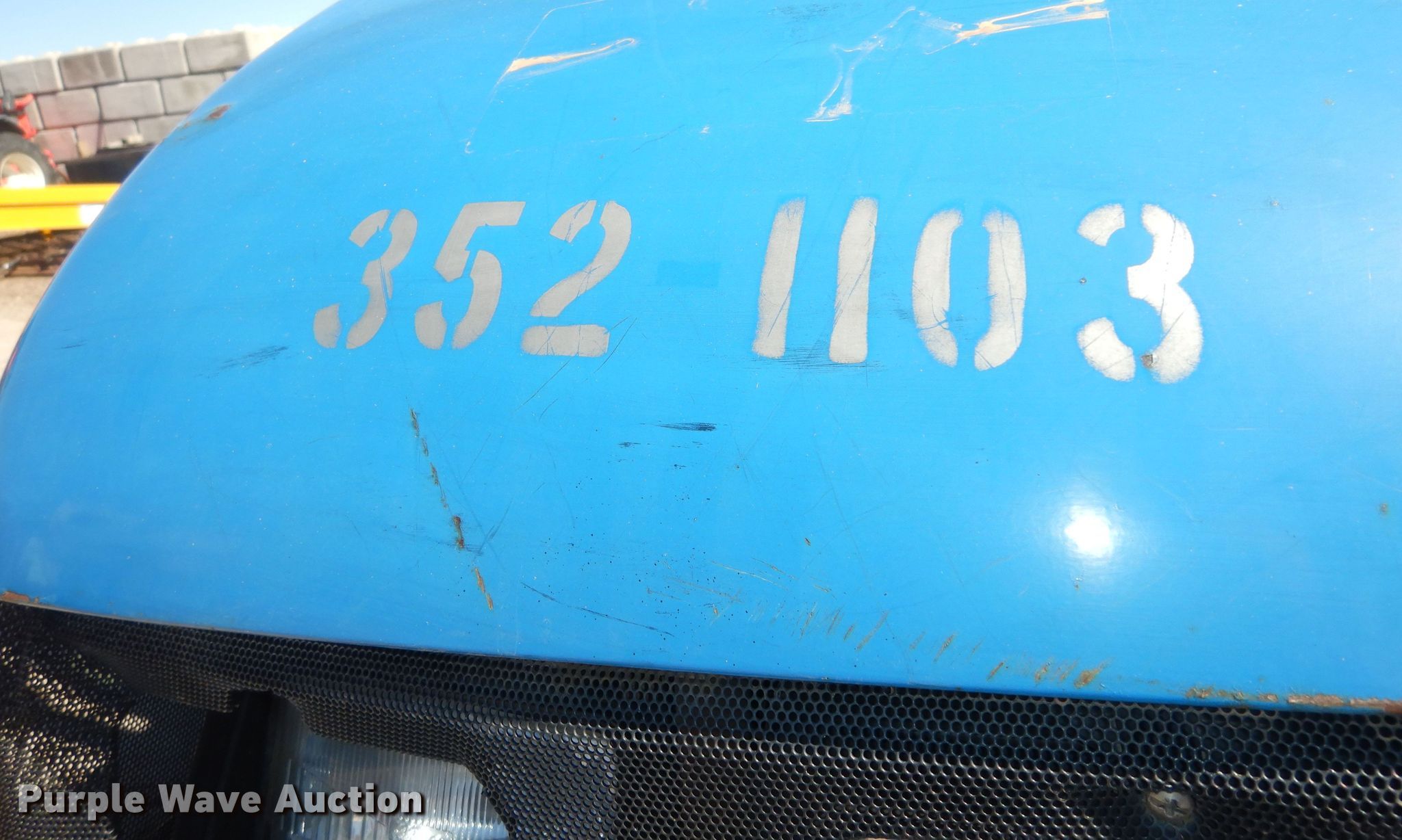 2003 New Holland TS100 tractor. Hours: 6,501 on meter, Serial: 207671B, KDOT ID: 352-1103. Engine New Holland CNH, Displacement: 5.0L, Cylinders: 4, Fuel type: Diesel. Transmission Powershift, 16F - 16R. Operators station AC, Heat. Features PTO: 1000, Hydraulic remote sets Rear: 4. Tires Front: 11L-16 Foam-filled, Rear: 380/85R30. Notes Error code: E39 Transmission clutch solenoid circuit issues, Grill damage. Kansas Department of Transportation - Topeka. 121 SW 21st St. Topeka, KS 66612