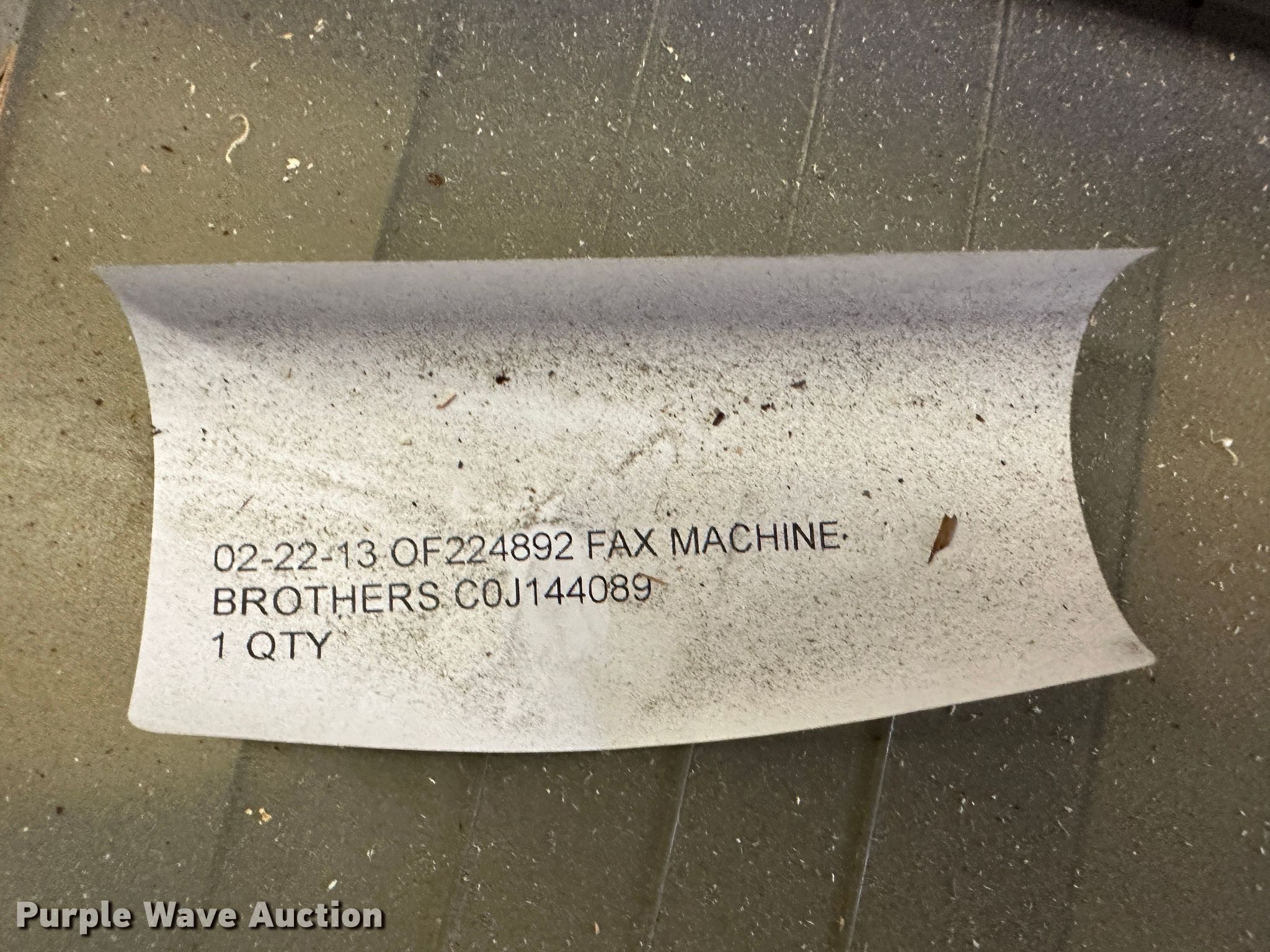 Purple Wave is selling a used Office Supplies and Equip. in Kansas. This item is a Office equipment with the following: (12) Brother fax machines, (10) Model: 5750E, (2) Model: 4750E, HP Photosmart 6520 all-in-one printer, Non-operational unit, KDOT ID: 124484, 124485, 224574, 224668, 224673, 224891, 224892, 224894, 224895, 224898, 225044, 225045, 225096