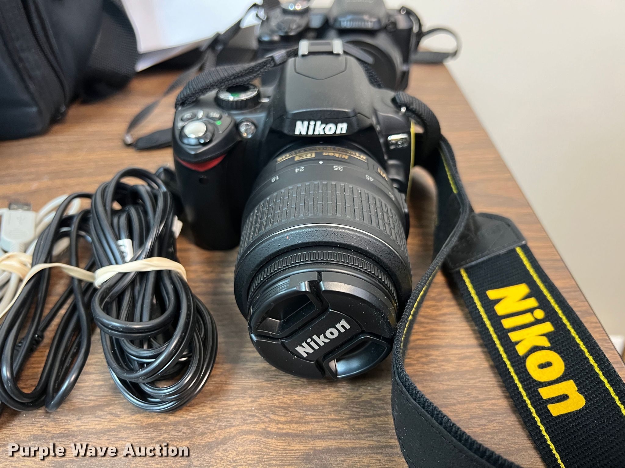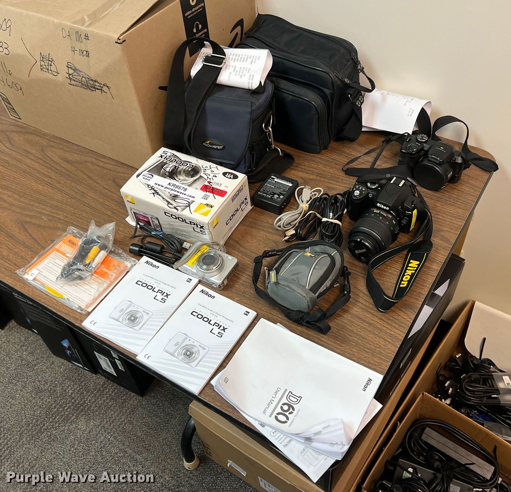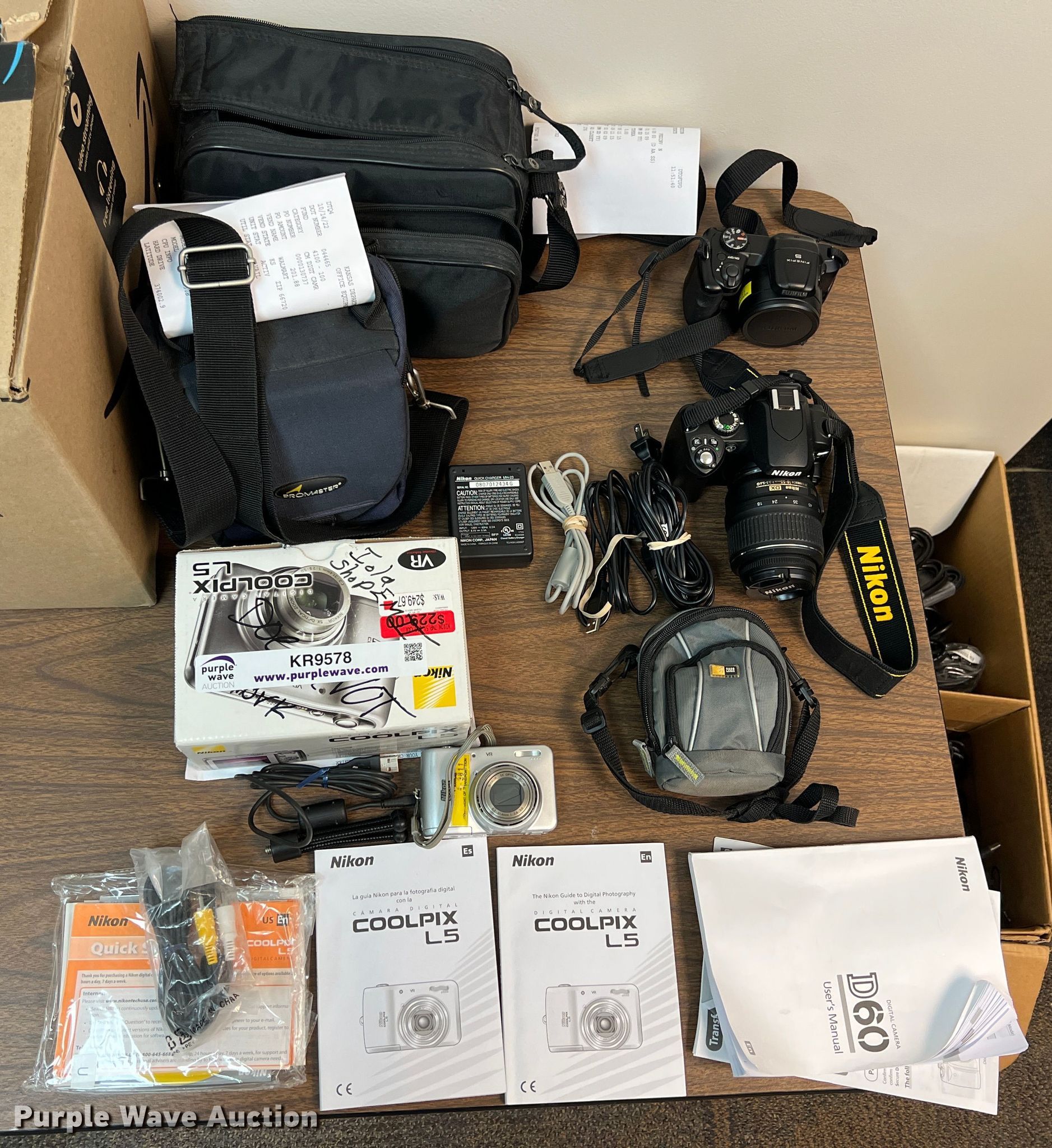 Purple Wave is selling a used Electronics in Kansas. This item is a (3) digital cameras with the following: Nikon Coolpix L5, Nikon D60, Charger, Fujifilm Finepix S8630, Cables, Users manuals, Cases, KDOT ID: 043811, 044031, 044465
