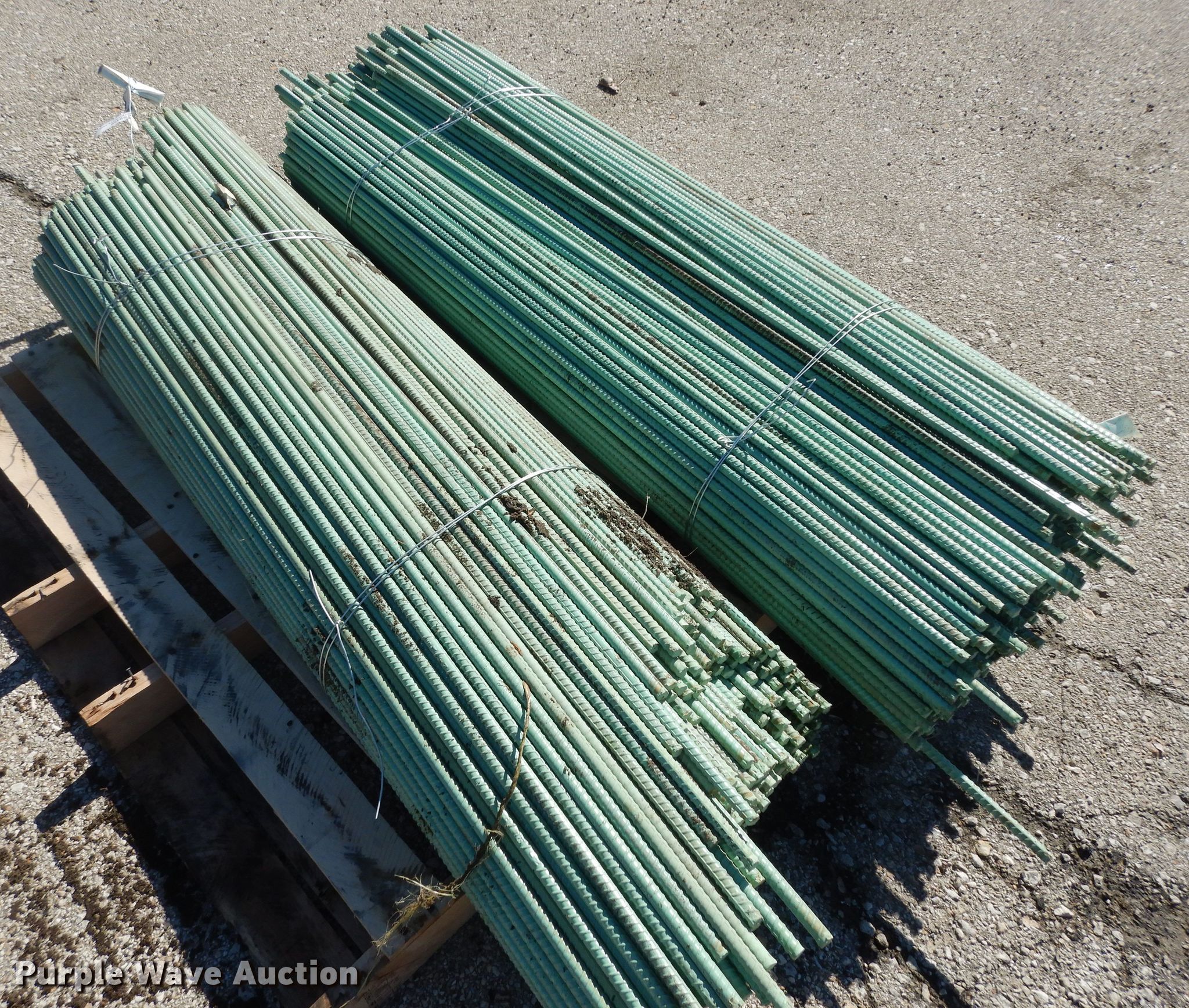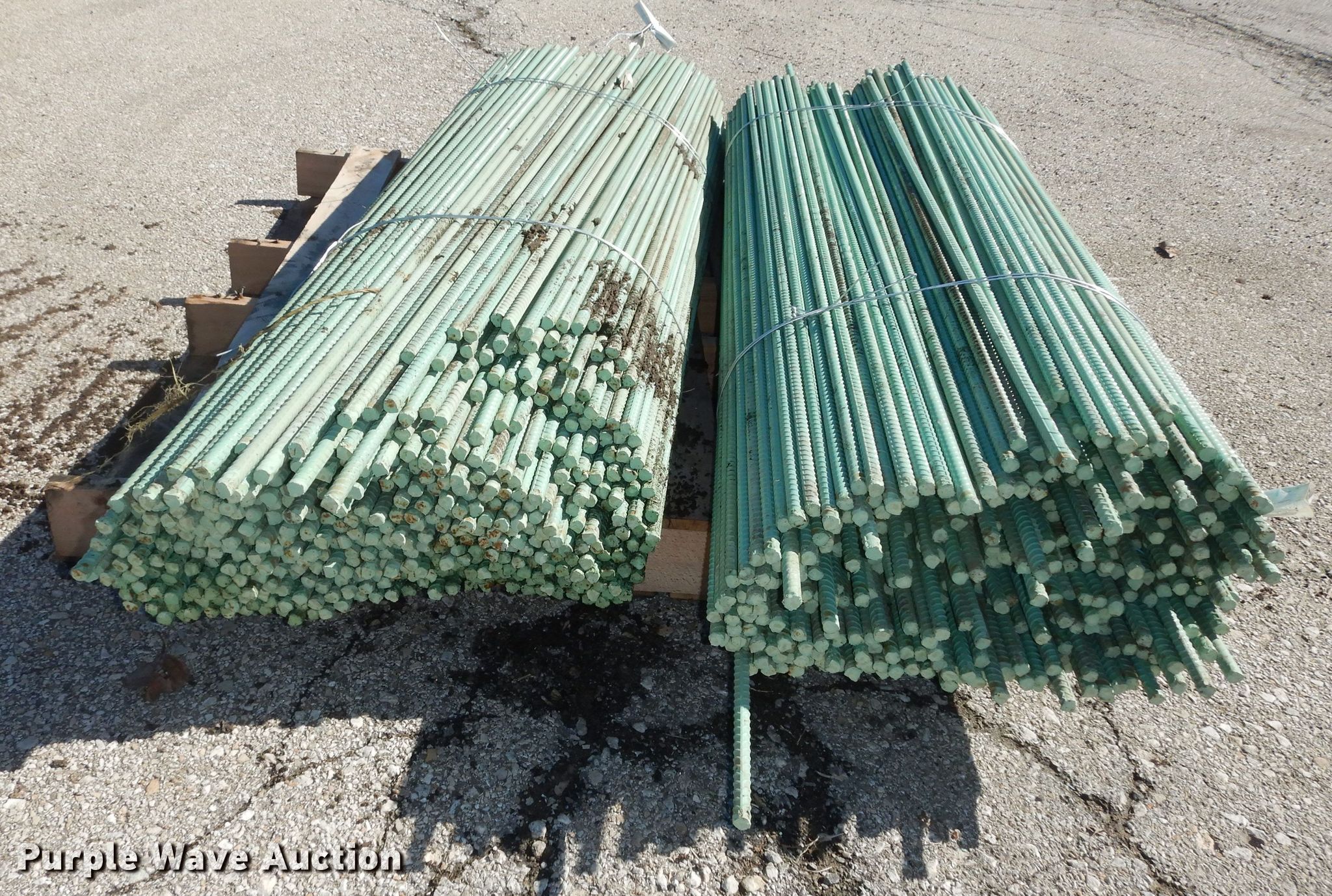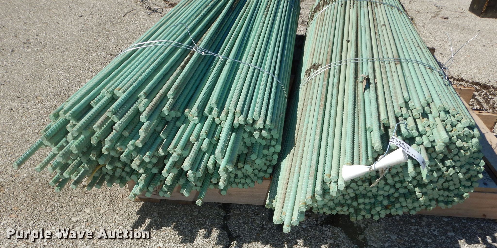 Purple Wave is selling a used Building Materials in Kansas. This item is a Approximately 940 pieces of epoxy coated re-bar with the following: 5'L x 1/2" diameter, Weight: 3,100 lbs, KDOT ID: 10421